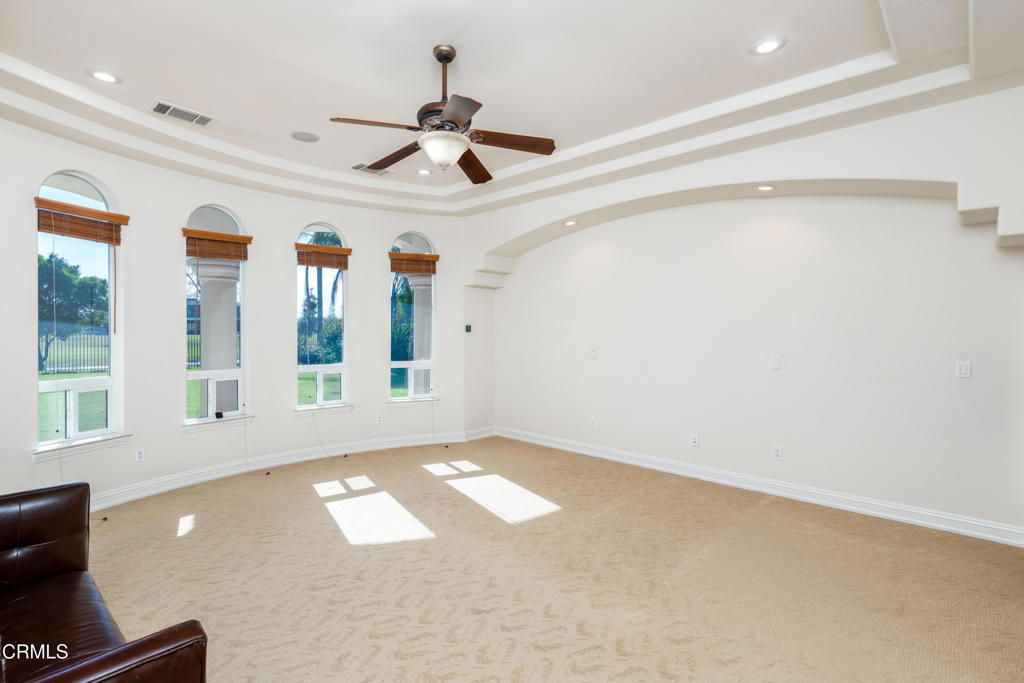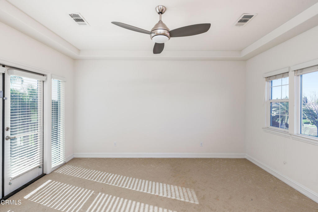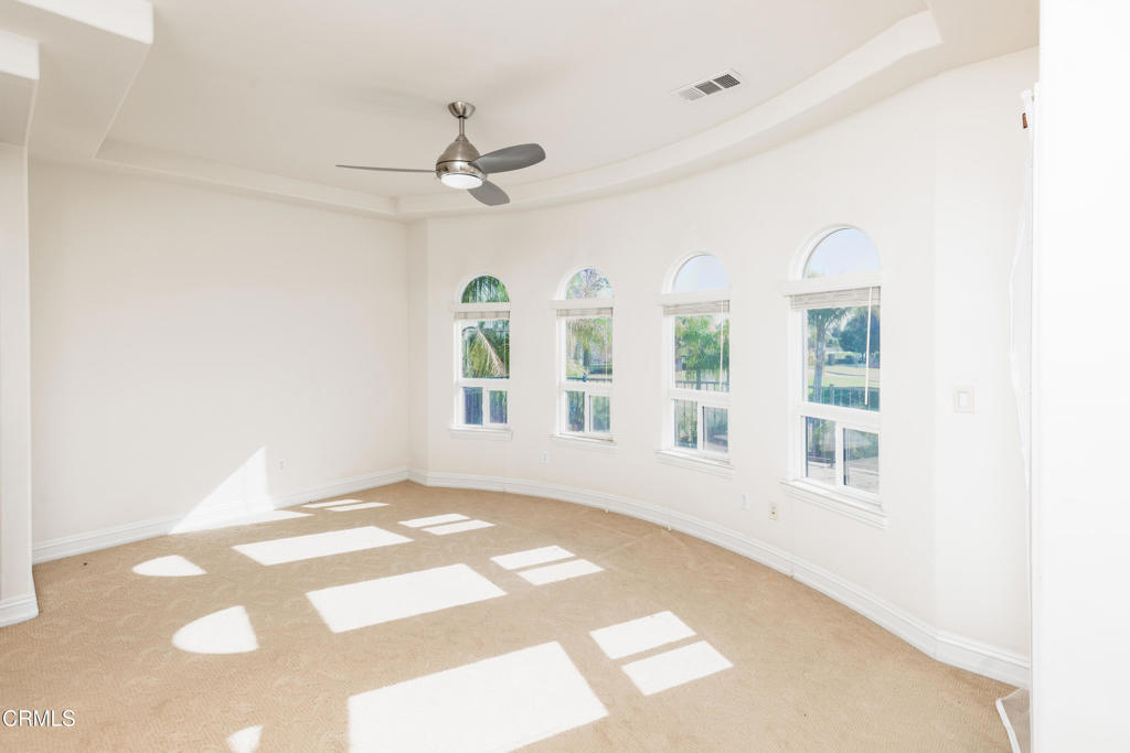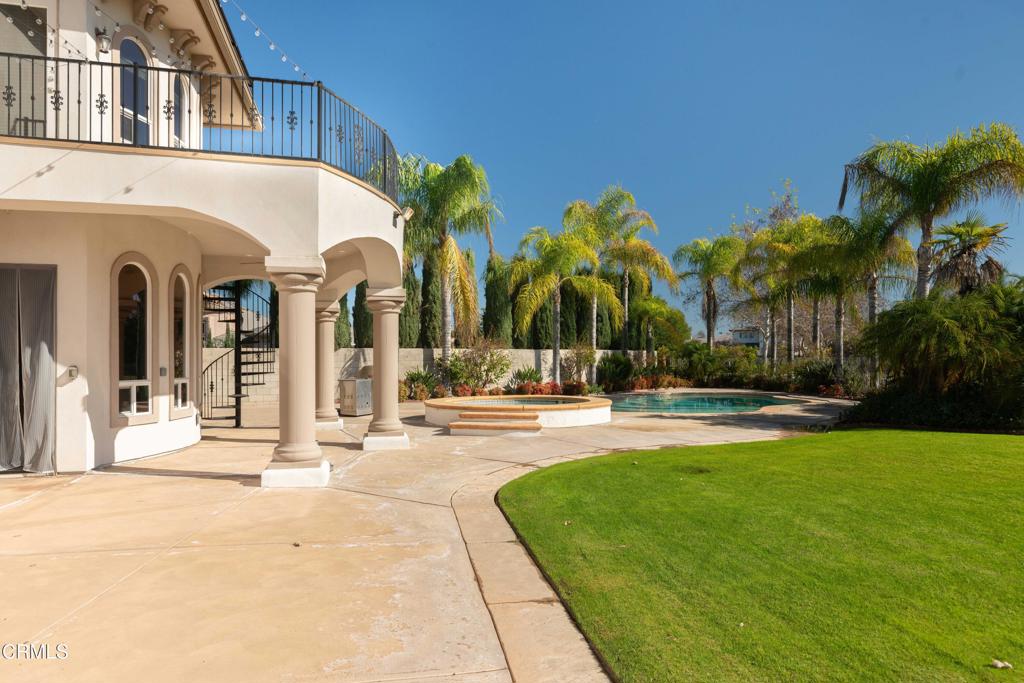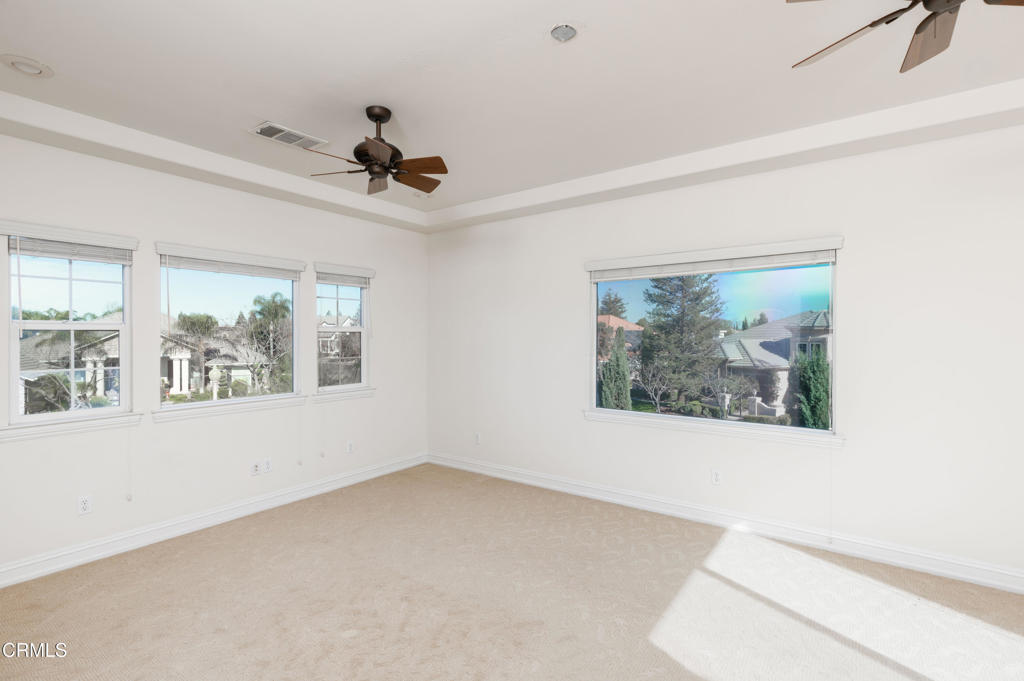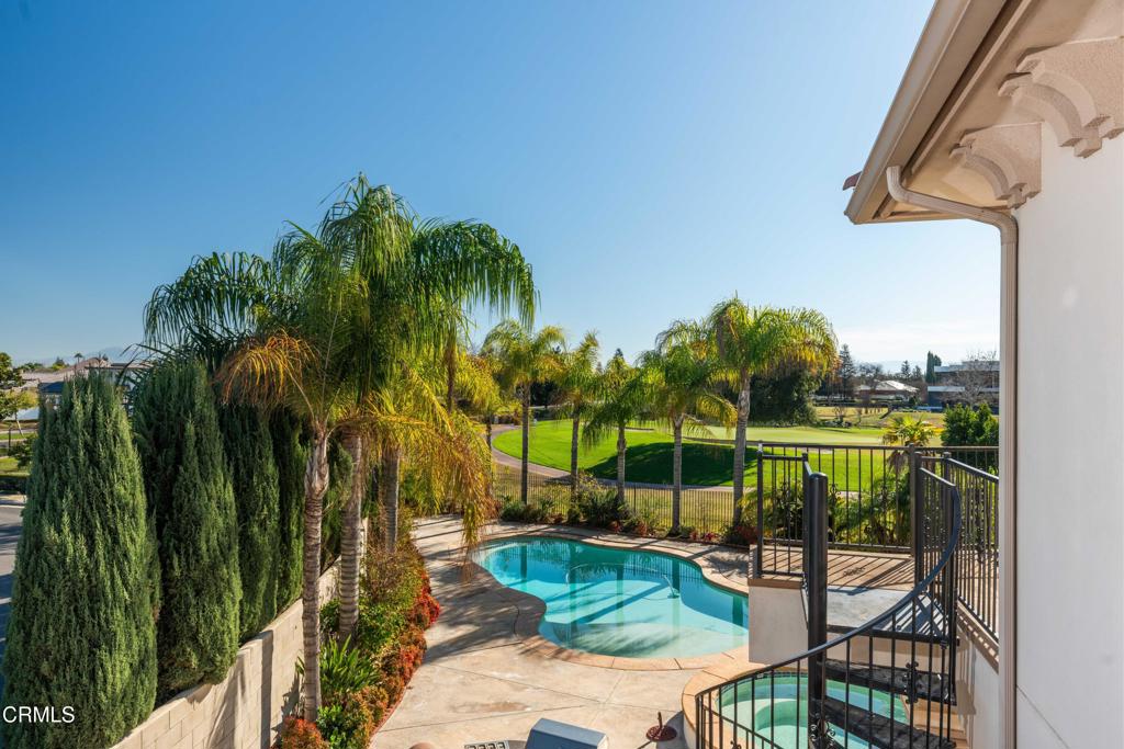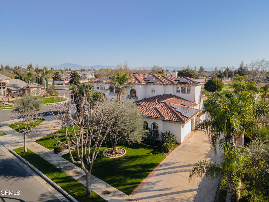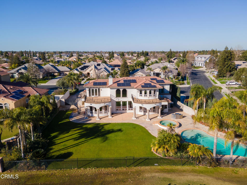 Unique golf course property w/ amazing views and owned solar in Seven Oaks/Grand Island. This 4-bedroom, 4.5 bath home has a huge backyard w/ a sparkling pool and spa, high-end landscaping, numerous palms and a BBQ. There are 3 balconies on the 2nd floor w/ views of the golf course and mountains. Additional rooms include an office w/ built-ins (+ a closet, could be used as a bedroom), living room, dining room and big game room (w/ wet bar and wine cooler). The gourmet kitchen has Dacor appliances, double ovens, a warming drawer and granite counters. There is a large front courtyard w/ a repainted floor and path accents. The master suite features a two-sided fireplace, jetted tub, large walk-in shower, huge his/her walk-in closets and a small bonus room. Additional features include gutter spouts on the entirety of the roof, two 74-gallon water heaters, 3 AC units, central vacuum system and a remote access smart garage w/ custom built-in storage cabinets. See list of upgrades.
