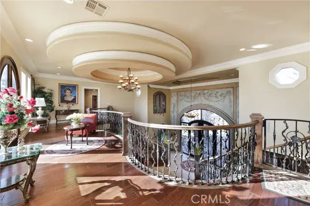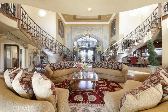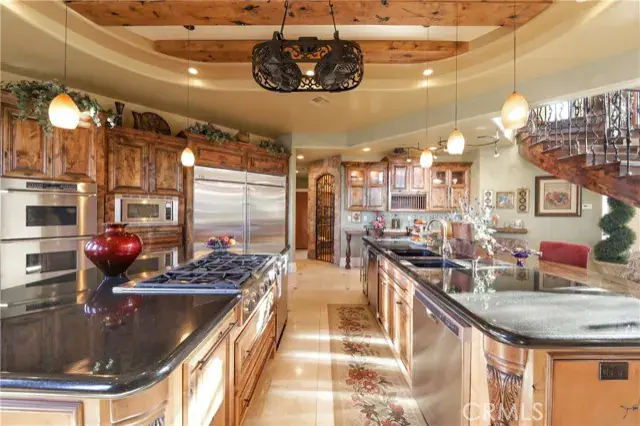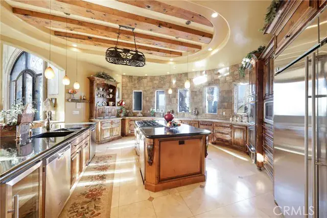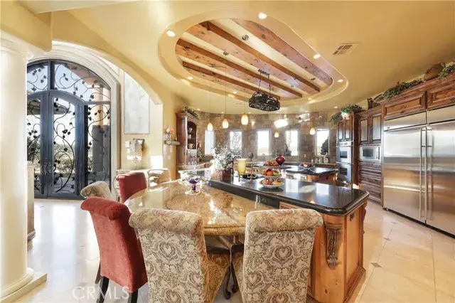 As you enter the expansive home, you’ll be greeted by a magnificent dual staircase and views of the immaculate yard. The home boasts endless touches, including a chef’s kitchen with a double oven, warming drawer, three dishwashers, a double island, and a breakfast bar. A beautiful custom home office, complete with a private entrance door, provides a unique space to work from home.