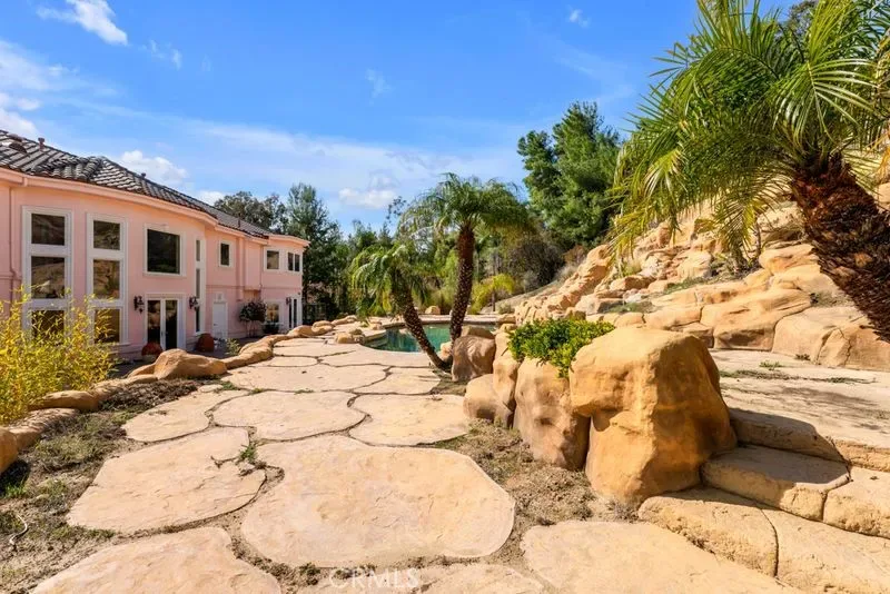 Ascend the exquisite wrought iron staircases to the upper level and discover the luxurious primary suite, complete with a sitting area, fireplace, and a spacious spa-like bathroom. Three additional generously sized ensuite bedrooms provide comfort and privacy for family and guests. The resort-style backyard is designed for both relaxation and entertaining, featuring a sparkling pool, spa, waterfalls, and an exciting water slide, creating a true private oasis. Bell Canyon residents enjoy exclusive community amenities, including 24-hour guard-gated security, scenic hiking trails, tennis courts, fitness center, equestrian facilities, and a community park, all while being conveniently close to shopping, dining, and award-winning schools. A rare opportunity to own a luxury estate in one of the most sought-after gated communities in the area.
