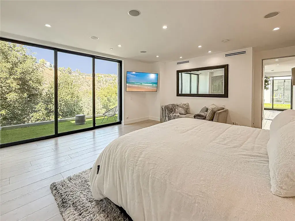 Welcome to one of the rare modern estates in the Valley, set within the prestigious, guard-gated Bell Canyon community. While neighboring areas such as Hidden Hills and Calabasas restrict contemporary architecture, this striking residence embraces modern design with soaring ceilings, open living spaces, and walls of glass that capture the surrounding canyon beauty.