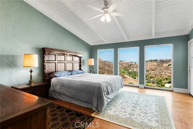 wine refrigerator. Main level guest bath with outdoor pool access Main level on suite with remodeled bathroom. Primary bedroom features walls of glass with amazing views, private deck ,walk in closet with organizers, original primary bathroom is huge ,needs updating but amazing potential .Four additional bedrooms with two baths. High ceilings, private decks, built in closets, built in bay window with seating area, amazing views from all room.