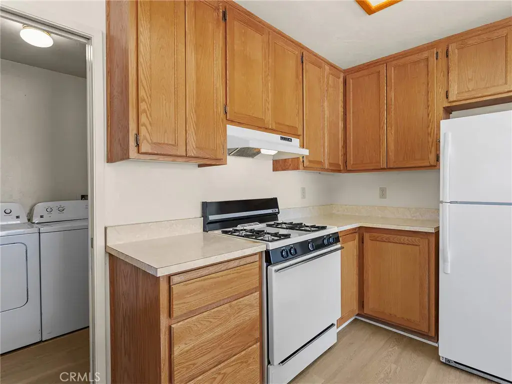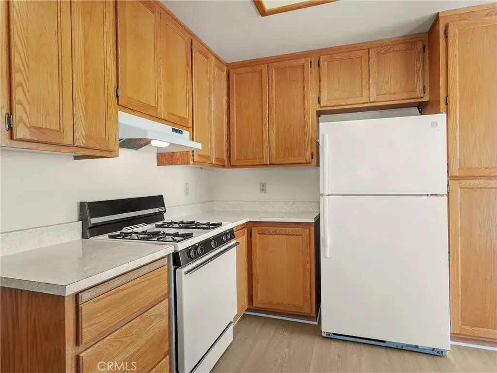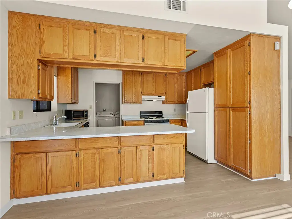 The large two-car attached garage includes an automatic opener, built-in shelving, and upgraded lighting. Refrigerator and stove are included.