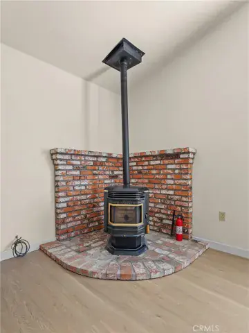 The backyard includes a covered patio and a custom brick BBQ ready for completion, perfect for outdoor entertaining. Inside, the home offers vaulted ceilings, a pellet stove for efficient heating, and a spacious laundry room with sink. The private primary suite features a walk-in closet, dual sinks, and its own bathroom.