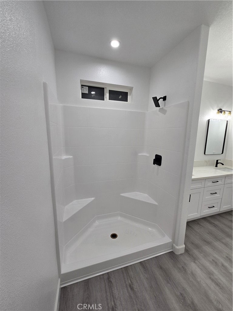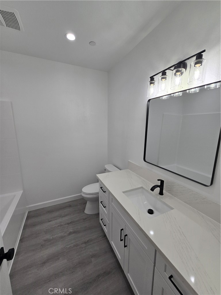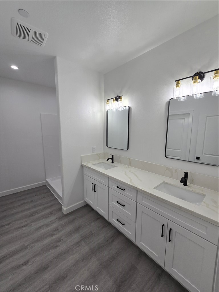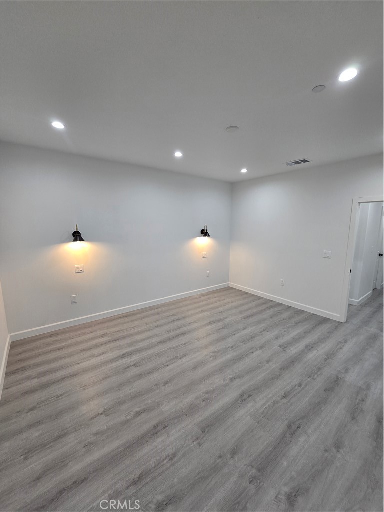 The private primary suite is a serene retreat, offering a spacious walk-in closet and a calming atmosphere perfect for unwinding. Spa-inspired bathrooms feature contemporary cabinetry, sleek quartz countertops, and high-end fixtures. Throughout the home, rich laminate flooring and curated lighting—including bedroom wall-mounted nightstand sconces—elevate the ambiance.