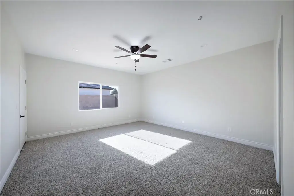 Semi Custom Home!!! This 1,908 sq ft home features 3 bedrooms, 1.75 bath, open kitchen to the family and dinning room, tile throughout all common areas, ceiling fans in all bedrooms and living room including an electrical fireplace for those cozy winter nights. The master suite includes an en-suite bathroom with a large enclosed shower and walk in closet. All upgrades come included in this home such as quartz countertops, energy efficient stainless steel appliances and did I mention PAID SOLAR!!! Located in a corner lot which includes RV parking. This house has pristine landscaping and great curve appeal.