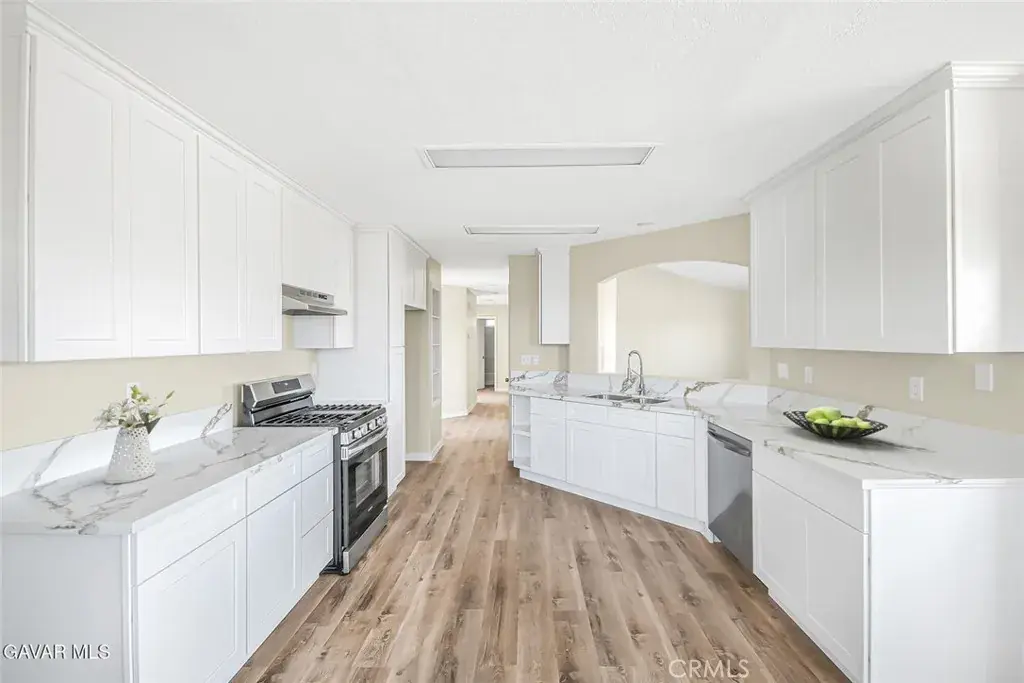 The home opens with full brand-new interior and exterior paint that gives everything a clean, crisp finish, and it sets the tone for the completely remodeled interior you’ll find throughout. The kitchen has been entirely rebuilt from the ground up with brand-new cabinets, new countertops, a new stainless steel sink and faucet, new garbage disposal, new stainless steel appliances, and a fully updated layout that makes the space feel fresh, functional, and ready to use. The entire home features brand-new plank flooring that runs through every room, tying the formal dining area, breakfast nook, and spacious living areas together with a cohesive modern look. Additional upgrades include new LED light fixtures, new plumbing fixtures, lots of windows for great natural light, a desirable laundry room inside, a fully fenced front and backyard, RV access, and even a basketball court in front—plenty of features you won’t find every day. The master suite offers a small walk-in closet, dual sinks, a new vanity with a new top, a fiberglass walk-in shower, new faucets, and a new toilet, and the guest bath also features a new vanity with a new top, a new faucet, and a clean, updated design. The landscaping includes a fully fenced setup with a safe backyard that has tons of room to run around, making it ideal for families, pets, or anyone who simply wants space. The location is excellent and puts you close to everything you need. Come see this property while it’s still available.