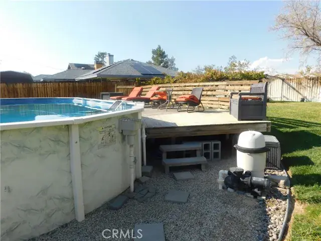 DOUBLE CORNER LOTS WITH PLENTY OF ROOM FOR STORAGE. 3 bedrooms + 2 full bathrooms on natural gas. Home offers office (bonus room) and indoor laundry. Large great room with wood burning fireplace and custom flooring throughout. Lovely paint color throughout home. Beautiful kitchen with quartz countertops, stainless steel appliances, and oversized breakfast bar. Large covered/enclosed patio with gas burning fireplace and radiant heating is wonderful for year-round outdoor living. Front and backyard nicely landscaped with large above ground pool with deck in the back. Backyard features are an enclosed garden with sprinkler system. Oversized 2 car garage has an industrial sink and workbench.