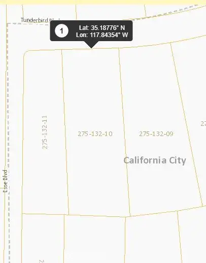 - Thunderbird RD Lot 130 California City CA is a Land for sale in California City, CA, 93505. It is listed for $8,550 and features 2 acres. To schedule a showing of MLS#oc25207202 at Thunderbird RD Lot 130 in California City, CA, contact your Outland and Associates / JoAnn Outland agent at 8054417754.