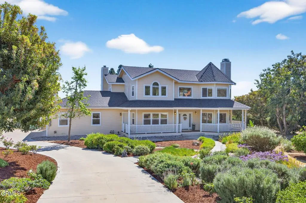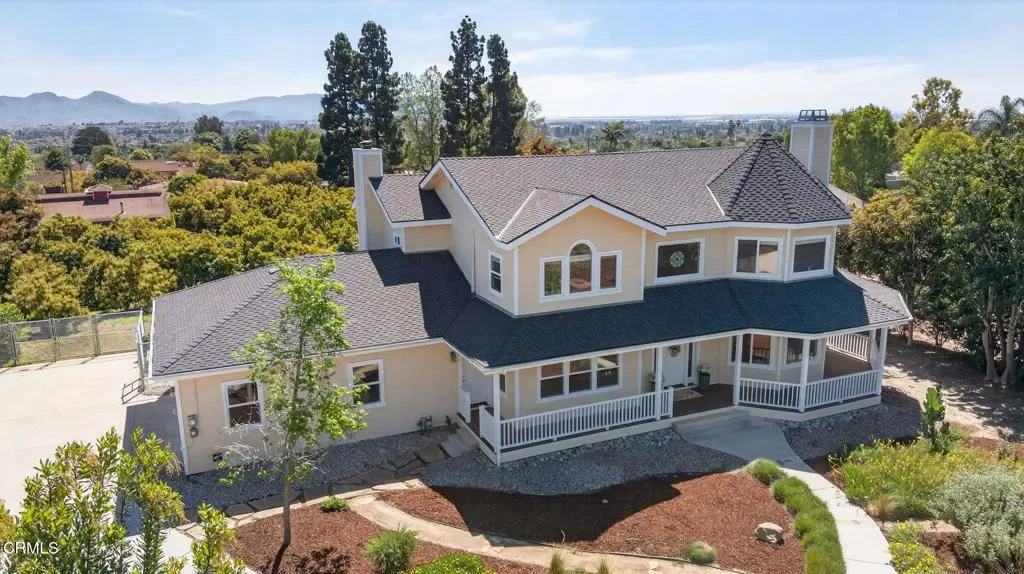 Truly a rare offering, this special Camarillo property combines a charming French farmhouse with views, expansive grounds and the unique advantage of two legal parcels, creating exceptional flexibility and future opportunity. Set among avocado trees in Camarillo Heights, the area feels like a peaceful retreat, with mature trees, gardens, and wide-open space inviting you to slow down and enjoy the surroundings. The inviting French country farmhouse offers almost 3,200 square feet with welcoming living spaces designed for everyday comfort. Sunlight fills the home, highlighting beautiful oak floors and creating a warm, relaxed atmosphere throughout. The living room fireplace and Vermont Castings wood stove in the family room provide cozy gathering spaces, while the kitchen with views & granite counters opens naturally to the heart of the home. The spacious primary suite enjoys peaceful views of the mountains and surrounding property and offers a comfortable retreat with dual sinks and a soaking tub. With four bedrooms upstairs and an additional office on the main level, the floor plan provides flexibility for working from home, guests, or growing households. Outdoor living is just as inviting. A wraparound porch overlooks the surrounding landscape and offers the perfect place for morning coffee or evening sunsets. The continuous lap pool provides a refreshing place to unwind, while citrus trees and open grounds create a beautiful natural setting. What truly sets this property apart is its rare flexibility. The land consists of two separate legal parcels, each approximately three-quarters of an acre, creating the opportunity to build a second home on the rear lot if desired. The back parcel features its own gated entrance from Camarillo Drive along with a private driveway and parking area, providing privacy and independence from the main residence. A spacious Red barn on the rear portion of the property adds even more possibilities, offering flexible space for hobbies, storage, workshop use, or creative projects. Whether envisioned as a multi generational property, a place to build a second residence, or simply a private retreat with room to grow, this is a unique opportunity to enjoy space, charm, and long term potential in a beautiful Camarillo setting. The Property includes two legal parcels identified as APN 150-0-011-775 and APN 150-0-011-785
