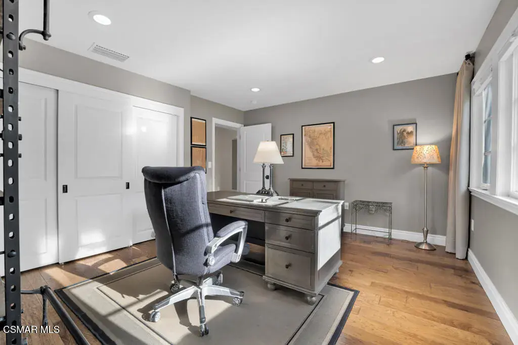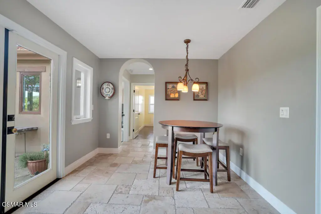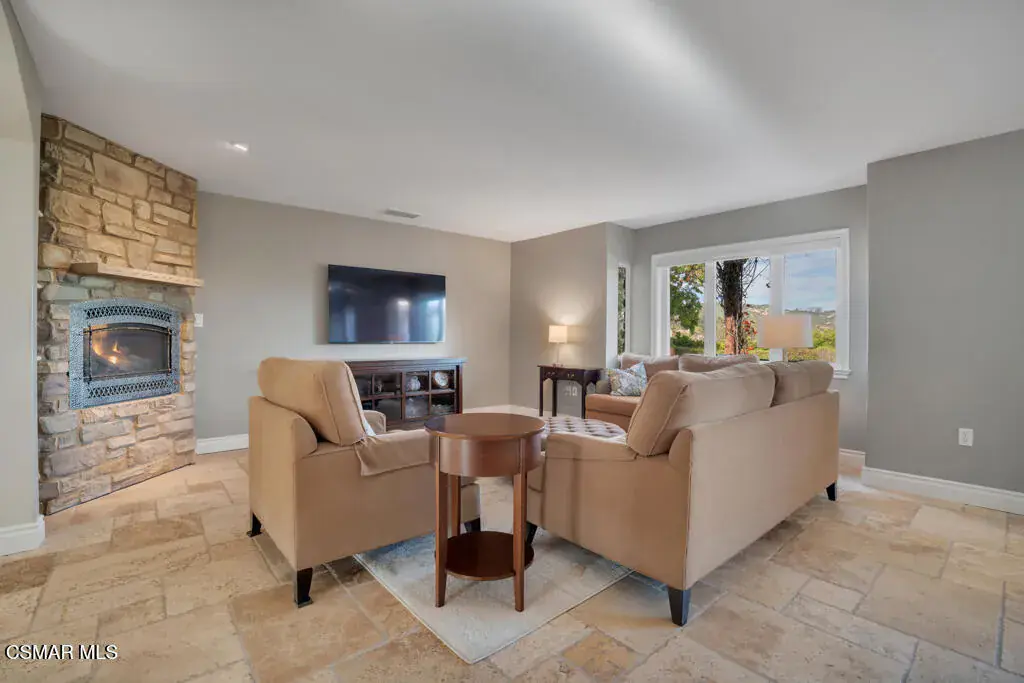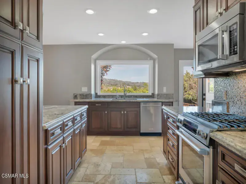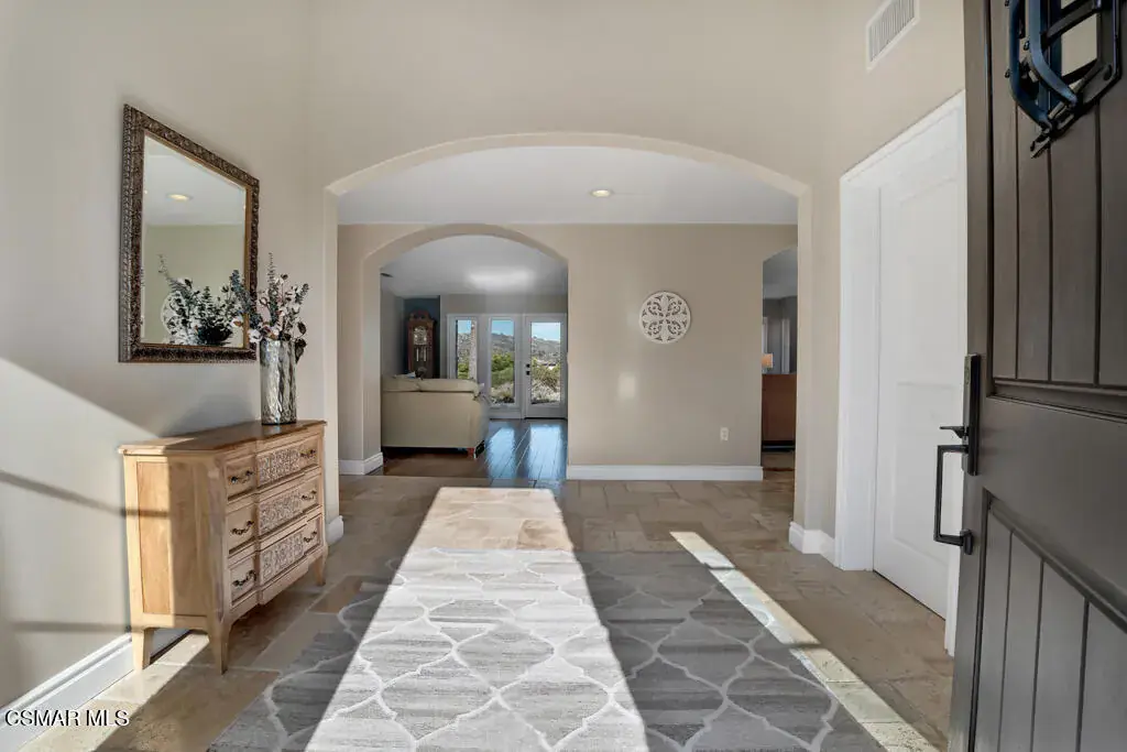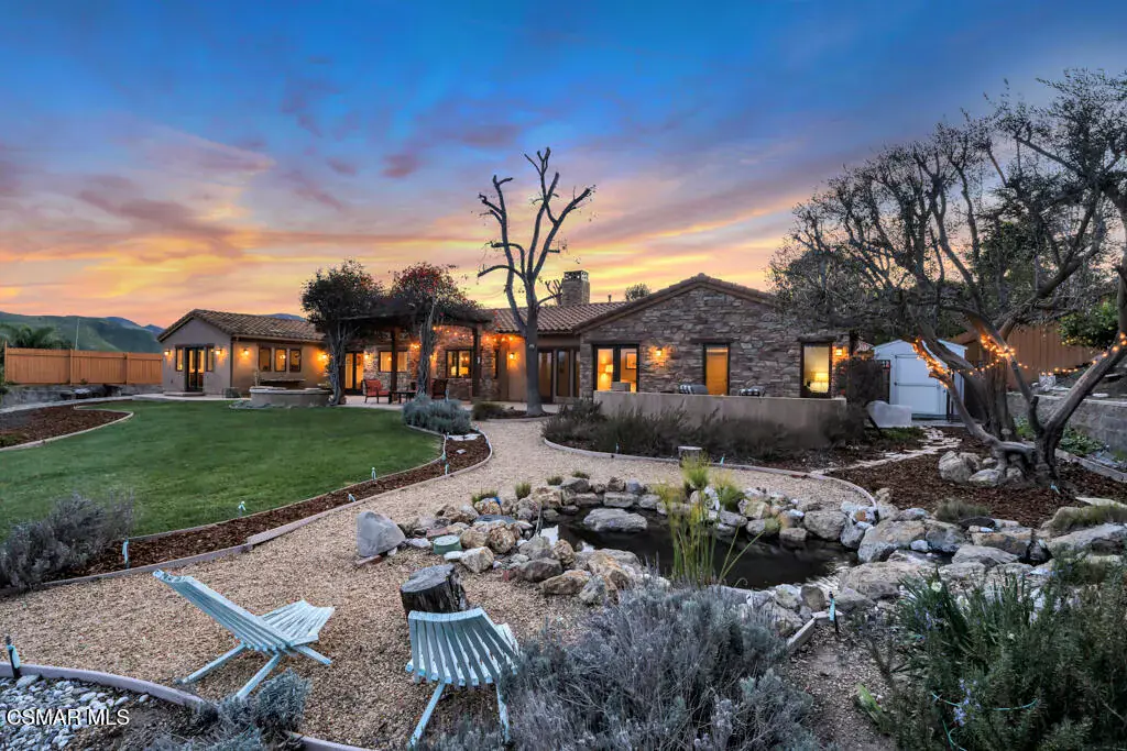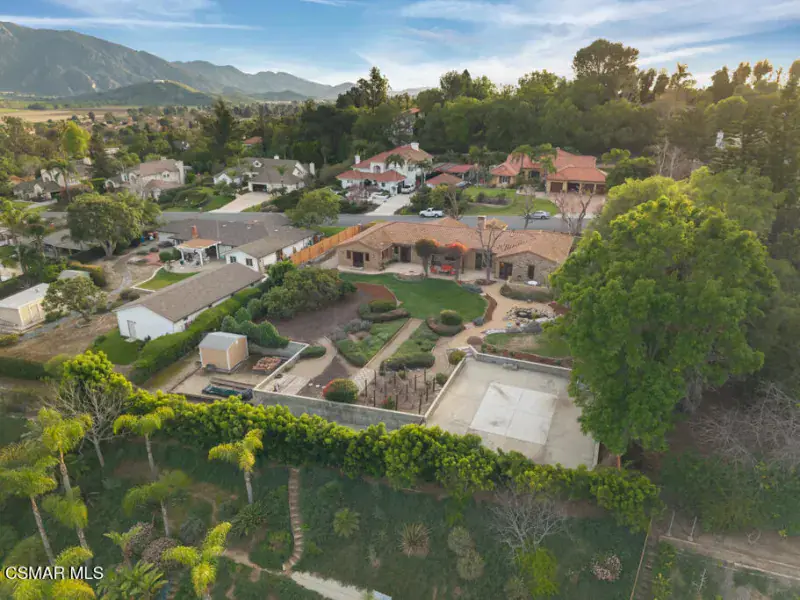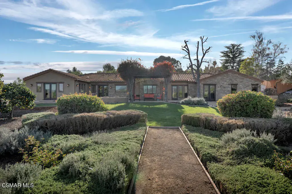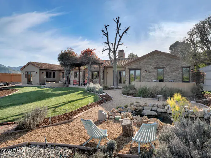 Nestled on a private cul-de-sac on an expansive 26,000+ SF usable lot, this single-story Tuscan inspired residence evokes the relaxed elegance of Santa Barbara living – refined, warm and effortlessly livable. Extensively rebuilt in 2011 by the owner-builder, this home blends timeless architecture with quality craftsmanship rarely found. Every detail was thoughtfully designed for comfort, entertaining, and everyday ease. Designed for how we live, with approximately 3,300 square feet, 3 bedrooms and 3.5 baths, with a spacious studio-bonus room that can be a flexible space for almost any use. The floor plan offers seamless single-level living with generous proportions and natural light throughout. Casement windows and glass doors from nearly every rear facing room invite the outdoors in, creating a true indoor-outdoor lifestyle. The heart of the home is the kitchen and family room – beautiful, functional and welcoming. Finished with slab granite countertops and mosaic glass tile backsplash, the kitchen features a breakfast area, spacious pantry and the full complement of stainless appliances. The family room, open to the kitchen and overlooking the yard features built-in display shelves and a cornered stone fireplace. Hickory wood floors and Versailles-pattern travertine add warmth and texture throughout, complementing the homes Tuscan and Italian character. The primary retreat is spacious and serene, thoughtfully appointed and featuring a built-in vanity, custom closet with shelving, shoe storage and drawers, a spa-like ensuite bath and direct connection to outdoor spaces. Two ensuite secondary bedrooms are on either end of the hallway. The backyard is spectacular with a lot that is nearly entirely usable–private, open and framed by the surrounding Camarillo foothills that create a true sense of retreat. Designed for entertaining and relaxation, there is a trellised patio, BBQ center, firepit gathering area, finished paths that meander throughout the yard and lead to the turtle pond, the sport court, multiple fruit trees, grape vines and rose gardens, and is uniquely zoned for small livestock including goats and chickens.Camarillo is known for its perfect Mediterranean climate and this property is situated with views to the foothills and the Topa Topa mountains beyond. With easy access to the 101 freeway, this home is perfect for commuters. Multiple parks, hiking trails, golf and equestrian areas are just minutes away, along with the charming Old Town and adjacent outlet mall with restaurants and shopping. Spend Saturday morning at the Farmers Market in Old Town, drive 15 minutes to Hollywood Beach, or enjoy a short day-trip to the wineries in Santa Ynez Valley. For buyers seeking privacy, spacious and private usable land and quality craftsmanship all on one level, this home offers a rare opportunity to enjoy refined California living.