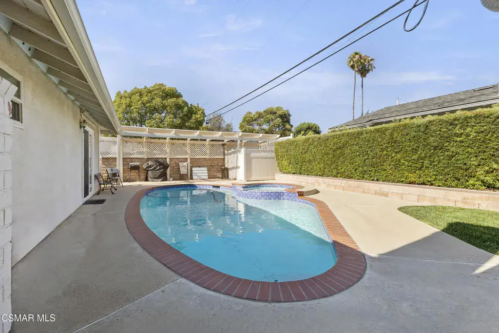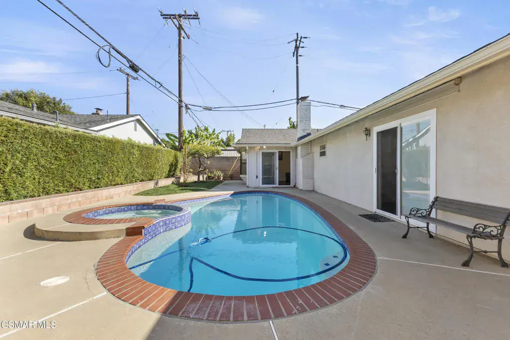 Charming Single-Story Pool Home in a Desirable NeighborhoodWelcome to this beautifully maintained single-story residence, offering the perfect blend of comfort and style. As you step inside, you are greeted by an expansive, open-concept living area featuring rich wood-style flooring, vaulted ceilings, and abundant natural light from skylights and a large bay window.The spacious floor plan flows seamlessly, creating an ideal environment for both relaxing and entertaining. The primary bedroom serves as a private retreat with direct sliding door access to the stunning backyard oasis.Step outside to discover your personal paradise, complete with a sparkling pool, an attached spa, and a covered pergola perfect for al fresco dining. The private, hedge-lined yard offers ample space for recreation and gardening.This move-in ready home is a true gem, offering the best of California living in a wonderful community. Don’t miss the opportunity to make it yours!New Roof installed in December 2024 Termite Completed December 2024