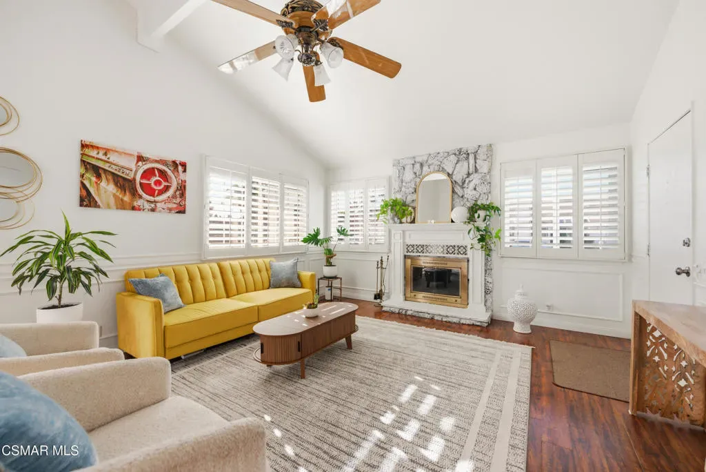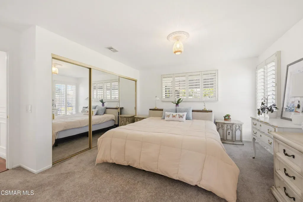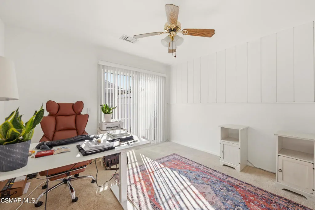 Welcome to this beautifully maintained single-story home in the highly sought-after Arneill Ranch community of Camarillo. Offering great curb appeal with freshly painted exterior and all-new landscaping, this light and bright home features a versatile floor plan designed for comfortable everyday living and easy entertaining.Step inside to soaring ceilings in the living room, complemented by an adjacent dining area, creating an open and inviting atmosphere. The kitchen offers abundant cabinetry, a charming breakfast nook, and flows seamlessly into the family room highlighted by stunning wood beam ceilings–adding warmth and character to the space.The spacious primary suite features direct access to the backyard and an ensuite bathroom with dual vanities, a dedicated makeup vanity, and ample storage. Two additional guest bedrooms are well-sized and share a full hall bathroom.A unique bonus loft space above the garage provides flexible use–ideal for a home office, gym, or creative studio.Enjoy outdoor living in the private backyard with a covered patio, mature fruit trees, and a grassy area perfect for relaxing or entertaining. The side yard offers potential RV parking, while additional highlights include a 2-car garage, carport, and extended driveway parking. Leased solar panels add energy efficiency and cost savings.Located in a desirable Camarillo neighborhood close to parks, shopping, dining, and top-rated schools, this home offers an exceptional opportunity you won’t want to miss.