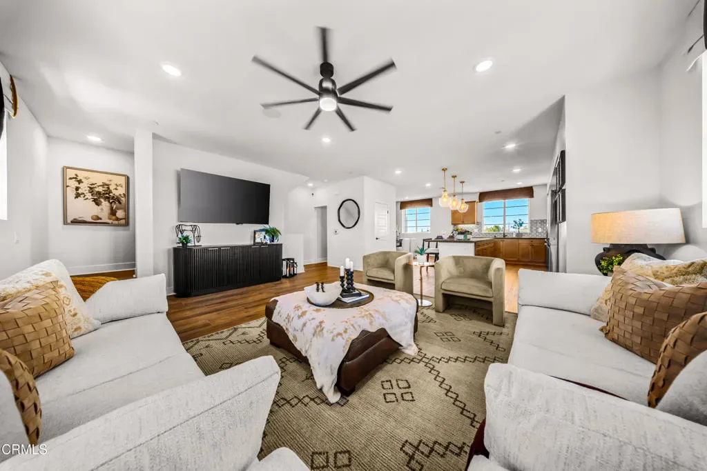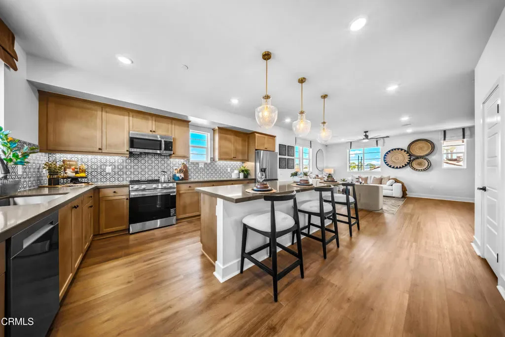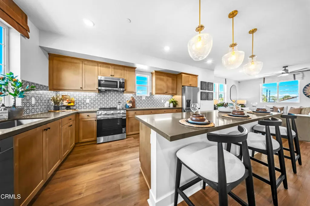 Palmera! Quick Move In Home with Designer Selected Upgrades!Highly coveted corner end-unit offering exceptional privacy and an abundance of natural light throughout! This thoughtfully designed home features 3 bedrooms, 2.5 baths, and a versatile first-floor flex space–perfect for a home office, media room, gym, or playroom to fit your lifestyle.The main level showcases an open-concept layout where the well-appointed kitchen seamlessly flows into the bright living and dining areas, creating an inviting space ideal for both everyday living and entertaining.Upstairs, the spacious primary suite serves as a private retreat, complete with ample closet space and an en-suite bath. Two additional bedrooms and a full bathroom provide comfortable accommodations for family or guests.With its desirable end-unit location, functional floor plan, and flexible living spaces, this home offers the perfect blend of comfort, privacy, and modern convenience.Beyond your home, enjoy sparkling pools, soothing spas, a fitness center, BBQ and picnic tables overlooking the pool, a co-share workspace, a dog park, and a community garden, with retail and dining coming soon. Just minutes from the 101 Freeway, train station, beaches, Old Town Camarillo, and Camarillo Premium Outlets — this home and community combines location, lifestyle, and convenience.