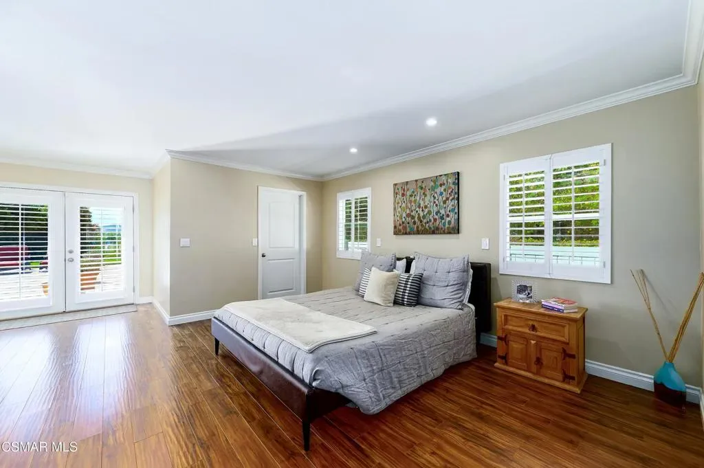 Rancho Santa Rosa Estate home with Sweeping Views & Timeless Charm!Behind a private gated entrance in the tranquil Santa Rosa Valley, this beautifully updated estate blends classic Farmhouse elegance with the ease of ranch living. Set on just over an acre, the property offers breathtaking westward mountain views from your own backyard oasis, complete with a sparkling pool and large patio with a sitting area! Inside, the thoughtfully remodeled home features a spacious main-floor primary suite with a luxurious bathroom. Three additional bedrooms and two full bathrooms are also located downstairs, designed for comfortable family living and effortless entertaining. (Note: one bedroom does not include a closet.)At the heart of the home is an inviting, updated kitchen with a large pantry, an adjacent laundry room, and direct access to the attached two-car garage. French doors in the family room open wide to showcase the stunning outdoor scenery and create a seamless indoor-outdoor flow. Upstairs, discover two additional bedrooms, a remodeled bathroom, and a versatile loft area that is perfect for a playroom, media space, or secondary living area. With abundant southern exposure, the grounds are ideal for your dream orchard or vineyard, featuring many fruit & Avocado trees. Also featuring a detached two-car garage with workshop, RV parking, and solar, adds to the property’s exceptional value and versatility. Whether you’re seeking a multigenerational haven, a hobby farm, or a peaceful retreat, this Rancho Santa Rosa gem is ready to welcome you home.