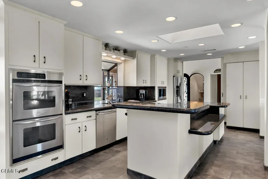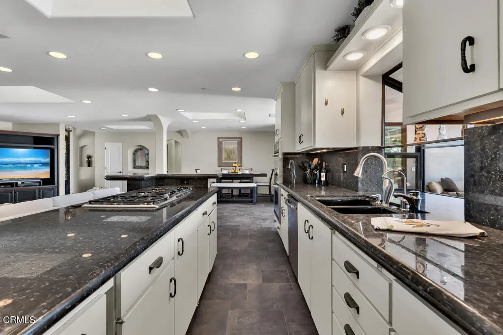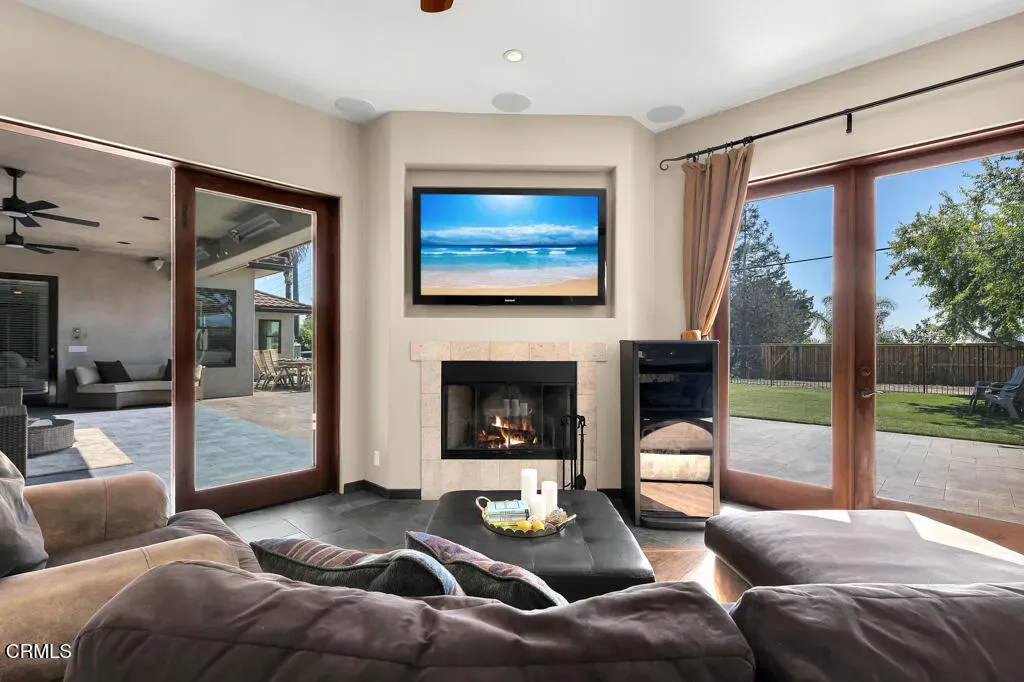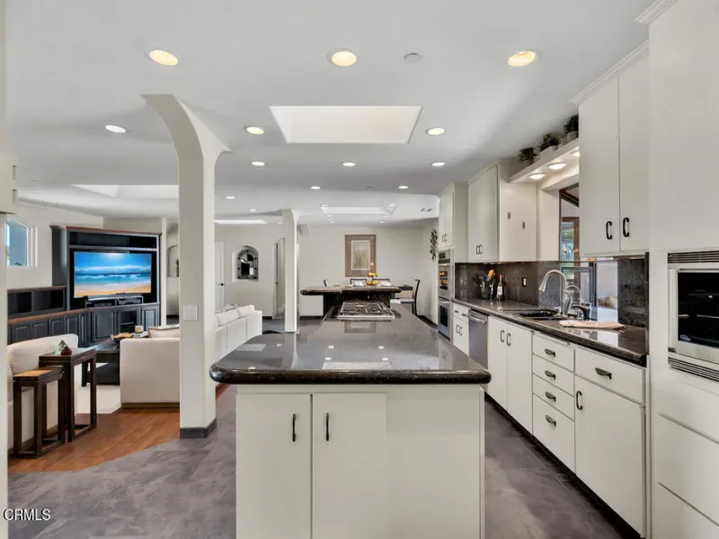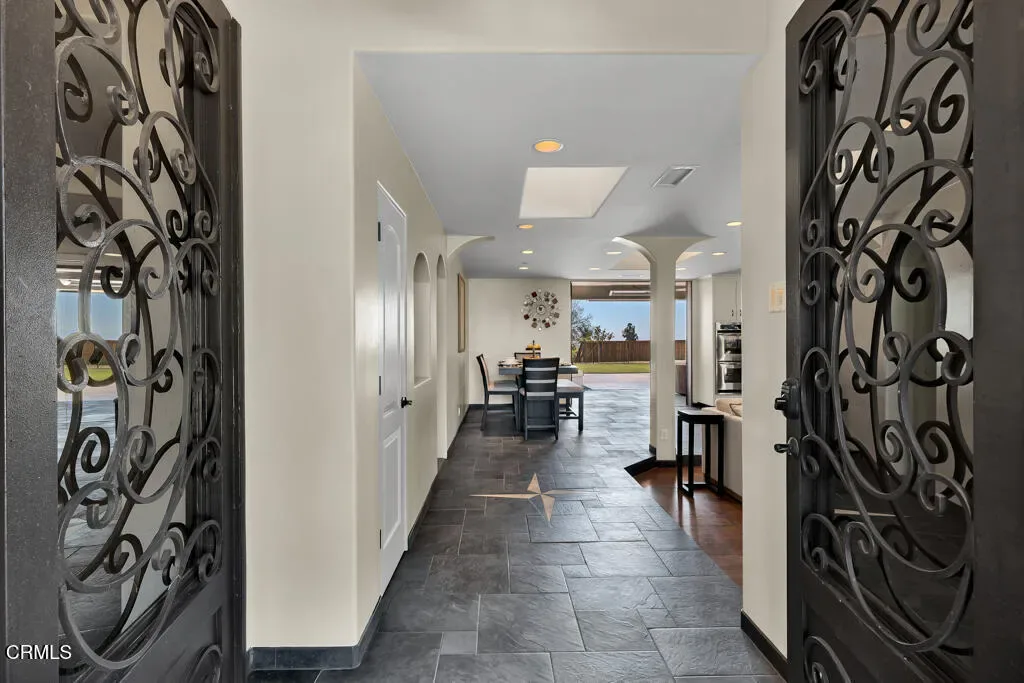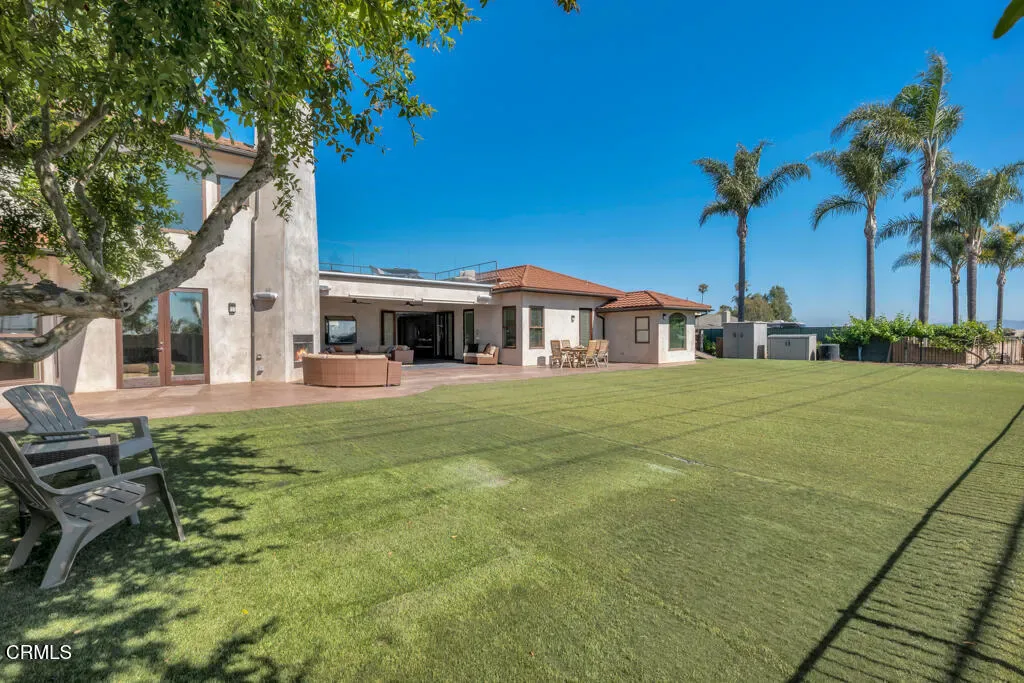 Tucked away on a quiet, flat cul-de-sac in the coveted Las Posas Estates, this spacious and versatile home offers breathtaking views and room to grow. Step through custom iron and glass double doors into a light-filled great room and dining area where natural light floods every corner. Designed for flexibility and comfort, this home features two primary suites on the main level–perfect for multigenerational living–plus a total of five bedrooms, a bonus room, and an oversized loft. Built-in desks in the great room create functional spaces for work, study, or creativity. Set on a large, flat lot, there’s ample room for a boat, trailer, or toys, and even space for a future pool. The accordion-style patio doors open seamlessly to a covered outdoor living area with a fireplace, creating the ideal setting for indoor-outdoor entertaining. Upstairs, a generous deck showcases sweeping views from the Santa Monica Mountains, Point Mugu, the Pacific Ocean, the Channel Islands then around to the Topa Topa mountains–spectacular sunsets await you year-round. The vaulted-ceiling game room offers space for a pool table, poker nights, and a potential wet bar. Additional highlights include a wine cellar, walk-in pantry, three fireplaces, and a 2008 addition that doubled the home’s square footage, adding a new primary suite, expanding the garage, adding a new upstairs level, and reimagining the layout for modern living. The oversized 2-car garage is extra deep and tall, while the separate RV garage accommodates vehicles up to 40′. Thoughtful upgrades include laminate wood and slate-look porcelain tile flooring, a handicap-accessible second primary suite, and artificial turf for low-maintenance yards. Even the driveway offers recreation with half-court basketball lines etched in. Located near three private country clubs, just 20 minutes to the beach, and under an hour to both Santa Barbara and Los Angeles–this is Camarillo living at its finest.