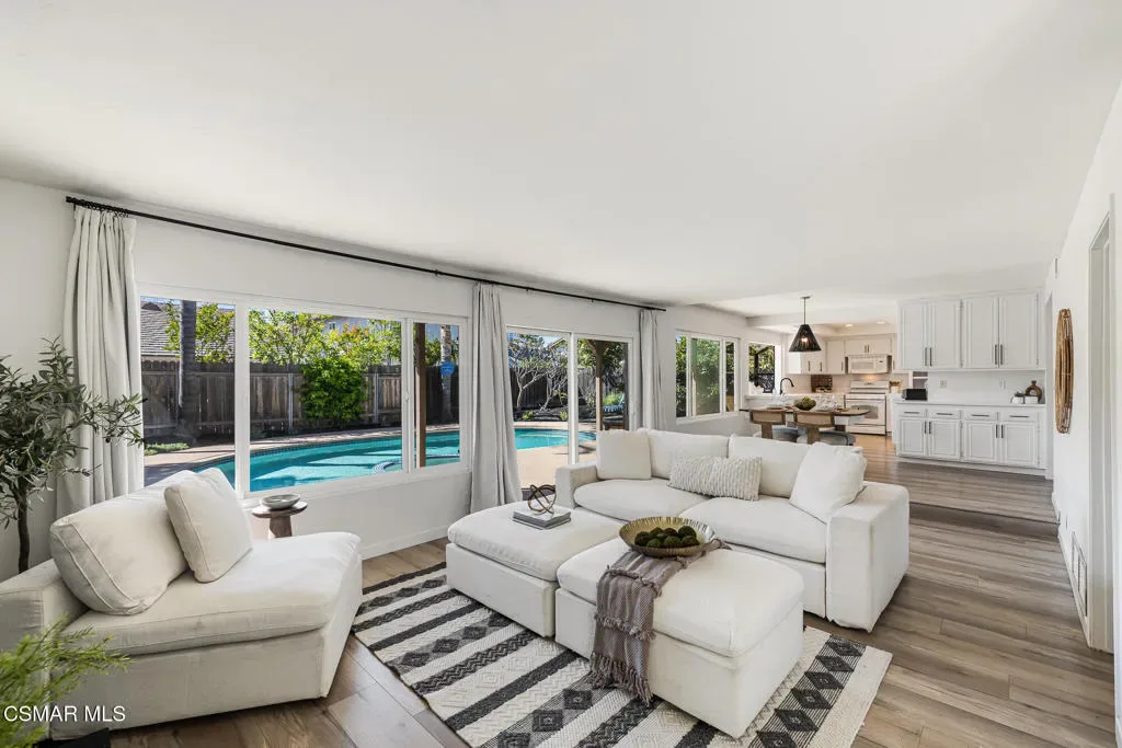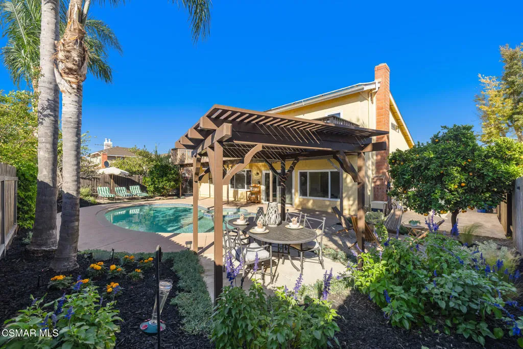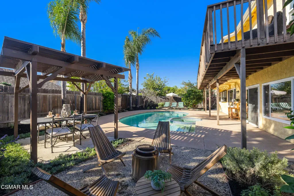 Welcome to 353 Bent Twig Ave. in Camarillo, nestled in one of the area’s most sought-after communities. This beautifully upgraded four-bedroom, 2.5-bathroom home offers the perfect blend of comfort, style, and functionality.Step inside to soaring ceilings and new flooring throughout, and you’ll find an abundance of natural light, creating a grand and inviting first impression. The formal living and dining areas provide an elegant space for gatherings, while the open-concept kitchen flows seamlessly into the breakfast nook and cozy family room, complete with a fireplace and a remodeled built-in bar–ideal for entertaining. Upstairs, the spacious primary suite features a balcony that spans the length of the home, offering a peaceful retreat to enjoy morning coffee or evening sunsets. The primary on-suite bathroom has recently been beautifully remodeled.The backyard is designed for true California living, featuring a covered patio and sparkling pool–perfect for enjoying Camarillo’s beautiful year-round weather. The mature fruit trees include orange, lemon, lime, passion fruit and mandarin orange. The front yard is impeccably landscaped with low-maintenance design, adding to the home’s curb appeal, with room for RV parking on the side yard. Tesla EV charger in garage is included!Situated on a quiet street, this home is conveniently located near dining, award-winning schools, and easy freeway access, making it an exceptional opportunity to enjoy the best of Camarillo living.