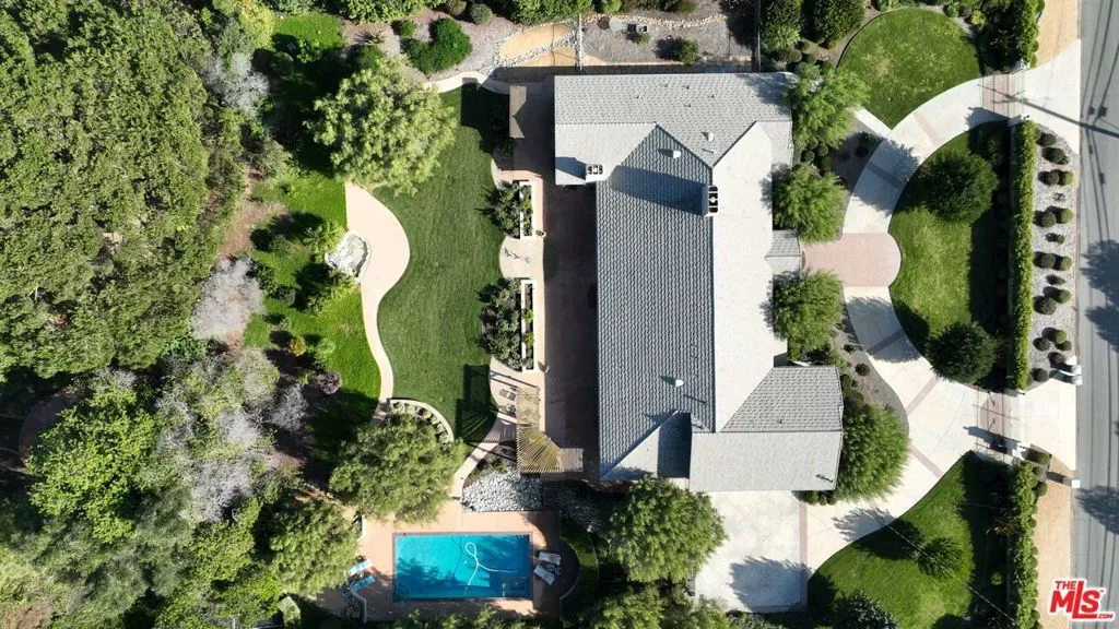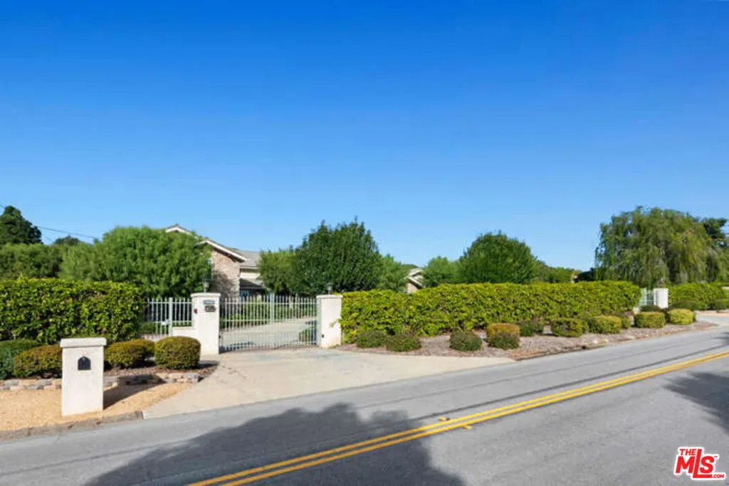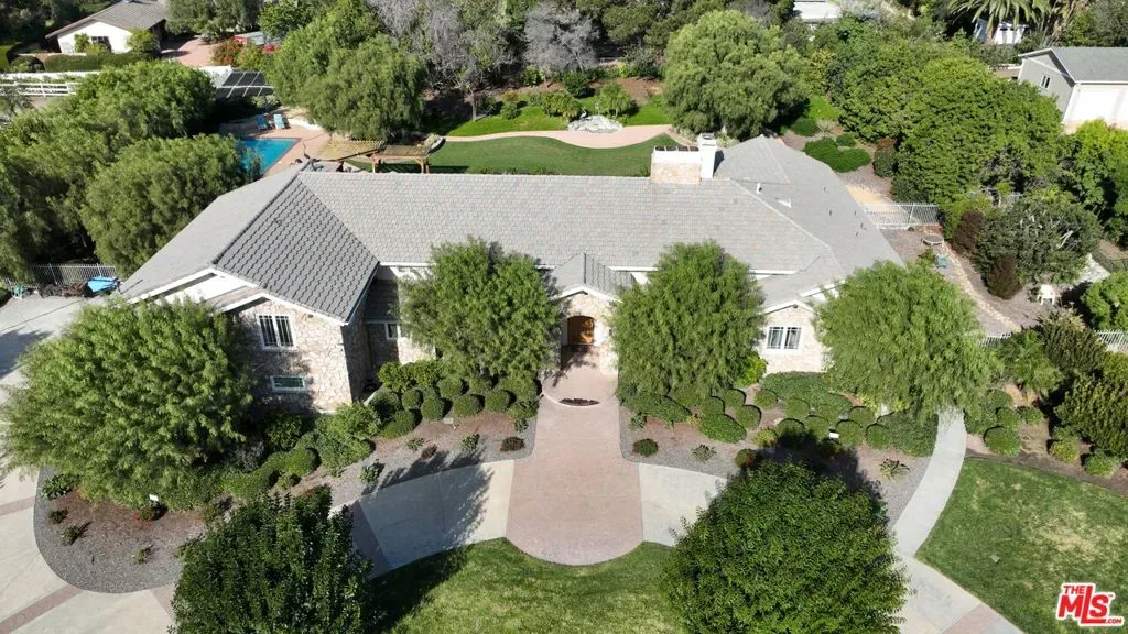 Situated in the highly coveted Las Posas Estates, this beautiful gated and hedged home pairs Ranch style living with a French Country flair. Set upon a full flat acre of lush and private grounds, this six bedroom four and half bathroom estate is one of the rare gems in Camarillo. Featuring 4,551 SqFt of living space, the home is replete with sophisticated details, high-beamed ceilings, wood and tile floors along with spectacular views overlooking the luxuriant grounds. While offering remarkable single story living spaces the home also boasts an additional second story with two bedrooms, a kids play area, a full bathroom and views of the Channel Islands. This stunning estate built in 1998 includes formal dining, a grand vaulted ceiling family room, living room with fireplace, library and office, gourmet chef’s kitchen with a walk-in pantry and marble island, all opening to an immense back porch allowing for large gatherings and relaxed summertime pool vibes. The grand primary suite showcases vaulted ceilings, two sets of sliding doors to the backyard grounds, plenty of sitting space with a fireplace, walk-in closet and a luxurious spa-bath with a separate custom shower. Perfectly located in between the highly sought after local golf courses, Spanish Hills and Las Posas Country Club, the homes immense garage offers plenty of room for two cars and a pair of golf carts.