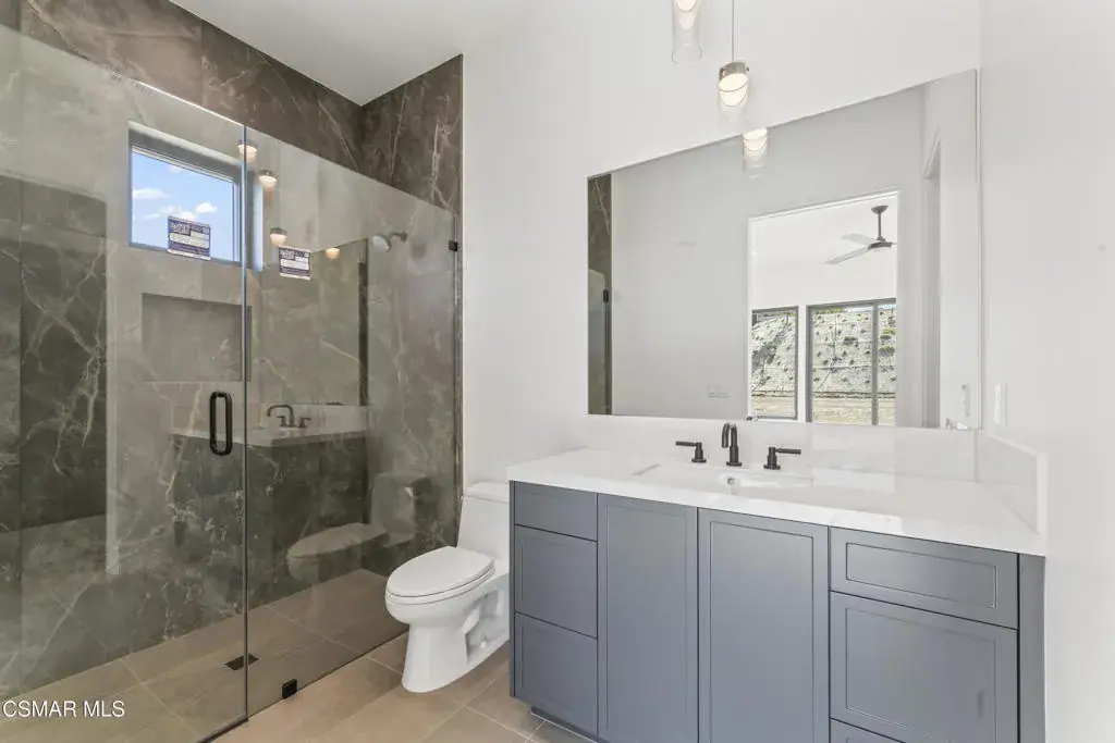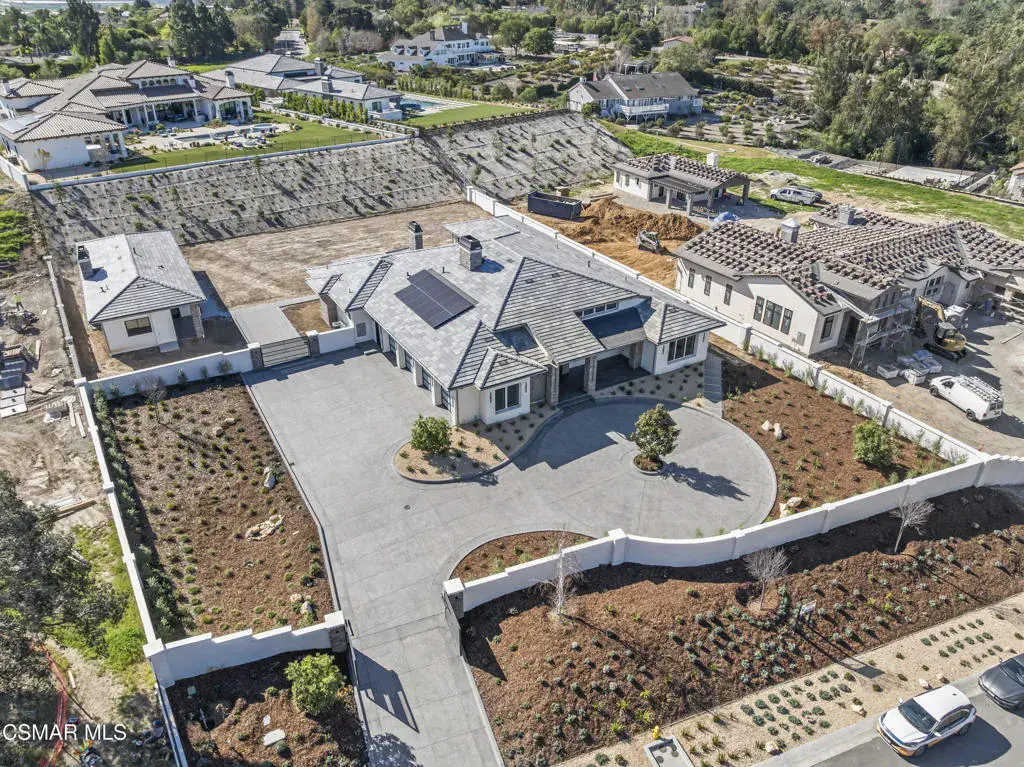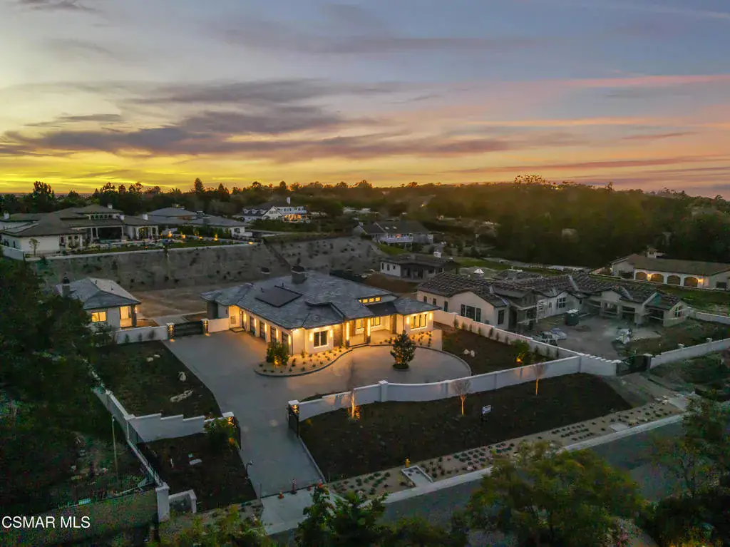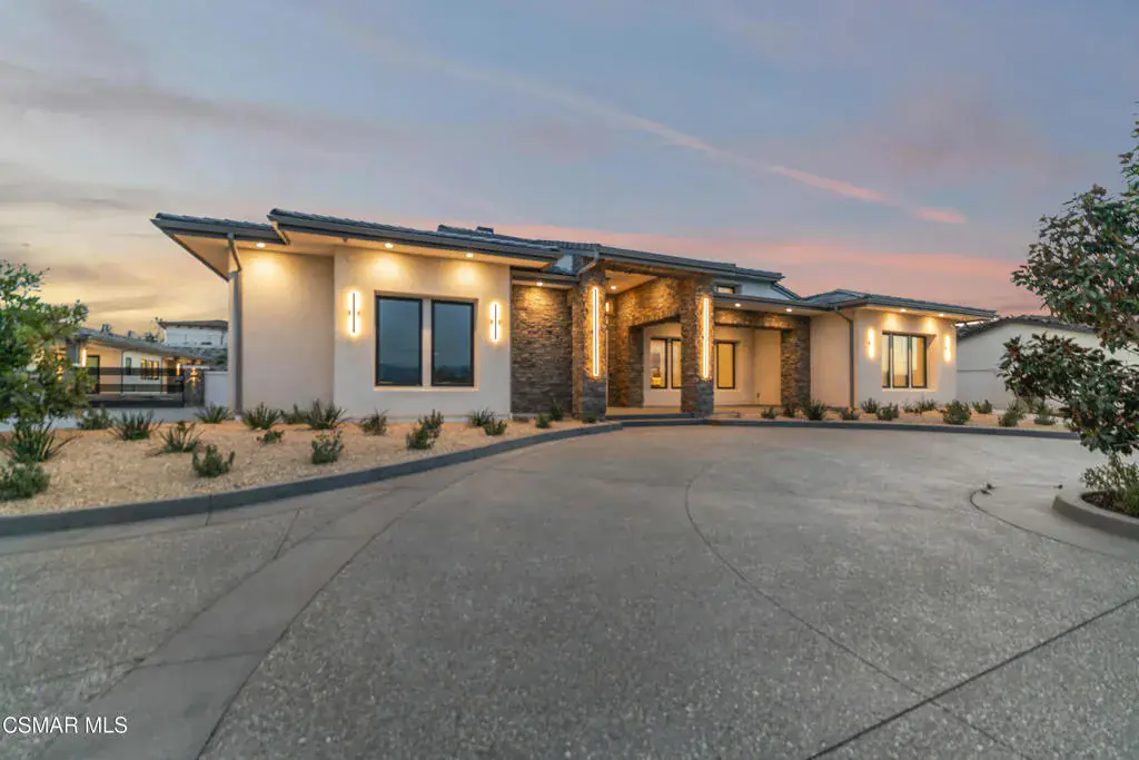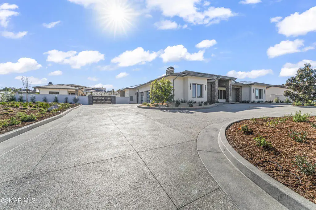 You are invited to experience The Estate at Crestview, an architectural masterpiece completed in 2026 and destined to be admired for years to come. This stunning single-story view home delivers refined craftsmanship and exceptional design throughout.This impressive gated estate sits on an elevated lot, offering privacy, presence, and sweeping neighborhood views. A long, circular driveway leads to a spacious 4-car garage and grand single-level residence with elegant exterior lighting and refined architectural details. Walled and fenced grounds provide security and seclusion, while landscaped terraces frame the approach and enhance curb appeal. The expansive paved motor court is ideal for entertaining and guest parking, creating a dramatic arrival experience. This striking modern residence blends clean architectural lines with elevated design and exceptional natural light. Expansive walls of glass and dramatic clerestory windows flood the interiors with sunshine while maintaining privacy and a seamless connection to the outdoors.At the heart of the home, the open-concept living area showcases a statement fireplace flanked by custom built-in shelving that offers both style and functionality. Large-format sliding glass doors open effortlessly to a covered patio, creating an ideal indoor-outdoor living experience perfect for entertaining or everyday relaxation.The chef’s kitchen is thoughtfully designed with custom cabinetry, oversized island, stone slab backsplash, and premium finishes throughout–combining beauty with practicality. Adjacent living and dining spaces feel bright, airy, and expansive under high ceilings and recessed lighting.Spa-inspired bathrooms feature floor-to-ceiling tile, walk-in showers with built-in benches and niches, and refined modern finishes. Bedrooms are spacious and light-filled, with clean lines and a calming, contemporary aesthetic.Adding exceptional flexibility and value, the property also includes a private, on-site two-bedroom ADU complete with a full kitchen. Ideal for multigenerational living, extended guests, the ADU offers independent living with the same thoughtful design and modern comfort as the main residence.Every detail of this home reflects quality craftsmanship and modern design, from the custom millwork to the architectural window placements. Designed for today’s lifestyle, this home offers a rare blend of sophistication, comfort, and seamless indoor-outdoor living.