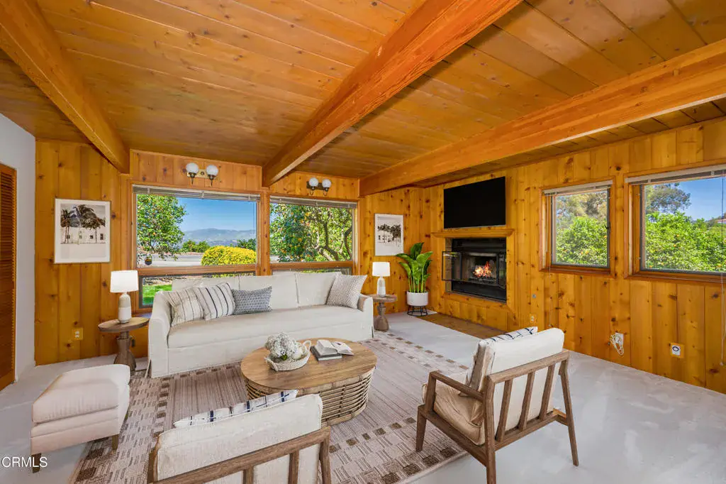 VIEWS, VIEWS, VIEWS! Hilltop Retreat with Panoramic Views | Private Camarillo Estate – Perched atop approximately 23 acres, this 2,900 sq. ft. hilltop home captures breathtaking 270-degree views across Camarillo city lights, the Santa Monica and Los Padres Mountains, and out to the Pacific Ocean and Channel Islands National Park–creating a true ‘top-of-the-world’ setting that’s hard to duplicate. With three spacious bedrooms and three bathrooms, this private retreat is designed to embrace indoor-outdoor living and the natural beauty that surrounds it. Freshly painted inside and out, the home features brand-new carpeting, vinyl plank flooring, and new countertops in all three bathrooms. The open-concept floorplan is highlighted by vaulted ceilings and walls of windows that flood the living spaces with natural light while showcasing the view from nearly every angle. The main level includes a bedroom and full hall bath with a walk-in bathtub that could easily be converted to a walk-in shower. Downstairs, the family room adds rustic charm with knotty pine walls, a wood-beamed ceiling, and a cozy gas fireplace–perfect for relaxing evenings. Upstairs, two expansive bedroom suites with private on-suite baths offer dramatic vistas in multiple directions–Somis and the Los Padres Mountains to the north, and the Santa Rosa Valley and Santa Monica Mountains to the south. Step outside to a large view patio ideal for entertaining, enjoying peaceful ocean view sunsets, or simply taking in the serenity and wide-open skies. The land is a standout feature, offering exceptional versatility and space to create your vision–expanded orchard potential, equestrian use, other animals, extensive vegetable gardens, workshop/outbuildings, and more. An expansive attached two-car garage includes indoor workshop space and additional storage, providing excellent flexibility for hobbies, projects, equipment, and ranch functionality. Additional amenities include two propane tanks and a private generator. Located just minutes from town, you’ll enjoy the best of both worlds: a secluded hilltop setting with quick access to Camarillo’s shopping, dining, schools, and convenient routes to Ventura, Santa Barbara, and Los Angeles. Open Space (OS) zoning may allow for a variety of uses–buyer to verify with Ventura County regarding permitted uses, improvements, and any future plans. Don’t miss this rare opportunity to own a truly unique hilltop property just outside Camarillo.