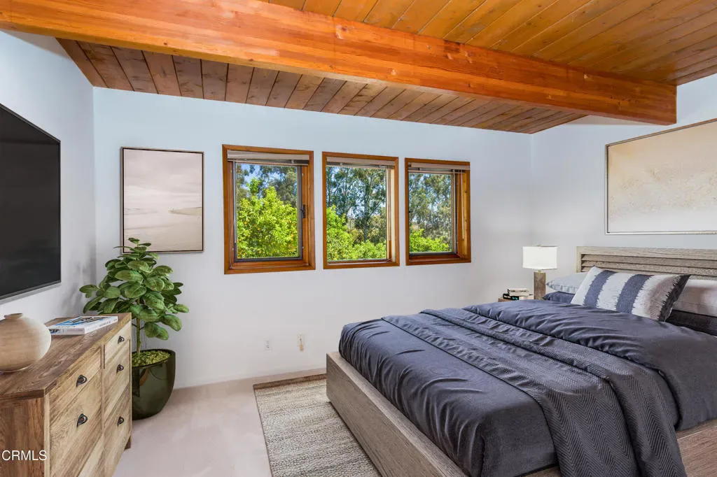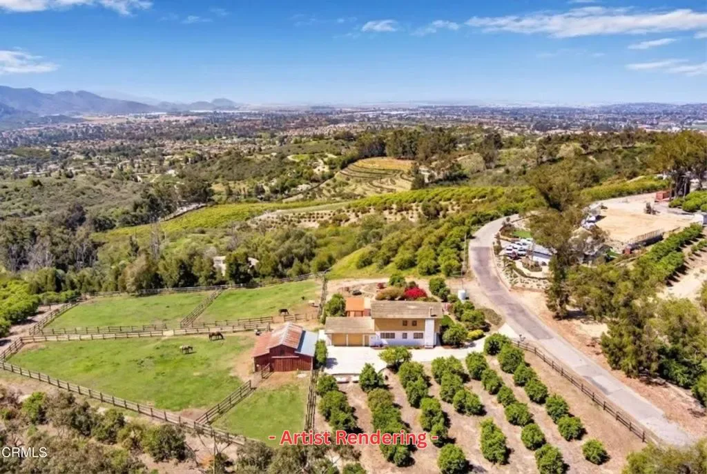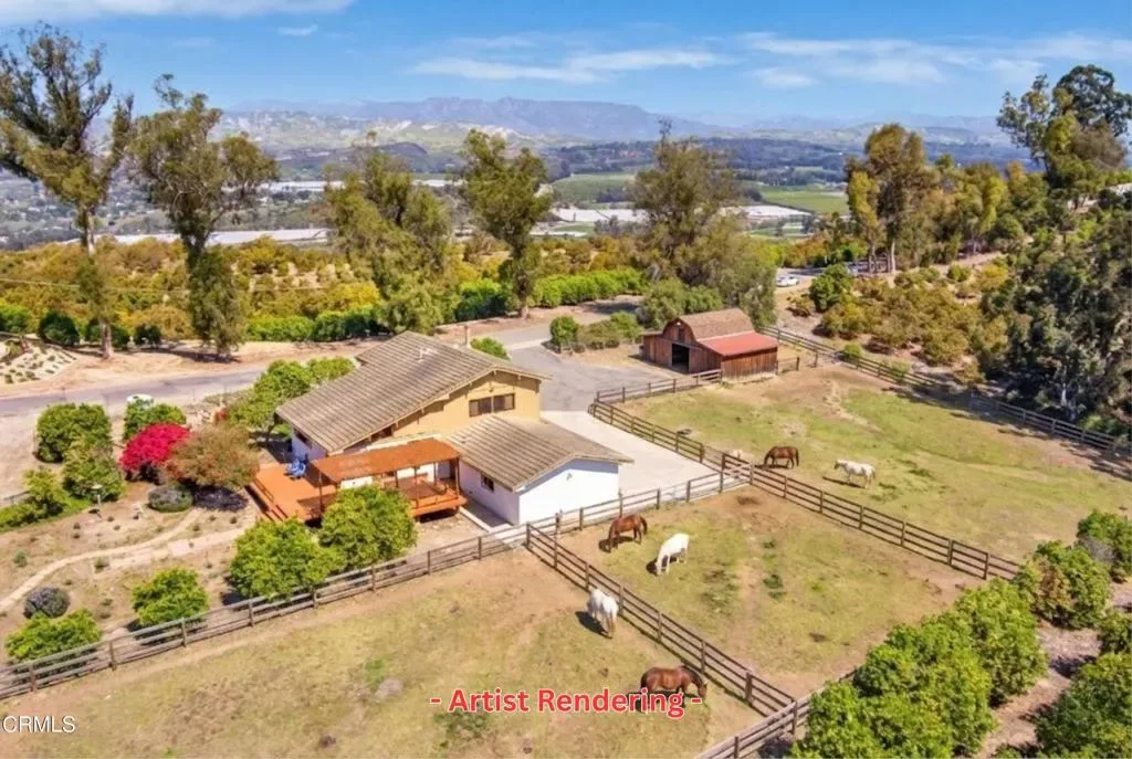 VIEWS, VIEWS, VIEWS! SELLER FINANCING may be available to qualified buyers. Perched atop approximately 23 acres, this 2,900 sq. ft. hilltop home captures breathtaking 270-degree views across Camarillo city lights, the Santa Monica and Los Padres Mountains, and out to the Pacific Ocean and Channel Islands National Park–creating a true ‘top-of-the-world’ setting that’s hard to duplicate. With three spacious bedrooms and three bathrooms, this private retreat is designed to embrace indoor-outdoor living and the natural beauty that surrounds it. Freshly painted inside and out, the home features brand-new carpeting, vinyl plank flooring, and new countertops in all three bathrooms. The open-concept floorplan is highlighted by vaulted ceilings and walls of windows that flood the living spaces with natural light while showcasing the view from nearly every angle. The main level includes a bedroom and full hall bath with a walk-in bathtub that could easily be converted to a walk-in shower. Downstairs, the family room adds rustic charm with knotty pine walls, a wood-beamed ceiling, and a cozy gas fireplace–perfect for relaxing evenings. Upstairs, two expansive bedroom suites with private on-suite baths offer dramatic vistas in multiple directions–Somis and the Los Padres Mountains to the north, and the Santa Rosa Valley and Santa Monica Mountains to the south. Step outside to a large view patio ideal for entertaining, enjoying peaceful ocean view sunsets, or simply taking in the serenity and wide-open skies. The land is a standout feature, offering exceptional versatility and space to create your vision–expanded orchard potential, equestrian use, other animals, extensive vegetable gardens, workshop/outbuildings, and more. An expansive attached two-car garage includes indoor workshop space and additional storage, providing excellent flexibility for hobbies, projects, equipment, and ranch functionality. Additional amenities include two propane tanks and a private generator. Located just minutes from town, you’ll enjoy the best of both worlds: a secluded hilltop setting with quick access to Camarillo’s shopping, dining, schools, and convenient routes to Ventura, Santa Barbara, and Los Angeles. Open Space (OS) zoning may allow for a variety of uses–buyer to verify with Ventura County regarding permitted uses, improvements, and any future plans.