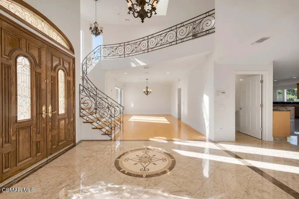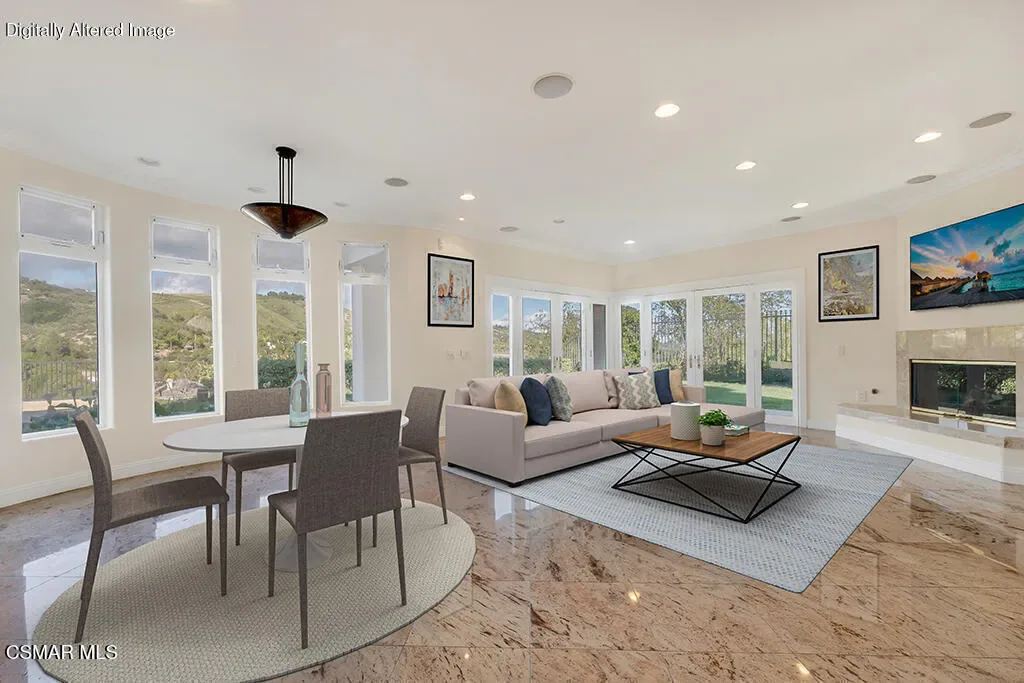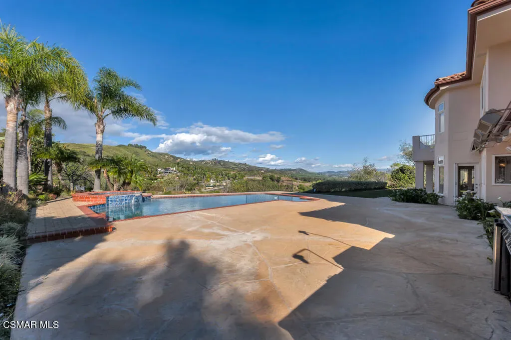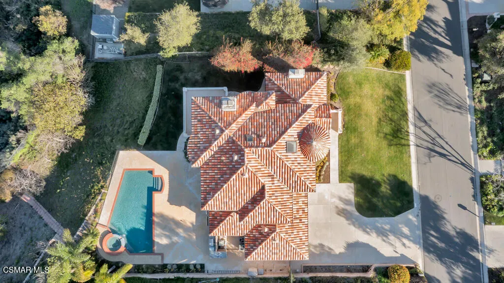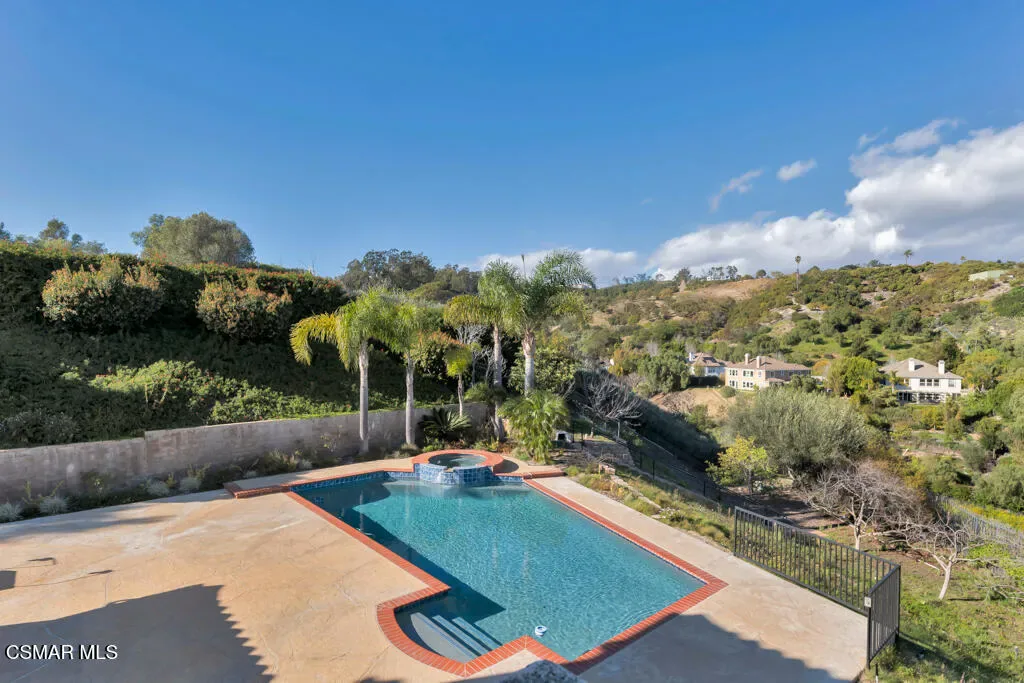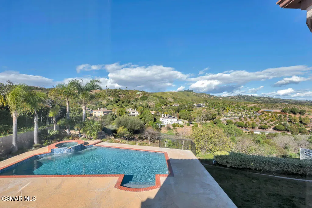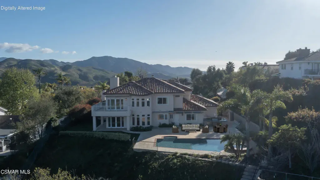 Welcome home to 7111 Los Coyotes Place in prestigious Garnidale Estates. Set on an elevated 22,041 sq ft lot, this exceptional 5-bedroom, 4.5-bath residence showcases striking unobstructed views of the beautiful Santa Rosa Valley. Enter through the large double doors to find soaring ceilings, crown moldings, with thoughtful design for comfort, accessibility, and entertaining.This special home offers true single-level living on both floors, seamlessly connected by a private in-home elevator. The luxurious primary suite features a fireplace, sitting area, walk-in closet, private view deck, and elevator access.At the heart of the home, the gourmet chef’s kitchen boasts Miele appliances, granite countertops, a large island, a built-in refrigerator, and a breakfast nook, opening to an expansive great room with a fireplace, a wet bar, and a reading/piano alcove. Entertain effortlessly in the large formal dining room or relax in the elegant living room with a stone fireplace, recessed lighting, and built-in speaker system.Outdoors, the beautifully elevated ~1/2-acre lot is designed for privacy and year-round enjoyment, featuring a pool & spa with stunning panoramic views, built-in BBQ island with sink, patio heaters, retractable patio cover, manicured lawn, and generous hardscape. A charming private orchard is set below the main yard, which includes fig, persimmon, apple, pear, and pomegranate trees.Additional highlights include a 3-car garage, exceptional privacy, and a layout ideal for both everyday living and entertaining. A truly special Camarillo property combining views, space, accessibility with no HOA and no Mello-Roos.