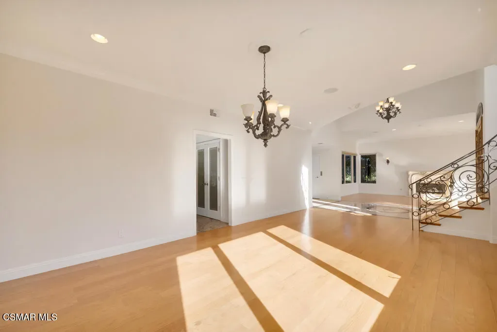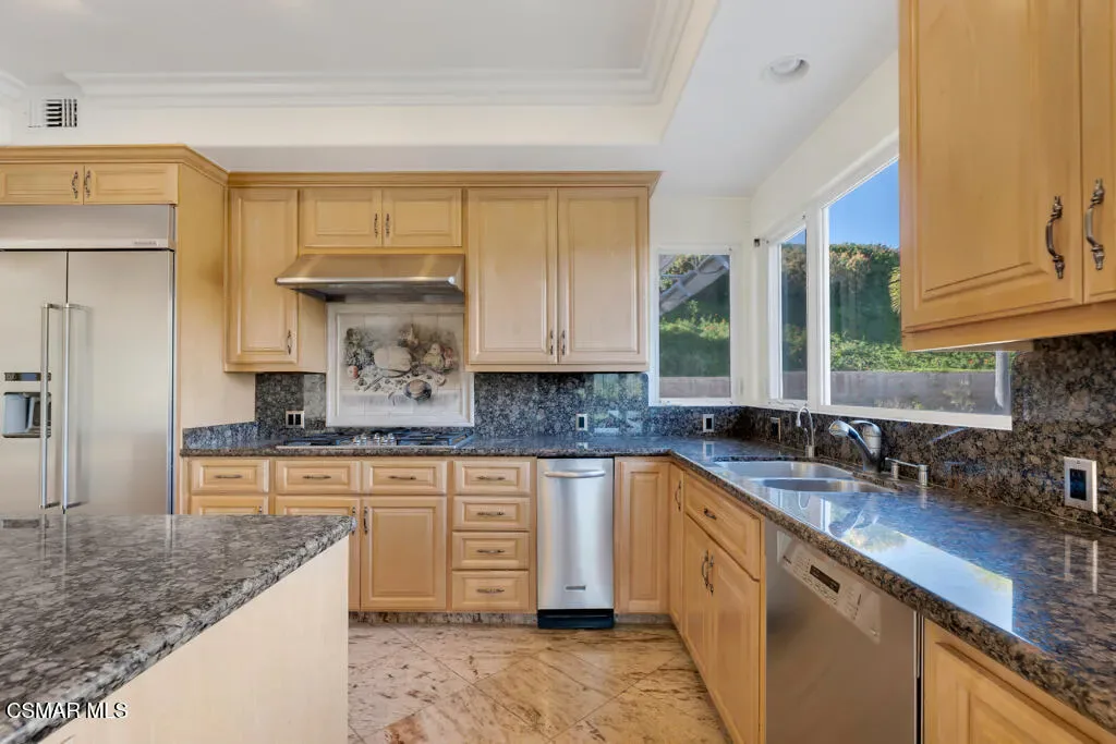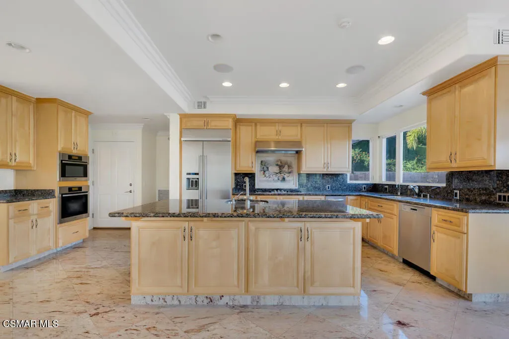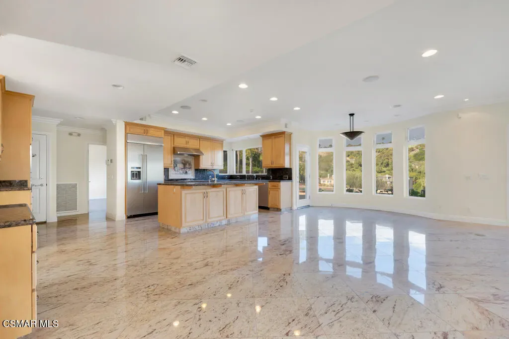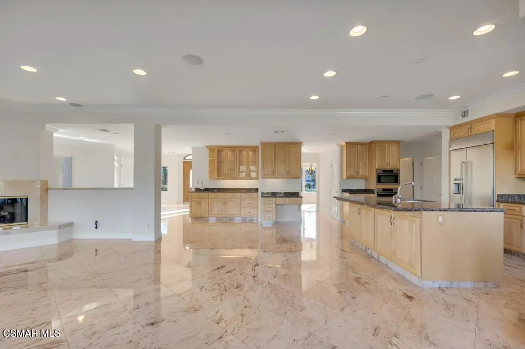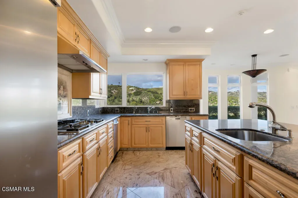 Welcome home to 7111 Los Coyotes Place in prestigious Garnidale Estates. Set on an elevated 22,041 sq ft lot, this exceptional 5-bedroom, 4.5-bath residence showcases striking unobstructed views of the beautiful Santa Rosa Valley. Enter through the large double doors to find soaring ceilings, crown moldings, with thoughtful design for comfort, accessibility, and entertaining.This special home offers true single-level living on both floors, seamlessly connected by a private in-home elevator. The luxurious primary suite features a fireplace, sitting area, walk-in closet, private view deck, and elevator access.At the heart of the home, the gourmet chef’s kitchen boasts Miele appliances, granite countertops, a large island, a built-in refrigerator, and a breakfast nook, opening to an expansive great room with a fireplace, a wet bar, and a reading/piano alcove. Entertain effortlessly in the large formal dining room or relax in the elegant living room with a stone fireplace, recessed lighting, and built-in speaker system.Outdoors, the beautifully elevated ~1/2-acre lot is designed for privacy and year-round enjoyment, featuring a pool & spa with stunning panoramic views, built-in BBQ island with sink, patio heaters, retractable patio cover, manicured lawn, and generous hardscape. A charming private orchard is set below the main yard, which includes fig, persimmon, apple, pear, and pomegranate trees.Additional highlights include a 3-car garage, exceptional privacy, and a layout ideal for both everyday living and entertaining. A truly special Camarillo property combining views, space, accessibility with no HOA and no Mello-Roos.