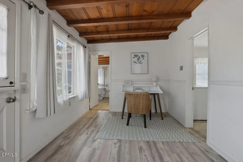 Welcome to 78 West Loop Drive in desirable Camarillo Heights, a rare half acre property offering versatility, income potential, and usable land. The main home features 3 bedrooms, 2 bathrooms, real wood flooring in the living area, and beautiful wood beamed ceilings in the primary bedroom that add warmth and character.Behind the main house is a large detached 1 bedroom, 1 bath unit with its own laundry and mini split AC system. The guest house also features wood beamed ceilings in the bedroom, creating a charming and inviting space ideal for extended family, guests, or rental income.The property also includes a large workshop with its own bathroom, perfect for a home business, hobbies, or additional storage.Enjoy expansive grass areas, mature trees, and multiple avocado trees creating a private outdoor setting with plenty of room to expand, entertain, or park recreational vehicles. Additional highlights include RV hookups and designated RV parking.The main house features a brand new roof for added peace of mind. Located in Camarillo Heights and within walking distance to popular shopping, restaurants, and everyday conveniences.Rare opportunity to own a property with a main home, detached guest house, workshop, RV parking, and usable half acre lot in one of Camarillo’s most sought after neighborhoods.
