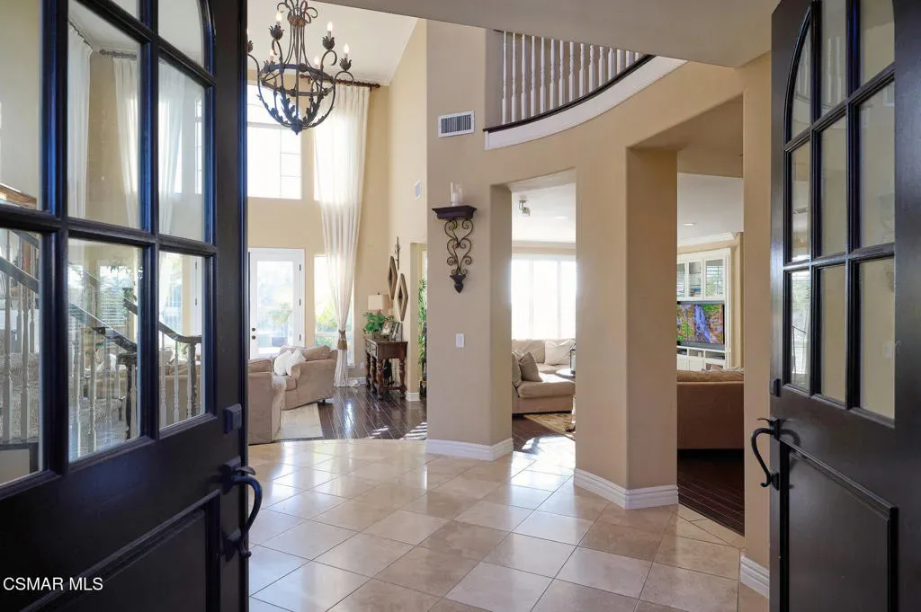 Luxury golf course living in Sterling Hills! This 5BD/5BA home with an oversized 3-car garage sits on the 18th fairway, offering panoramic views and stunning sunsets in a gated Camarillo community close to shopping, dining, and beaches.Located in the prestigious Sterling Hills Gated Golf Course Community in Camarillo, enjoy panoramic golf course views, vibrant sunsets, and a highly desirable Camarillo golf course lifestyle. This home is NOT in a high fire zone.The expansive, well-designed floor plan offers ideal spaces for both entertaining and everyday living. Each of the five spacious bedrooms includes convenient access to a full bathroom, providing comfort and privacy for family and guests. Open-concept living areas, abundant natural light, and large windows frame sweeping fairway views throughout the home. Ask about backyard golf course fence options.Seamless indoor-outdoor living allows you to enjoy peaceful mornings overlooking the greens, outdoor dining, and relaxing evenings surrounded by scenic views–perfect for Camarillo’s year-round mild climate.Ideally located near Camarillo Airport, award-winning schools, Camarillo Premium Outlets, Costco, fine dining, local beaches, and major commuter routes. A rare opportunity to own a luxury golf course home in Sterling Hills, one of Camarillo’s most sought-after gated communities.