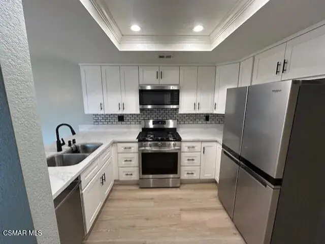 This beautifully upgraded 2-bedroom, 2.5-bathroom condo, located in the gated community of Camarillo Springs offers 1385 sq. ft. and has an attached 2 car garage. The gourmet kitchen is appointed with stainless steel appliances, granite countertops, and white cabinetry offering plenty of storage. Additional upgrades include wood-like vinyl flooring, ceiling fans in the bedrooms, and the living room, smart thermostat, water filtration system, mirrored closet doors, wood shutters, recessed lights and private patio. Washer and dryer in the garage. Community pool, spa, clubhouse and BBQs. Guest parking. Easy access to the 101 Freeway, hiking and golf course.