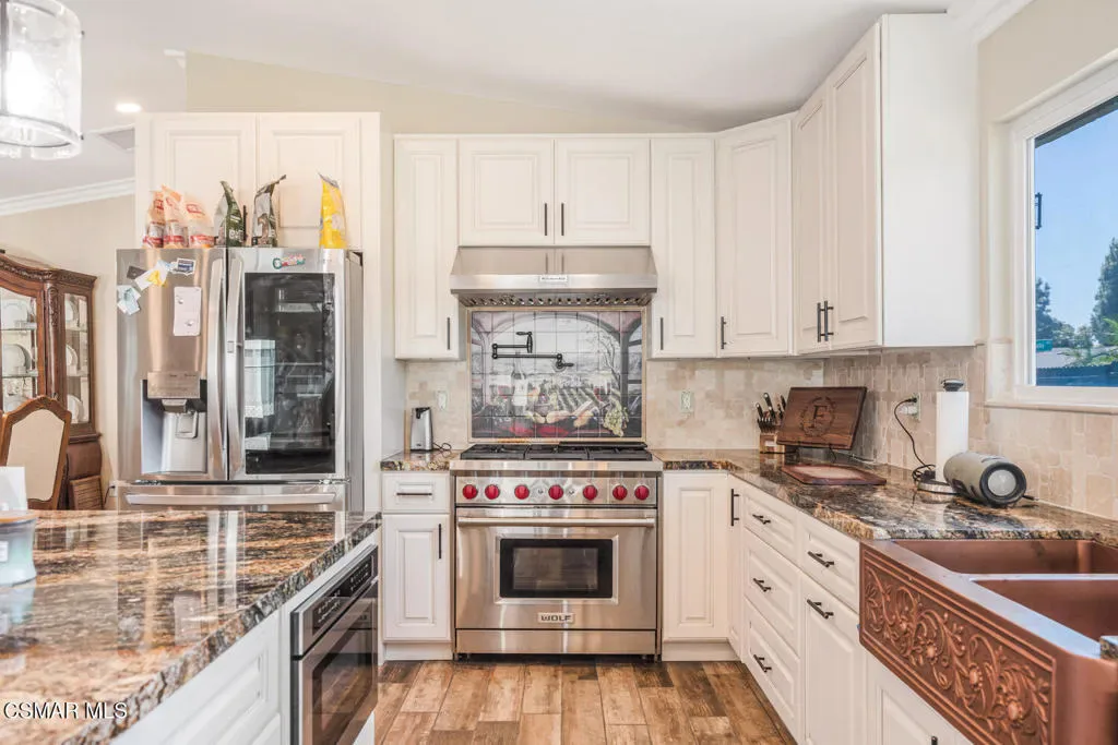 ****COMPLETELY REMODELED TOP TO BOTTOM****Welcome Home to this beautifully upgraded single-story home in the heart of Camarillo, where comfort, style, and California living come together seamlessly.From the moment you arrive, you’re greeted by charming curb appeal, fresh landscaping, and a modern exterior with stone accents that set the tone for what’s inside. Step inside through a pair of striking architectural iron doors into a light filled interior featuring an open-concept layout, designed for both everyday living and effortless entertaining.At the center of the home is a stunning, fully remodeled kitchen complete with self closing custom cabinetry, granite countertops, professional-style wolf range. The custom tile backsplash adds character, while the copper farmhouse sink brings in a unique, upscale touch that really sets the space apart. A spacious center island with seating, storage and designer pendant lighting. The kitchen flows seamlessly into the dining and living areas, creating a warm and inviting space perfect for gatherings.The home continues to impress with thoughtfully updated finishes throughout, including wood-style flooring, recessed lighting, large primary bedroom with walk-in closet the size of a room, spa-inspired bathroom featuring a walk-in shower with custom tile work and rainfall shower head. Two more generously sized bedrooms and an office which can be used as a bedroom. The secondary bathroom continues that elevated feel with a beautiful furniture-style vanity with granite countertop, while the showstopper is the freestanding copper soaking tub with vintage-style fixtures, giving the room a spa-like feel with a bit of rustic elegance.Outside, enjoy a generously sized yard with plenty of room to relax, entertain, or create your dream outdoor space. The wide driveway offers flexibility for additional parking, RV potential, or extra storage.Located in one of Ventura County’s most desirable communities, this home offers the best of Camarillo living, known for its mild year-round climate, relaxed atmosphere, and proximity to beaches, parks, and shopping. This is a rare opportunity to own a move-in-ready home that blends modern upgrades with timeless comfort in an exceptional location, near parks, schools, shopping, and everything Camarillo has to offer, this home is TRULY TURNKEY and presents an incredible opportunity for buyers looking for quality, upgrades, and value.