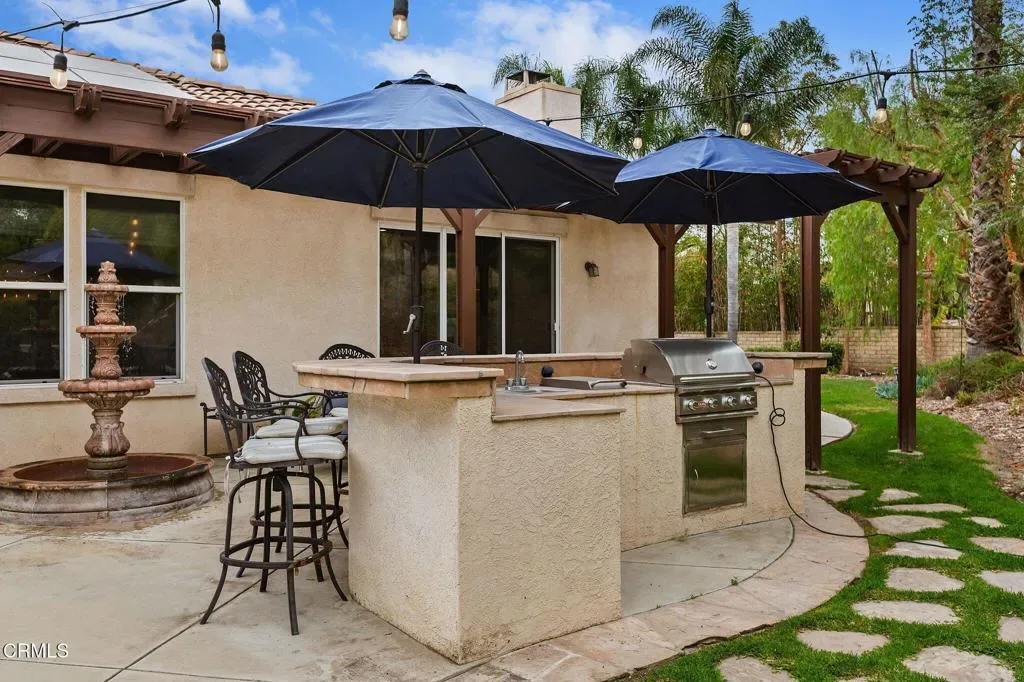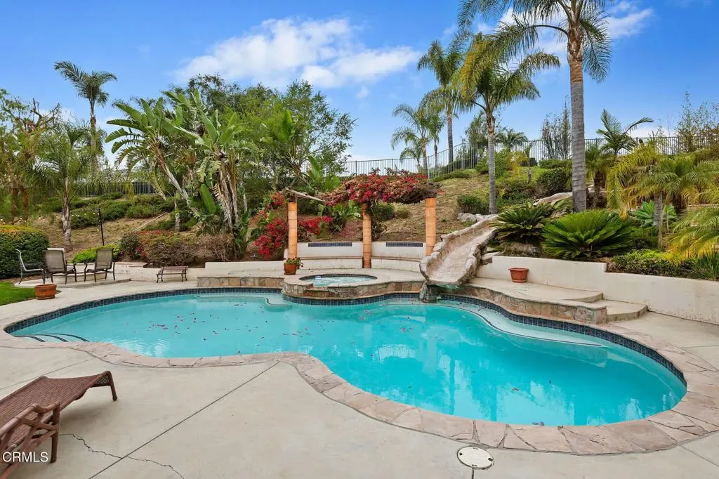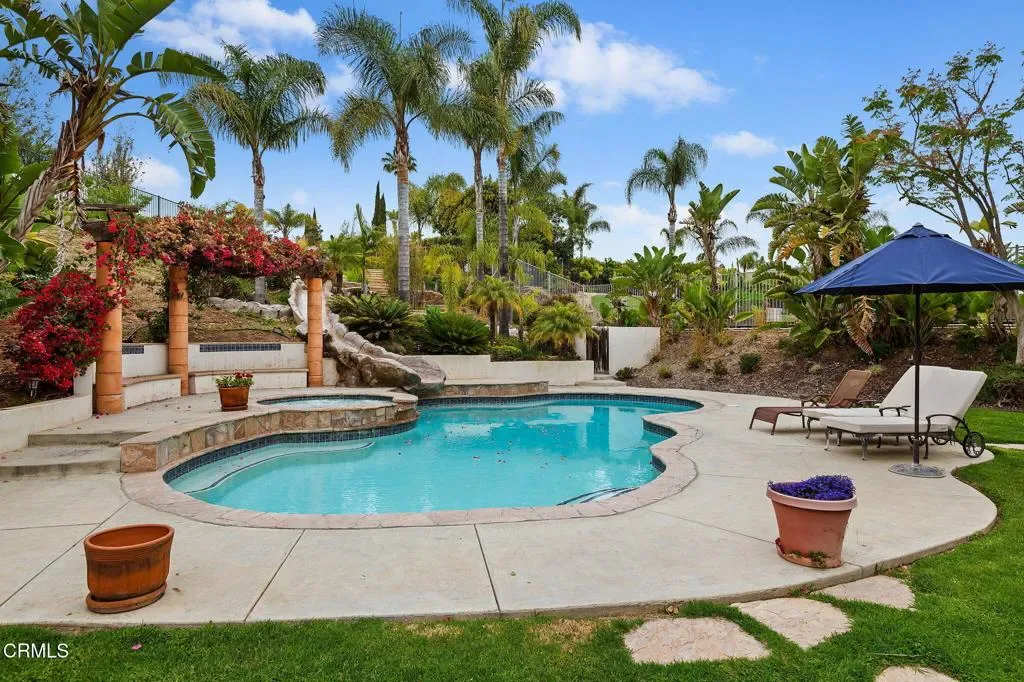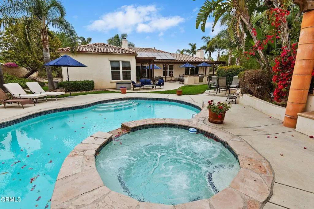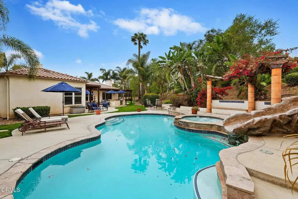 Welcome to 1707 Corte Jubilo – the best lease opportunity in Camarillo! This stunning single-story 3,394 sq ft residence sits on a rare 3/4 acre lot in a desirable cul-de-sac in the Bella Rosa neighborhood. Boasting 4 spacious bedrooms and 3.5 luxurious bathrooms, the home features high ceilings, abundant natural light, engineered wood flooring, and elegant finishes throughout.The chef’s kitchen offers quartz countertops, high-end stainless steel appliances, a large island with seating, and ample cabinetry. Enjoy formal dining for 8+ and multiple living spaces, including a family room and living room with cozy fireplaces.The serene primary suite includes a Cal King bed (furnished option), walk-in closet, sitting area with leather recliner, and a spa-like ensuite bath with soaking tub, walk-in shower, and double vanity. Additional bedrooms feature queen and twin beds (furnished), with Jack-and-Jill convenience.Step outside to your private entertainer’s paradise: a sparkling pool with slide, spa, built-in BBQ, and patio seating, all overlooking beautiful mountain views. Solar panels help reduce electricity costs. Perfectly located near top schools, the 101/118 freeways, shopping, dining, and hiking trails.Available furnished or unfurnished. Don’t miss this turnkey luxury home – schedule your showing today!