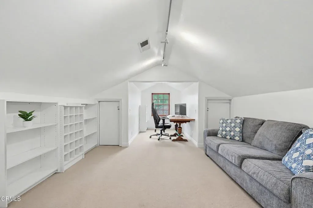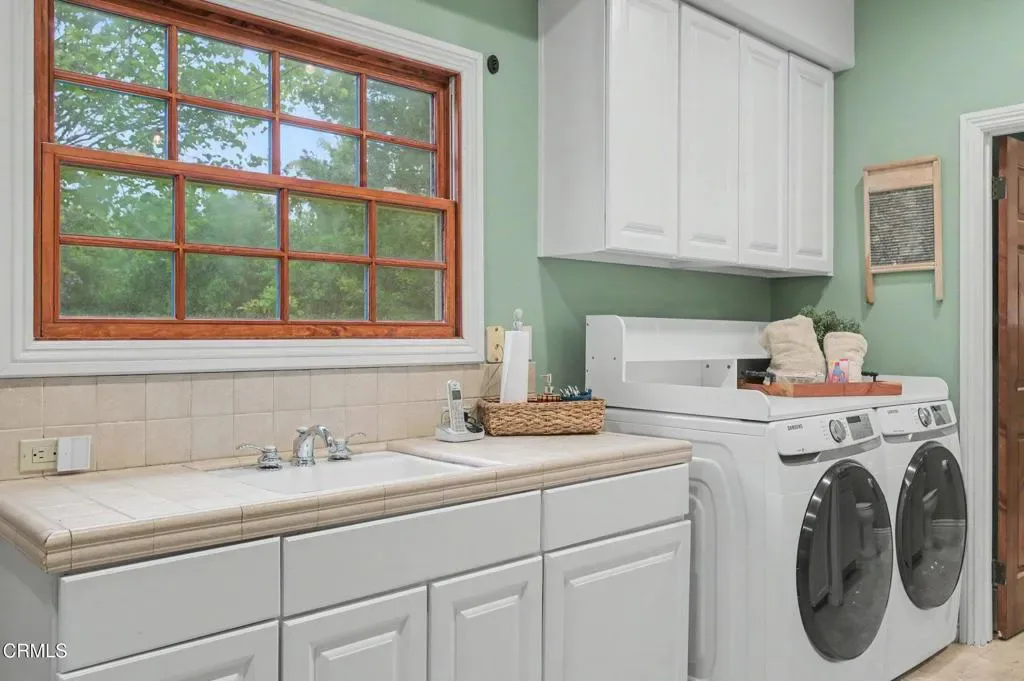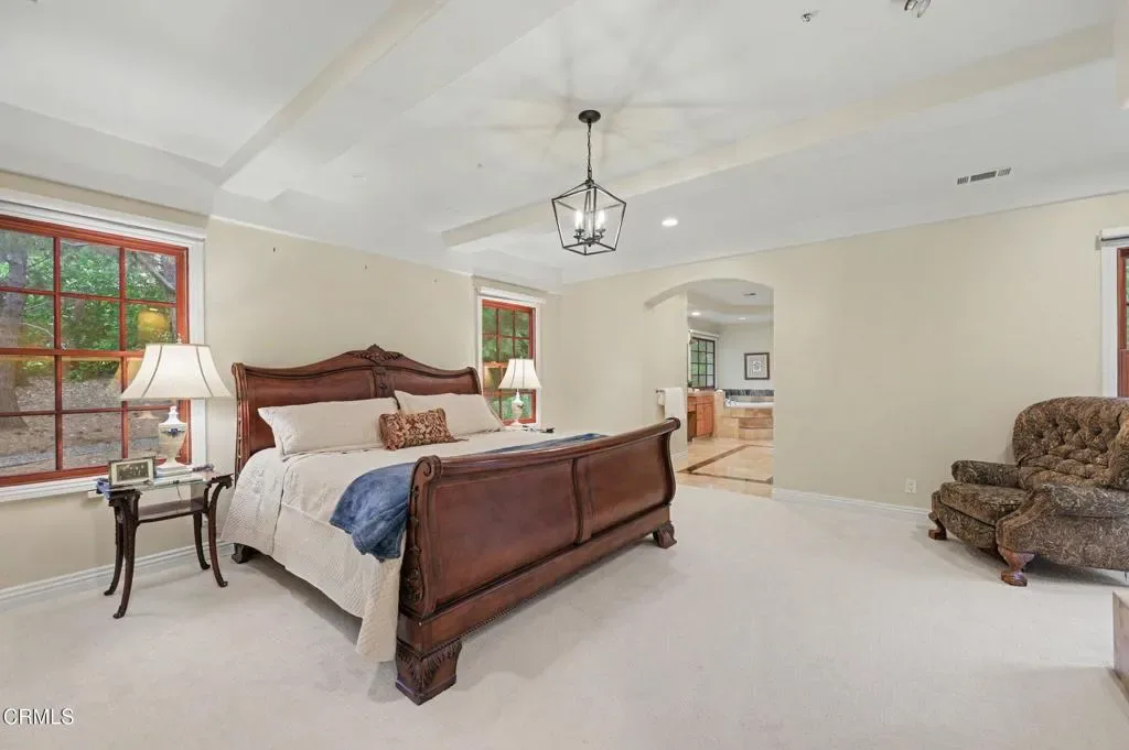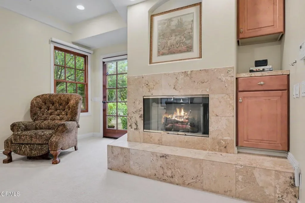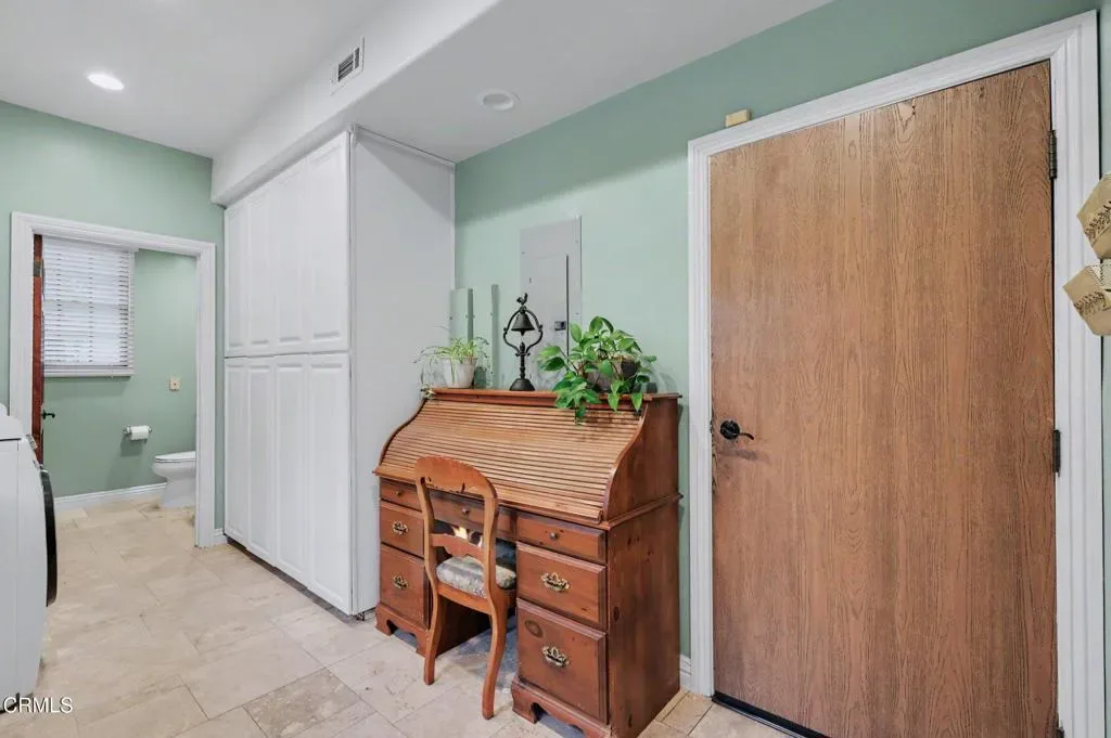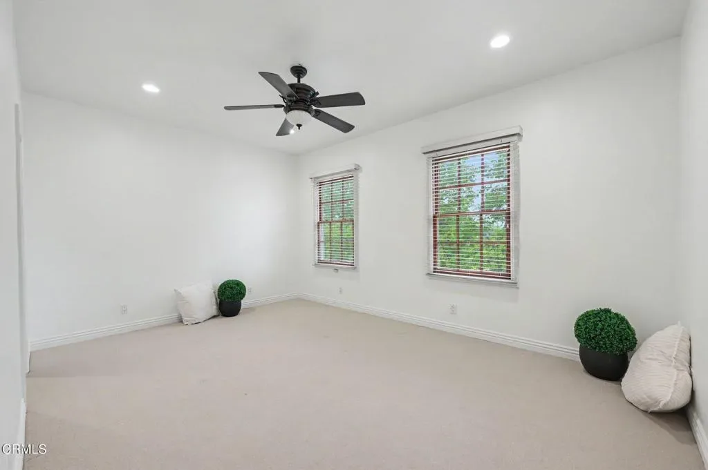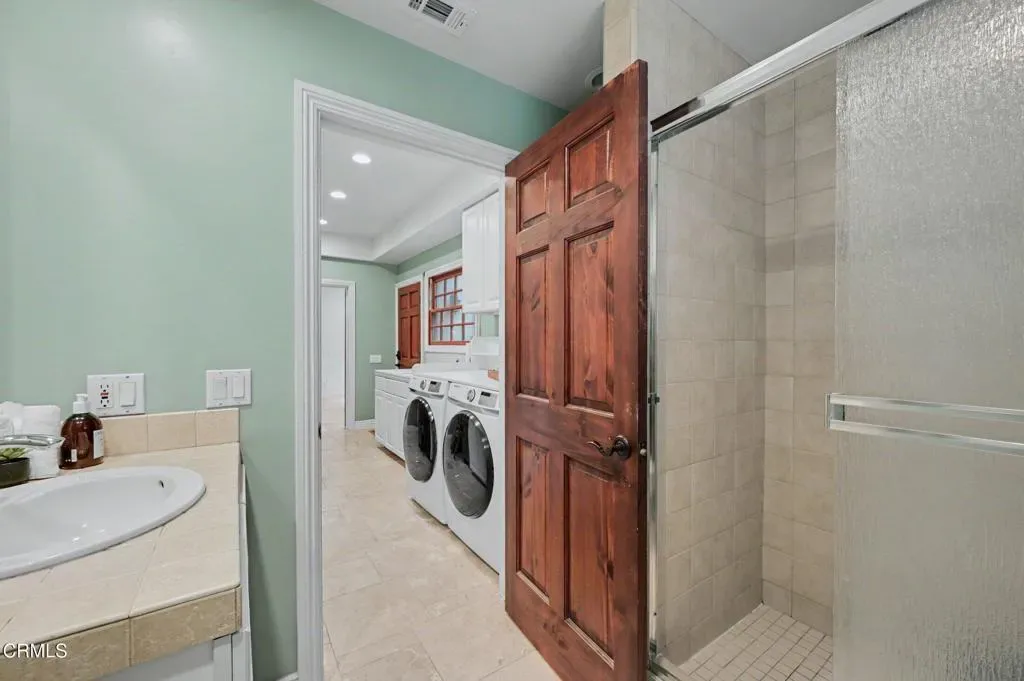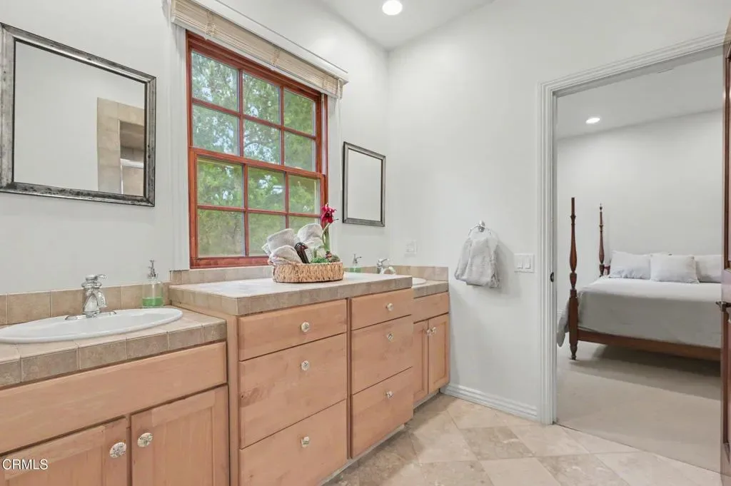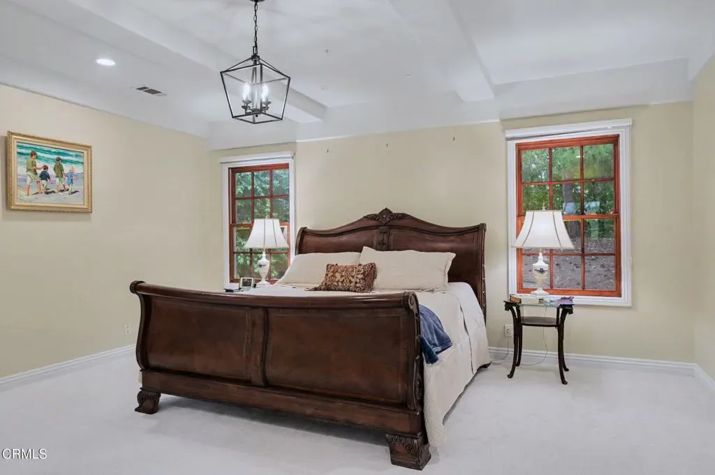 This extraordinary 5 bed, 4.5 bath custom estate is located on over an acre of land in Bella Vista, one of Ventura County’s most desirable gated communities. Designed with both flexibility and everyday living in mind, the home features a highly sought-after primary suite on the main level, along with a spacious downstairs family room, office, and laundry room, ideal for single-level living if desired. The primary suite includes its own fireplace, dual walk-in closets, and an en-suite bath with custom vanities and a Jacuzzi tub. The lower level showcases a dynamic, open-concept layout with a double-height vaulted family room that flows into the kitchen. The kitchen features a large breakfast bar with seating for four, a breakfast nook, ample storage, and a walk-in pantry, and connects to the formal dining room overlooking the front landscaping. A separate formal living room with a fireplace provides an additional gathering space. Upstairs, four additional bedrooms are complemented by a versatile loft-style bonus space, perfect for a playroom, office, or additional lounge area, complete with its own window and generous attic storage.Outside, the grounds are a standout feature, with mature landscaping and a variety of fruit trees blooming for your enjoyment. The backyard includes an extensive built-in barbecue area and a large open space that can accommodate a pool, spa, pickleball court, or outdoor events. The property includes both an attached two-car garage and a detached two-car garage, offering flexibility for additional parking, a workshop, or office space. A circular driveway and mature front trees enhance both privacy and curb appeal. Lime, lemon, pomegrante, apricot, apple, champagne grapes, orange, artichokes, and figs make this a gardener’s paradise. Located in Camarillo, Bella Vista offers convenient access to nearby golf courses including Las Posas Country Club, Sterling Hills, and Spanish Hills, as well as easy access to both Los Angeles and Santa Barbara.With fewer than 100 custom homes in this community, Bella Vista offers a rare sense of privacy, tranquility, and timeless appeal. Offered for the first time since its original construction, this home presents a unique opportunity in a highly sought-after community.