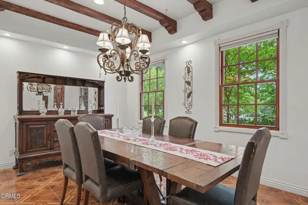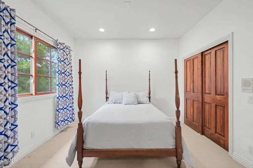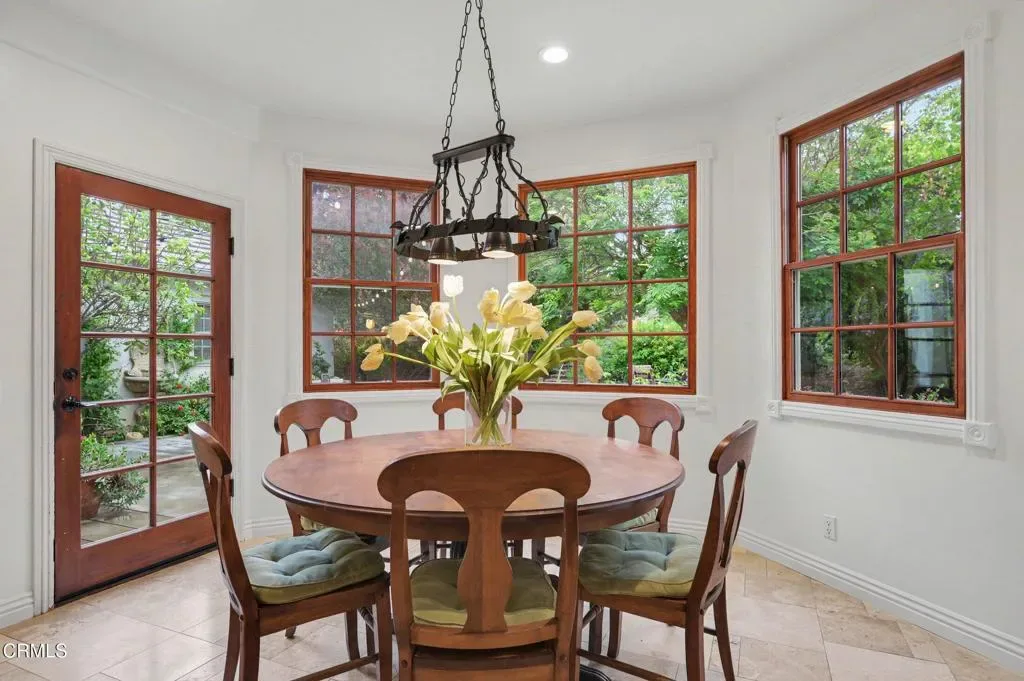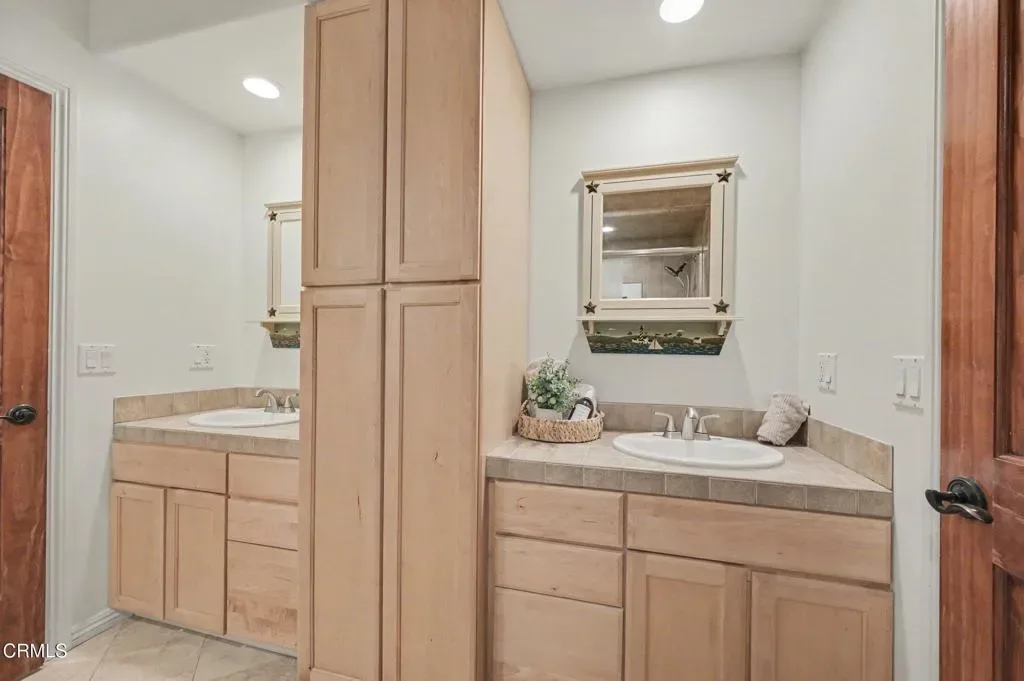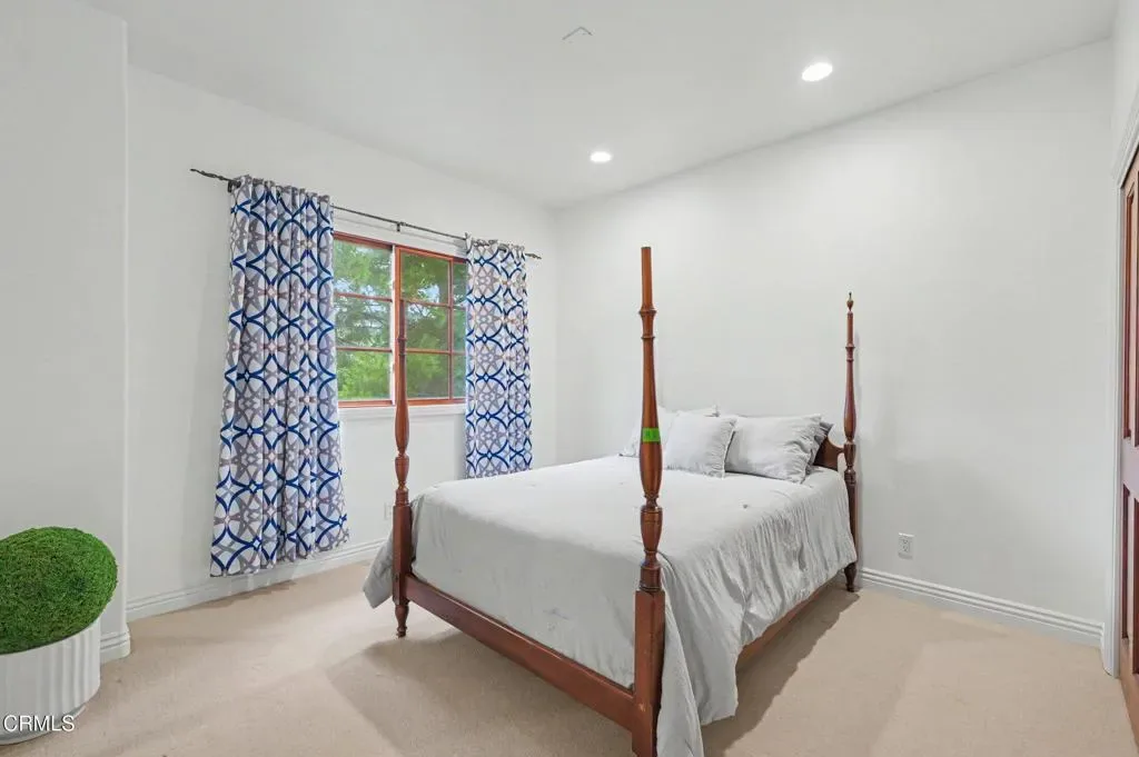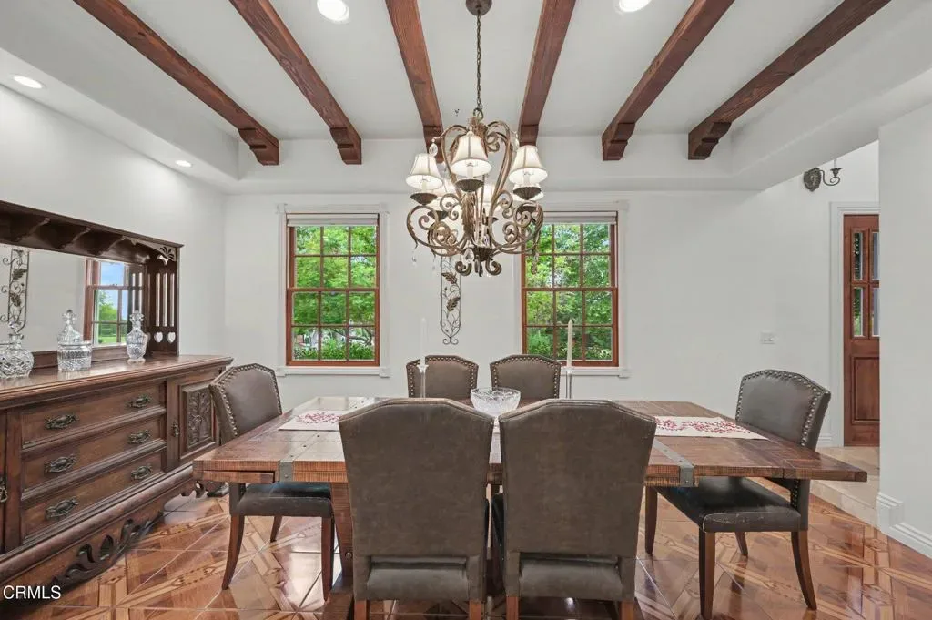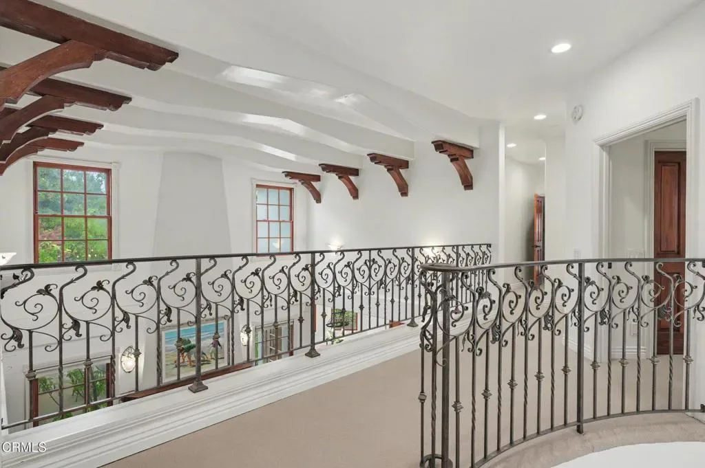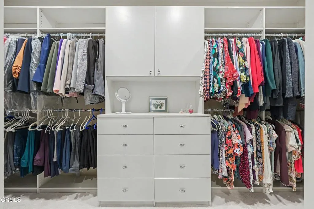 This extraordinary 5 bed, 4.5 bath custom estate is located on over an acre of land in Bella Vista, one of Ventura County’s most desirable gated communities. Designed with both flexibility and everyday living in mind, the home features a highly sought-after primary suite on the main level, along with a spacious downstairs family room, office, and laundry room, ideal for single-level living if desired. The primary suite includes its own fireplace, dual walk-in closets, and an en-suite bath with custom vanities and a Jacuzzi tub. The lower level showcases a dynamic, open-concept layout with a double-height vaulted family room that flows into the kitchen. The kitchen features a large breakfast bar with seating for four, a breakfast nook, ample storage, and a walk-in pantry, and connects to the formal dining room overlooking the front landscaping. A separate formal living room with a fireplace provides an additional gathering space. Upstairs, four additional bedrooms are complemented by a versatile loft-style bonus space, perfect for a playroom, office, or additional lounge area, complete with its own window and generous attic storage.Outside, the grounds are a standout feature, with mature landscaping and a variety of fruit trees blooming for your enjoyment. The backyard includes an extensive built-in barbecue area and a large open space that can accommodate a pool, spa, pickleball court, or outdoor events. The property includes both an attached two-car garage and a detached two-car garage, offering flexibility for additional parking, a workshop, or office space. A circular driveway and mature front trees enhance both privacy and curb appeal. Lime, lemon, pomegrante, apricot, apple, champagne grapes, orange, artichokes, and figs make this a gardener’s paradise. Located in Camarillo, Bella Vista offers convenient access to nearby golf courses including Las Posas Country Club, Sterling Hills, and Spanish Hills, as well as easy access to both Los Angeles and Santa Barbara.With fewer than 100 custom homes in this community, Bella Vista offers a rare sense of privacy, tranquility, and timeless appeal. Offered for the first time since its original construction, this home presents a unique opportunity in a highly sought-after community.