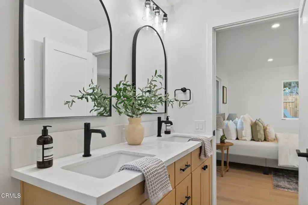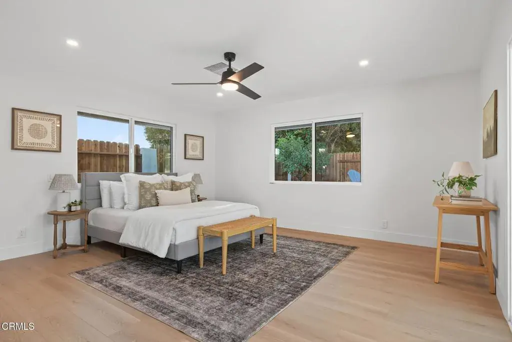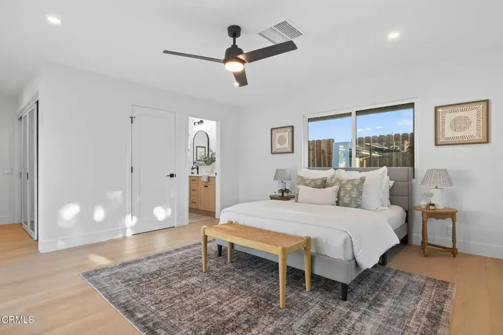 Welcome to your Camarillo Heights dream home!Tucked away on a peaceful cul-de-sac with scenic mountain views, this single-level 4-bedroom, 3-bathroom residence has been completely reimagined from top to bottom with every detail is NEW and designed to impress.Step inside to a stunning open-concept living space featuring luxury PVC luxury flooring, a cozy fireplace with a wood mantel, skylight, recessed lighting & ceiling fan, and sliding doors that fill the home with natural light and offer a peek at the sparkling pool. The living and dining areas flow seamlessly into the chef’s kitchen, showcasing a large quartz island, floating wood shelves, stainless steel DACOR luxury appliances, range hood, and a stylish butler’s pantry complete with wine fridge, for the ultimate gorgeous kitchen! The home features two primary suites, each with recessed lighting, ceiling fans, large closets, and beautifully finished en suite bathrooms highlighted by black accent fixtures, designer tile, and enclosed glass showers. The back primary bedroom looks out to the pool and mountain views! Two additional spacious bedrooms offer ample closet space and modern touches throughout.Outside, enjoy new stucco, fresh exterior paint with crisp white and black accents, a new paver driveway, and a striking modern wood front door all giving curb appeal! The backyard is an entertainer’s paradise with a fully renovated pool and spa, new equipment, pavers surrounding the pool, and a raised deck ideal for lounging or having a live band to host parties! Enjoy mountain views and nearly 10,000 square feet of outdoor living. Private courtyard areas for added charm on the side of the home, all NEW wood fencing was also completed. Additional upgrades include, NEW 3 zone HVAC system, a brand new 220 electrical panel, all NEW electrical wiring, NEW PEX plumbing, interior fresh paint and baseboards, a finished detached garage with laundry space! Did I mention the Solar panels, NEST thermostats, and all NEW windows and doors! This Camarillo Heights gem is truly turnkey and ready for its next family, come experience it in person to appreciate every detail as nothing was overlooked! See it today!