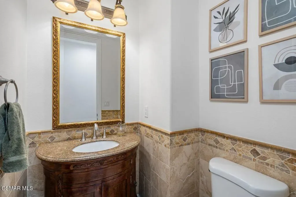 Resort-Style Mediterranean Ranch Living in the Heart of Camarillo. Experience the ease of California luxury in this beautifully appointed Mediterranean estate, where timeless architecture and relaxed indoor-outdoor living come together in a private, resort-inspired setting. From the moment you arrive, the home’s clay tile rooflines, and graceful arched entry set a tone of understated elegance and warmth. Step inside to a dramatic two-story foyer, where a sweeping curved staircase with wrought-iron detailing frames the space, and intricate travertine medallion flooring makes an unforgettable first impression. Natural light pours through the home, highlighting soaring ceilings, refined finishes, and a seamless flow between formal and casual living areas designed for both entertaining and everyday comfort. At the heart of the home, the chef’s kitchen blends functionality with style and features rich wood cabinetry, granite countertops, stainless steel appliances, and a generous center island perfect for gathering. Multiple living spaces offer flexibility and comfort, while a dedicated home theater/media room with custom built-ins creates the ultimate setting for movie nights and relaxed evenings in. Outdoors, the property truly shines as a private retreat. A resort-style, free-formed pool is surrounded by terracotta paver decking, and a poolside bathroom/dressing room, evoking a boutique hotel ambiance. The covered patio, framed by decorative brick, invites al fresco dining and year-round enjoyment, all set against a backdrop of mature tropical landscaping, including stately king and fan palms and meticulously manicured grounds. Private Guest House Retreat: Adding exceptional versatility, the detached guest house mirrors the main residence in both architectural charm and quality. Featuring one bedroom, one bath, in-unit laundry, and its own private patio, this self-contained space offers comfort and independence for extended family, guests, or potential rental income. With its cohesive Mediterranean styling–cream stucco exterior, clay tile accents, dark shutters, and terracotta paver details–it feels like a natural extension of the estate while maintaining its own sense of privacy. A rare offering that blends elegance, comfort, and flexibility, this Camarillo property captures the essence of refined Southern California living.