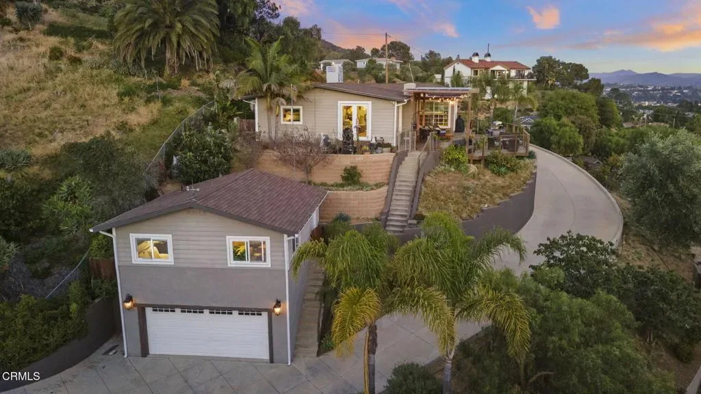 A truly special offering that doesn’t come along often… an in-town vineyard retreat with sweeping ocean and mountain views all the way to the Channel Islands.This charming California bungalow blends comfort, flexibility, and an incredible lifestyle in one unique property. The main home features 3 bedrooms, 2 bathrooms, and approximately 1,418 square feet filled with natural light and an easy, welcoming flow. The kitchen is beautifully updated with high-end appliances, soap stone counters, Wolf 6-burner range, wine fridge & sub-zero freezer drawers. Kitchen opens to the living spaces, creating a perfect setting for everyday living and entertaining. Expansive windows frame the amazing views and bring in those unforgettable sunsets, while the newer HVAC system (2023) adds modern comfort.One of the standout features is the detached bonus oversized LOFT above the 2 car garage, a private retreat complete with its own bathroom and kitchenette, and finished with stunning features including handcrafted Moroccan tile. It’s an ideal space for guests, extended family, a private office, or potential rental income.Step outside and you’ll feel like you’ve escaped to your own private retreat. The expansive front deck is perfectly positioned to take in the views, a gas lantern adds ambiance & charm, plus deck is completely fenced. While the 150-vine mini vineyard with Cabernet and Sangiovese grapes adds to the charm and experience. Multiple outdoor spaces invite you to relax, entertain, and enjoy–whether it’s a quiet morning by the garden fountain or an evening gathering under the sky.Additional features include a 2-car garage, RV parking area, and a Tuff Shed for added storage and functionality.All of this, just a short distance to town, offering the perfect balance of privacy, beauty, and convenience.Homes like this are rare–and this one is truly something special.Additional features but not limited to: new insulated attic rodent sealed, guaranteed & free for life of home. Motion lights & alarms in back & side plus wired ring door bell. Front slope features a Chicken coop and rabbit pens