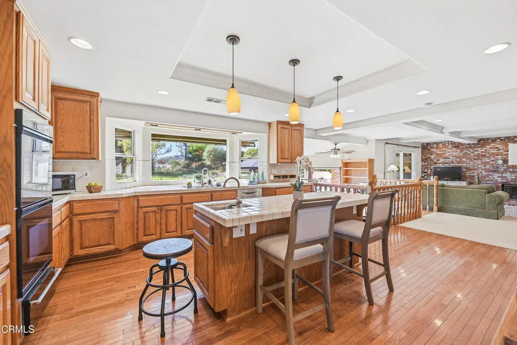 Breathtaking mountain views, total privacy, and a resort-style pool set the stage for this stunning 3,605 sq. ft. retreat on a .52 acre lot in one of Camarillo’s most coveted neighborhoods. Every detail of this 4-bedroom, 3-bath home was designed for beauty, comfort, and connection.Step inside and you’re greeted by soaring coffered ceilings and an open-concept layout that flows effortlessly from spacious living areas to the heart of the home, a chefs kitchen with a large island, perfect for gathering and entertaining. Sunlight fills every corner, highlighting nice finishes and effortless indoor-outdoor living.The bottom level features a private guest/office area, bathroom, and a convenient downstairs laundry room. Upstairs, the primary suite is a true retreat, complete with a peaceful sitting room, fireplace, and private views from the terrace looking over the backyard.Outside, your private paradise awaits, a sparkling resort-style pool, lush landscaping, and room to relax, entertain, or simply take in the view. Come experience this beautiful Camarillo home for yourself with proximity to the 101, schools, shopping, and dining. This home defines Camarillo lifestyle at its finest!