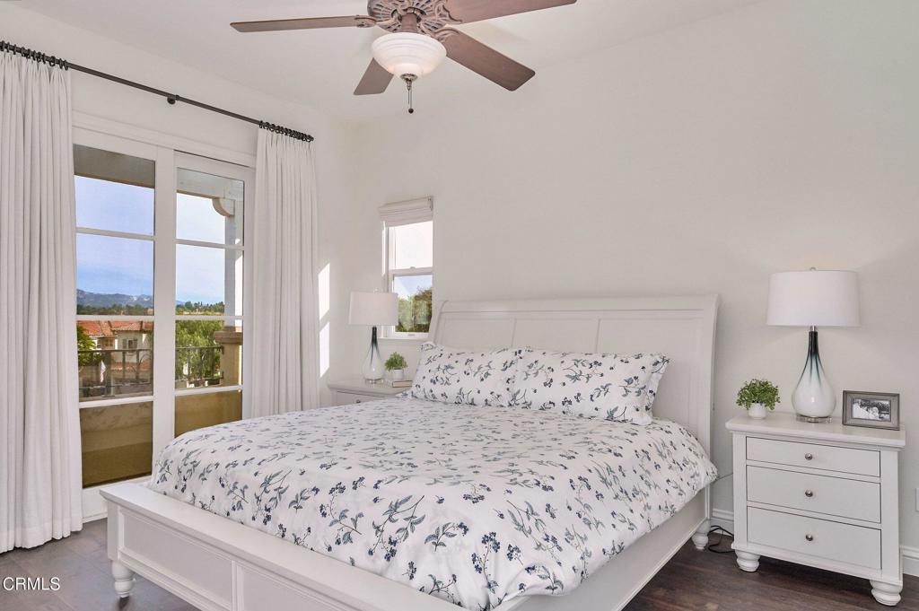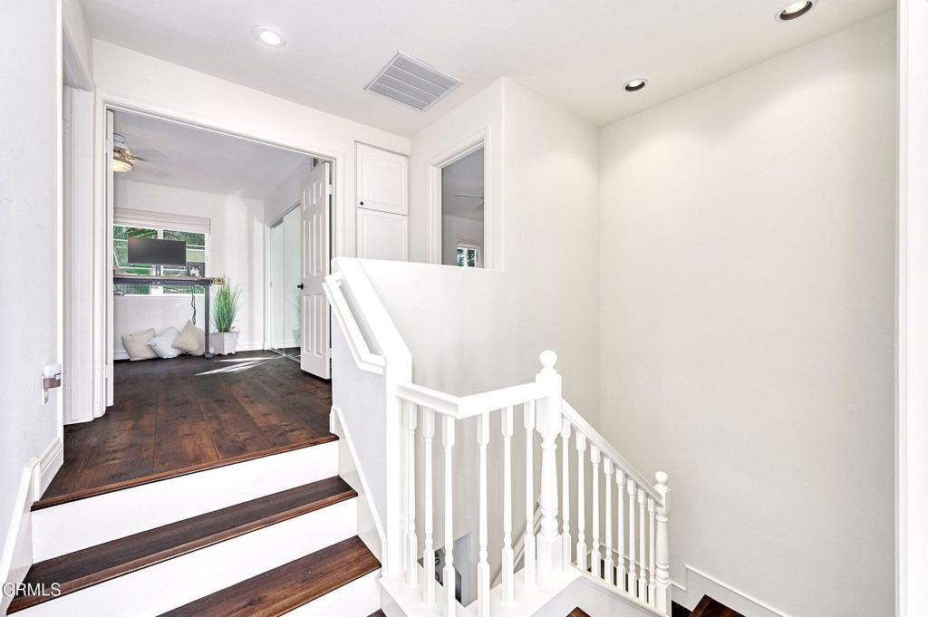Set along the fairways of the prestigious Spanish Hills Golf Course, this impeccably maintained residence offers privacy, elegance, and scenic surroundings. The primary suite enjoys captivating views of city lights, mature neighborhood trees, and rolling valleys, creating a tranquil and elevated retreat.Presented in great condition, the home features wood flooring installed throughout, complemented by fresh interior paint, designer lighting upgrades throughout the interior and exterior, and refined finishes. The spacious kitchen includes a well-appointed dining area with custom built-in cabinetry, ideal for both everyday living and entertaining.Additional enhancements include new automatic blinds and drapery in soft, natural tones, updated bathroom mirrors, and thoughtfully selected hardware details. The private backyard oasis is complete with a newly installed fire pit, offering the perfect setting for relaxing evenings in a serene golf-course environment.With its thoughtful upgrades, functional two-story layout, and premier location, this home delivers a move-in-ready, resort-style lifestyle in one of Camarillo’s most exclusive communities.