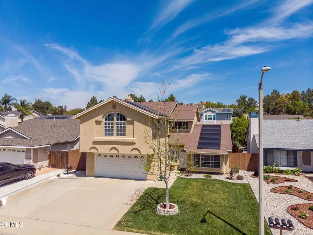 Welcome to your next home in the heart of Mission Oaks in Camarillo–where space, comfort, and thoughtful upgrades come together beautifully.This exceptional Hillcrest residence offers one of the largest floorplans in the neighborhood, with approximately 2,400 square feet of living space set on an expansive 7,100+ square foot lot. Inside, you’ll find a versatile layout with three bedrooms upstairs, a spacious bonus room downstairs, and 2.5 bathrooms.The interior features both a formal living room and comfortable family room, complete with a brick-front fireplace that creates a warm and inviting focal point — perfect for everyday living or gathering with guests. Upstairs, the layout includes a spacious primary suite and a uniquely oversized third bedroom with dual closets–perfect for a home office, kids’ playroom or gym space. Downstairs, the spacious bonus room offers even more flexibility. It can easily serve as a game room or private space for extended family. The home has been extensively upgraded, including a fully paid solar system by Tesla with a transferable warranty, along with a newer HVAC system, roof, flooring, exterior paint, and beautifully updated bathrooms–offering both comfort and efficiency.Step outside into a backyard retreat designed for relaxation and enjoyment. The large patio provides the perfect setting for entertaining or unwinding at the end of the day. In addition, the thoughtfully landscaped yard offers both avocado and citrus trees for your enjoyment. Ideally located within the community is both Tierra Linda elementary school as well as Woodcreek park. You’ll also enjoy the convenience of local shopping, dining and easy freeway access from this location. Make no mistake, this property is a wonderful place to call home, offering comfort, space and a setting you’ll enjoy for years to come.