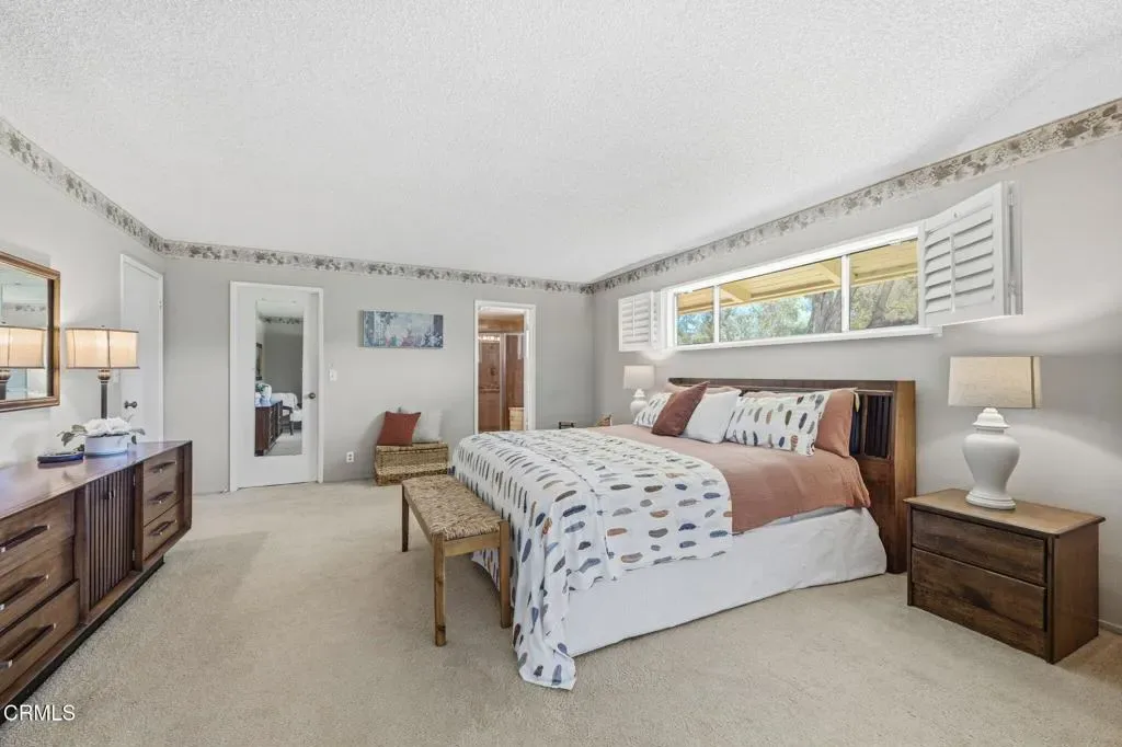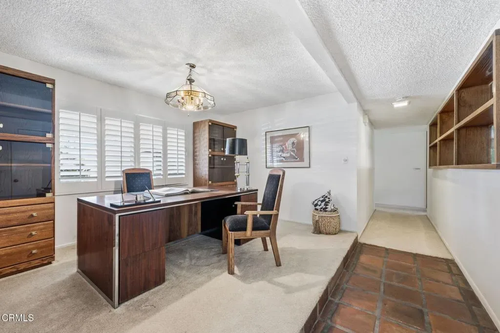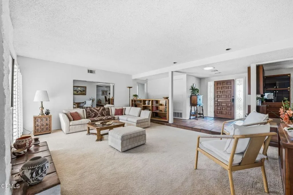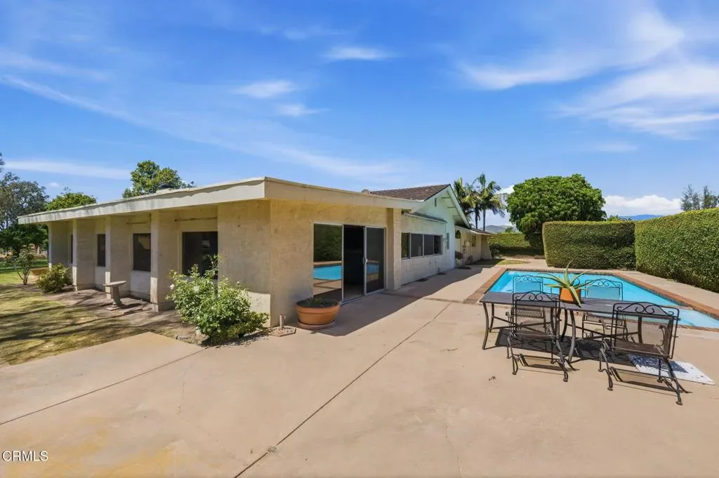 Positioned on a premier corner golf course lot within Las Posas Estates, this expansive Single-Story residence captures sweeping fairway vistas and picturesque mountain views, with snow-capped peaks emerging after winter rains. Overlooking the 8th fairway of the Arnold Palmer-designed Las Posas Country Club golf course, the backyard unfolds as a private retreat, complete with a pool and spa set against an open golf course backdrop–ideal for both relaxed living and elevated entertaining. Lush fig ivy walls surround the pool area, enhancing privacy and maintaining the beauty of the setting, while vibrant flowering blooms add color and seasonal charm. The grounds are further complemented by mature citrus trees, apple trees, and avocado tree, creating a true garden-to-table lifestyle within this sought-after golf course community – just a short golf cart ride to the clubhouse amenities. Spanning over 3,800 square feet on approximately 0.71 acres, the home offers a thoughtfully designed open-concept great room with an inviting bar area, pool table, and a wood-burning fireplace–creating a warm and inviting setting for gathering and entertaining. A separate living room features a gas fireplace, adding an additional layer of comfort and ambiance. A functional kitchen with a breakfast nook provides a comfortable space for everyday dining and connection. Offering four spacious bedrooms and three well-appointed baths, including a serene primary suite and a flexible fourth bedroom or office, the layout delivers both comfort and versatility to suit a variety of lifestyle needs. Retaining its Mid-Century character and ready for thoughtful updates, this home presents a rare opportunity to reimagine a classic in an exceptional setting. The coveted corner location enhances curb appeal, privacy, and long-term versatility, including potential ADU opportunities (buyer to verify), making this a rare offering in one of Camarillo’s most sought-after golf course communities. A definite MUST SEE!