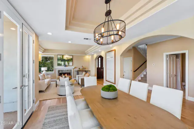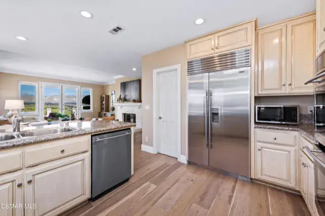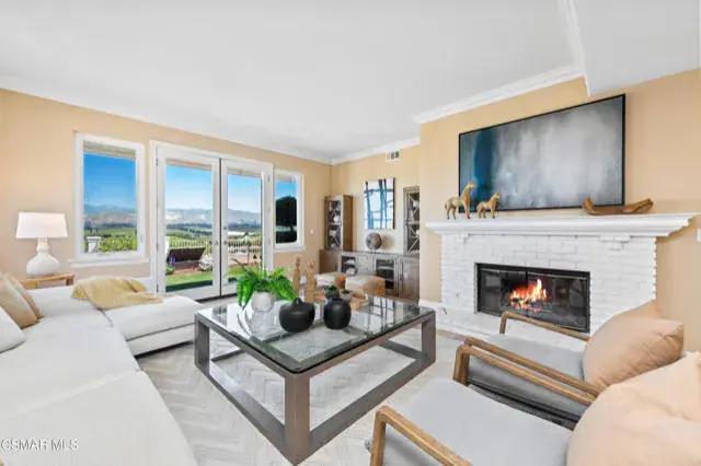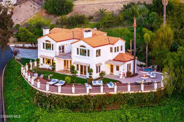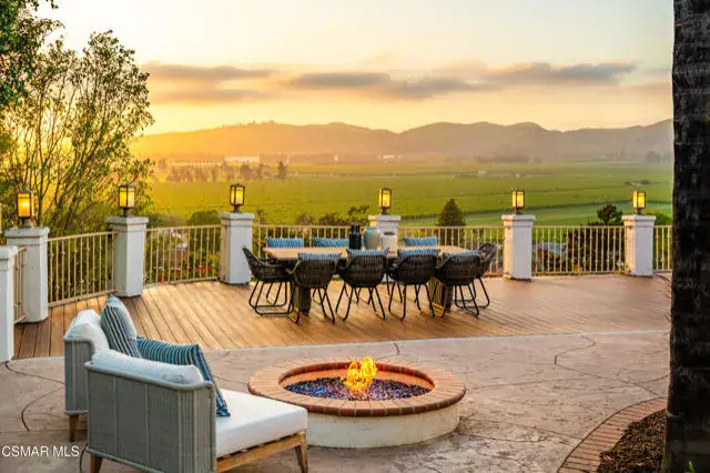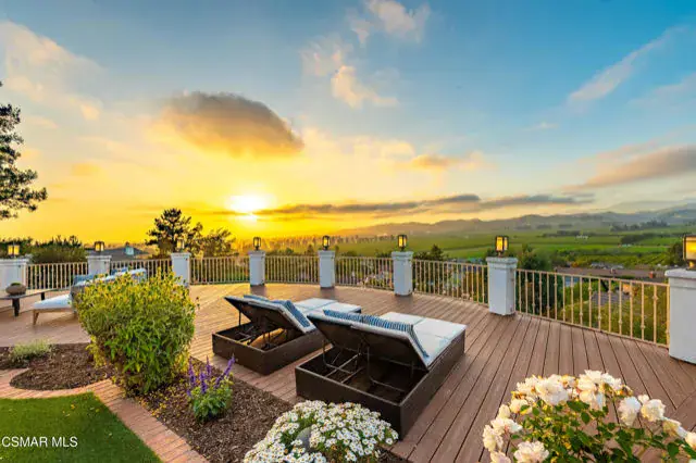 Introducing 1074 Deseo Avenue–an exceptional luxury residence perched on nearly one acre (0.8 acres) in the prestigious Las Posas Estates of Camarillo. Set at one of the community’s highest elevations, this contemporary Mediterranean home commands northwest-facing panoramic views that sweep across the Camarillo plains to the Topatopa Mountains, offering the dramatic sunsets and horizon lines that define Ventura County’s most sought-after view properties. For buyers searching for luxury homes in Ventura County, Las Posas Estates view homes, or Camarillo hilltop estates, this residence is the pinnacle. Perfectly situated between Los Angeles and Santa Barbara, and just 8 minutes to the 101 Freeway, the home benefits from the area’s celebrated microclimate–cool coastal breezes, abundant sunshine, and some of the best weather in the world. The neighborhood offers a rare blend of seclusion and accessibility: private, quiet, low-traffic streets, no HOA, direct access to community equestrian trails, and close proximity to the exclusive Las Posas Country Club, known for its golf course, tennis and pickleball courts, dining, and social lifestyle. Inside, approximately 3,700 square feet of refined living space unfolds with vaulted ceilings, wide-plank oak floors, and expansive windows that frame the views from nearly every room. The chef’s kitchen blends luxury and functionality with a Sub-Zero refrigerator, double ovens, gas cooktop, peninsula island, walk-in pantry, and wet bar–features highly sought by buyers looking for entertainer kitchens and open-concept luxury homes in Camarillo. The floor plan includes four bedrooms, three full bathrooms, and a versatile office/bonus room that can act as a fifth bedroom. A generous downstairs suite provides ideal guest accommodations or multigenerational living. The primary suite is a private sanctuary with a fireplace, spa-inspired bath, and breathtaking views that stretch for miles. In total, the home offers three fireplaces, elevating its ambiance and architectural character. Outdoor living is exceptional. A new 1,600 sq. ft. wraparound Trex deck creates multiple destinations for dining, lounging, and entertaining–perfectly positioned for sunset views and evening gatherings. The in-ground heated spa, fire pit, and expansive seating areas offer a luxurious resort-like atmosphere. The gently terraced grounds feature lush new landscaping and a gated side yard with RV parking, an increasingly rare and in-demand amenity in Ventura County. Additional upgrades include newer A/C, water heater, updated spa equipment, designer carpeting, modern recessed lighting, and public sewer service (not septic). The property also offers extensive driveway parking in addition to its two-car garage. Located within the Pleasant Valley Unified School District and surrounded by the natural beauty, privacy, and lifestyle offerings that define Las Posas Estates, 1074 Deseo Avenue stands as a statement property–an elevated blend of luxury, serenity, and premier Ventura County living.