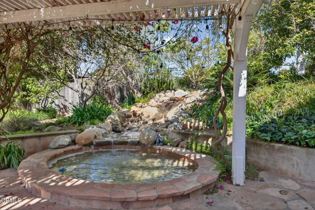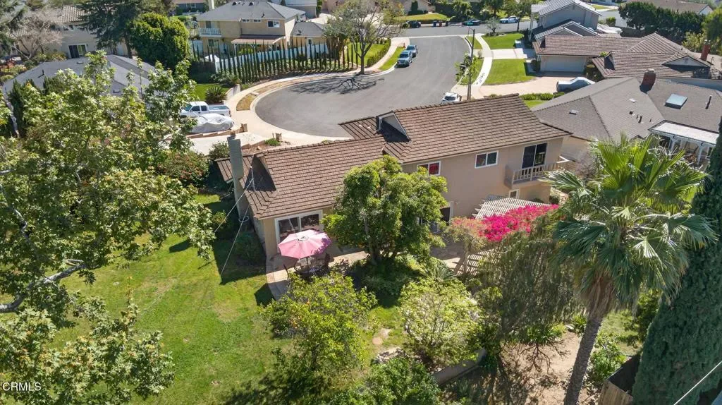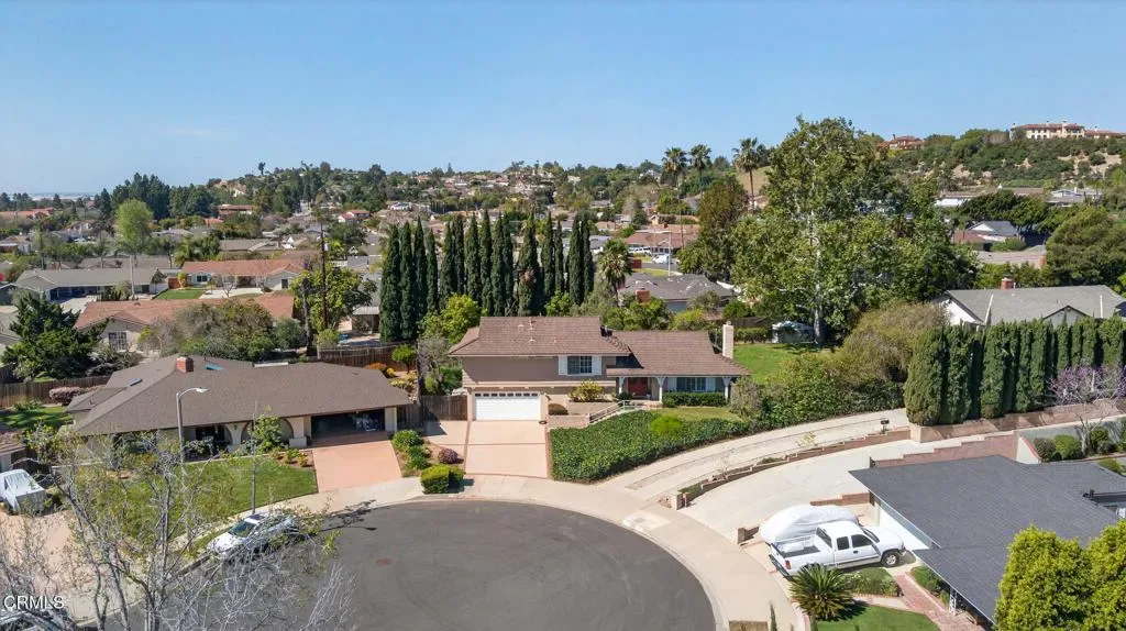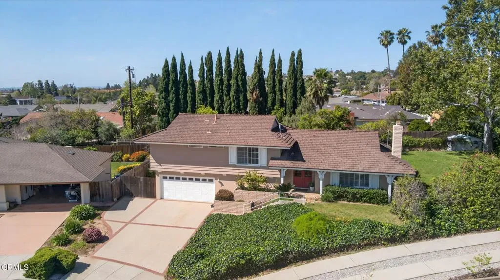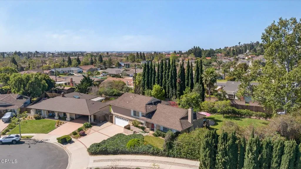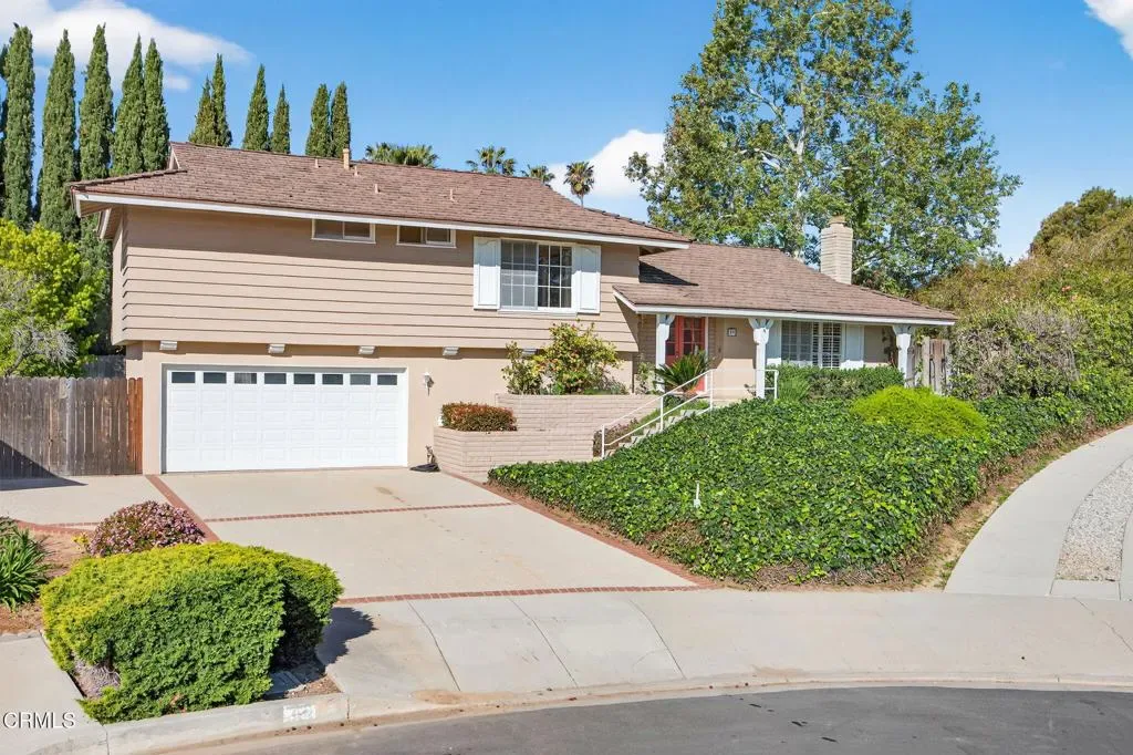 Welcome to this a spacious tri level home tucked away on a quiet cul de sac in the desirable Camarillo Heights neighborhood. Set on an expansive 13,068 square foot lot, this inviting property offers a rare combination of space, privacy, and beautiful outdoor living. With 1,911 square feet of living space, the home features 4 bedrooms and 2.5 bathrooms and a flexible layout designed for comfortable living and entertaining. The tri level floor plan provides wonderful separation of spaces and offers exciting possibilities. The lower level presents an opportunity to create a separate living area, guest suite, or extended family space depending on your needs. The main living areas offer a welcoming feel with natural light, slider to backyard and a fireplace. Enjoy views of the backyard from the kitchen while preparing meals. Additional amenities include air conditioning and a two car garage with direct access to the home.Retreat to the backyard, a truly special setting that highlights the size and beauty of the lot. Flagstone patios and hardscape provide a wonderful place for outdoor dining, relaxing with friends, or enjoying warm Camarillo evenings surrounded by mature landscaping, and established gardens. A tranquil cascading pond adds a peaceful focal point within the yard, while fruit trees and open lawn areas offer endless opportunities to make the property your own. Located in the sought after neighborhood, the home enjoys a quiet residential setting while still being close to local parks, shopping, dining, and schools.