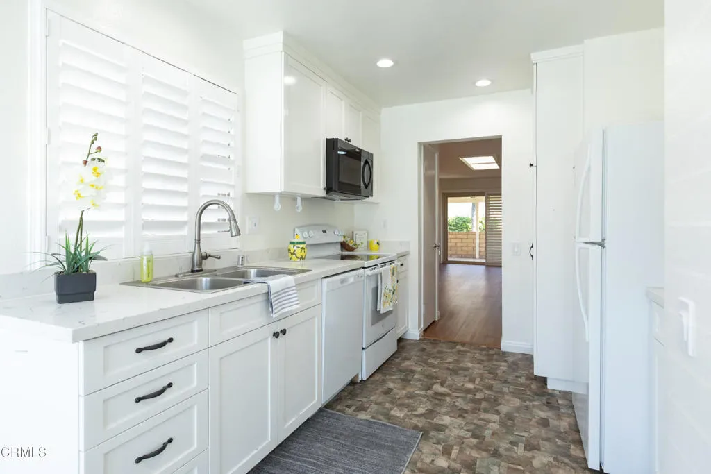Step into comfort and ease at 1106 Village 1, a beautifully refreshed Del Mar model home in Camarillo’s premier senior community, Leisure Village. This single-story, 2 bedroom, 2 bathroom residence blends modern upgrades with a warm, inviting atmosphere, creating a move-in ready haven that’s truly priced to sell.As you enter, you’re greeted by fresh, neutral paint and smooth ceilings–no more acoustic texture–giving the home a light, open, contemporary feel. Sunlight filters softly through newer dual-pane windows, keeping the interior quiet, bright, and energy efficient. Underfoot, hard-surface flooring flows throughout the home, most of it luxury vinyl plank, offering the rich look of wood with easy-care durability–perfect for everyday living and entertaining.The updated kitchen is the heart of the home, with sleek stone counters that feel cool to the touch and provide generous workspace. Whether you’re brewing your morning coffee or preparing dinner for friends, this kitchen invites you to linger and enjoy. Nearby living and dining areas offer a flexible layout, ideal for cozy evenings in or hosting game nights and get-togethers.Both bathrooms have just been thoughtfully spruced up, giving them a fresh, clean look so you can simply unpack and settle in. The new HVAC system helps keep the home comfortable year-round, so you can enjoy cool summers and cozy winters with confidence and efficiency.Outside your front door, Leisure Village offers the lifestyle that makes this home truly special. This gated senior community provides 24-hour security staff trained in first-response medical support, offering peace of mind for you and your loved ones. The beautifully maintained grounds invite you to stroll, socialize, and enjoy the outdoors.The bustling Recreation Center is the hub of activity–featuring a fitness room, sparkling pool, golf course, tennis and pickleball courts, billiard room, wood shop, card room, and more. Whether you’re looking to stay active, learn a new hobby, or simply meet neighbors who are ready to make new friends, there is always something to do and someone to do it with.1106 Village 1 is more than a home–it’s an opportunity to embrace a vibrant, connected lifestyle in one of Camarillo’s most desirable senior communities. Move right in and start enjoying everything Leisure Village has to offer.