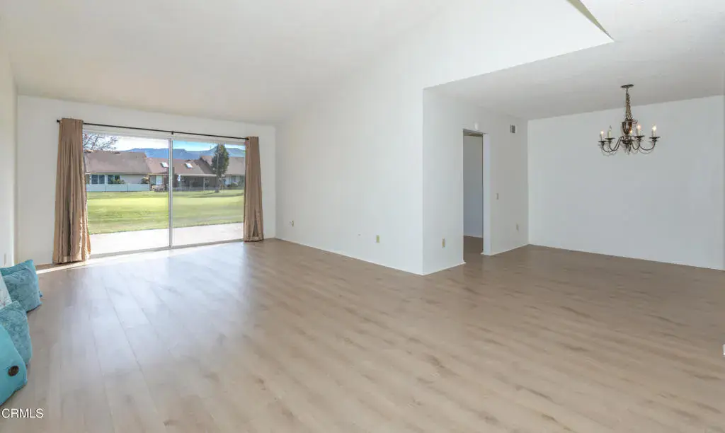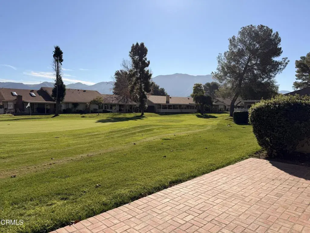 This El Dorado model home backs to the golf course and sits with an amazing back end view of the course as well as the Santa Monica mountains in the back drop. This is one of the most popular models in the community. This one has newer flooring and a newer HVAC system. This home is priced to allow you to make your preferred improvements. There is a newer HVAC system here. This location is the type of location that makes the saying location, location, location popular.The home has 2 bedrooms and a den and 2 baths. The home has a nice large kitchen as well as a dining area plus the living room. The home has a large outdoor patio area overlooking the golf course.