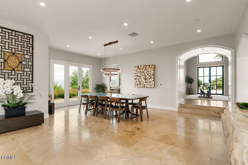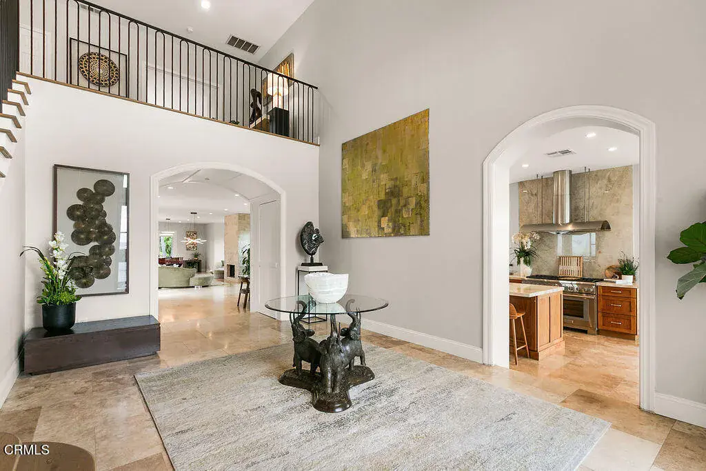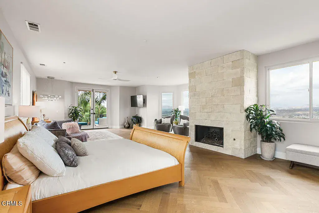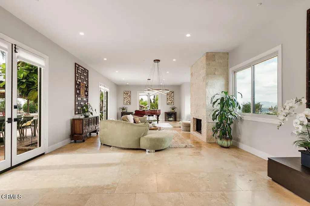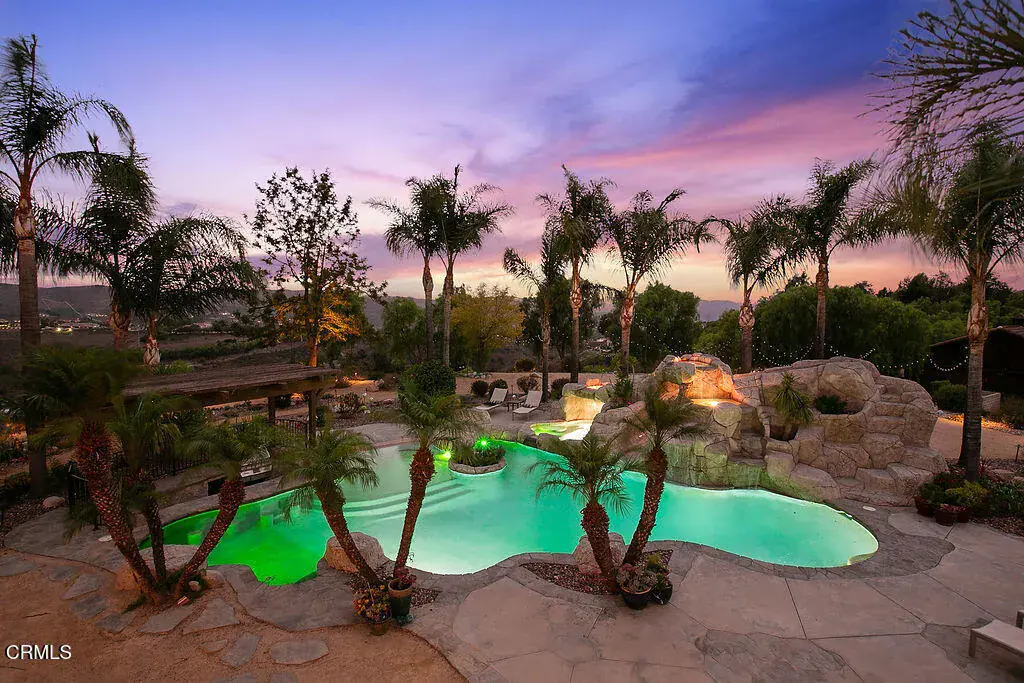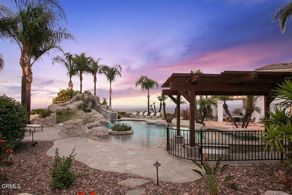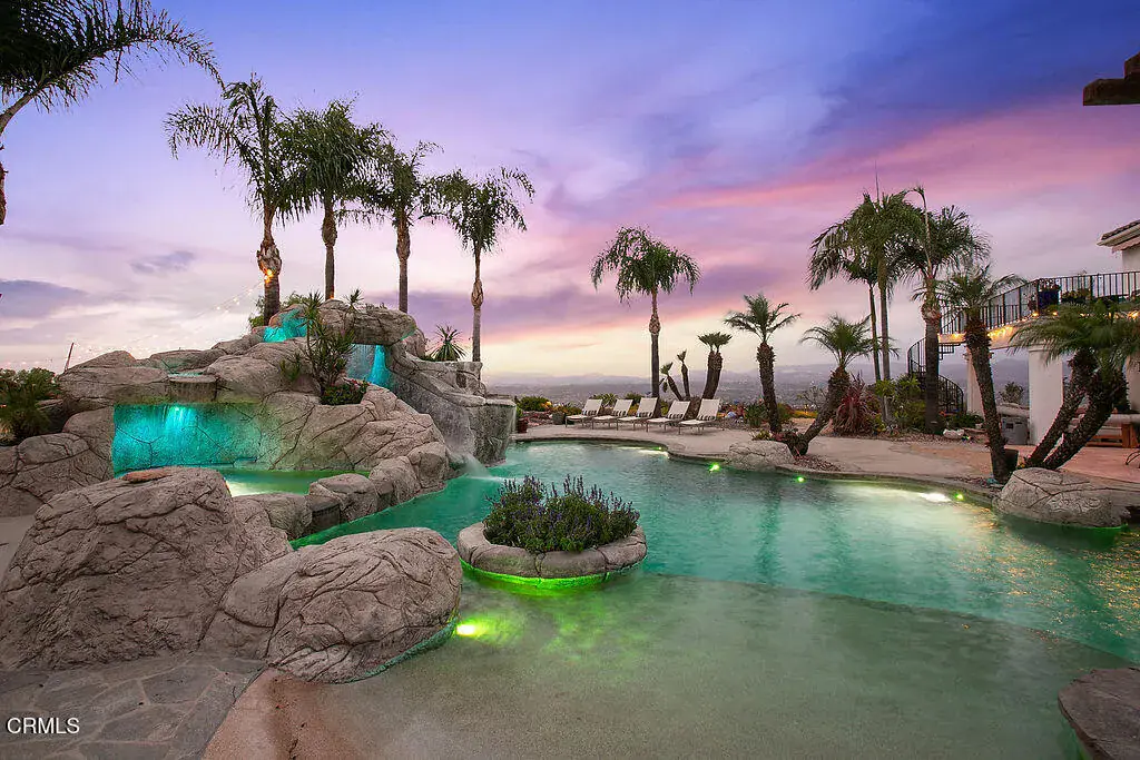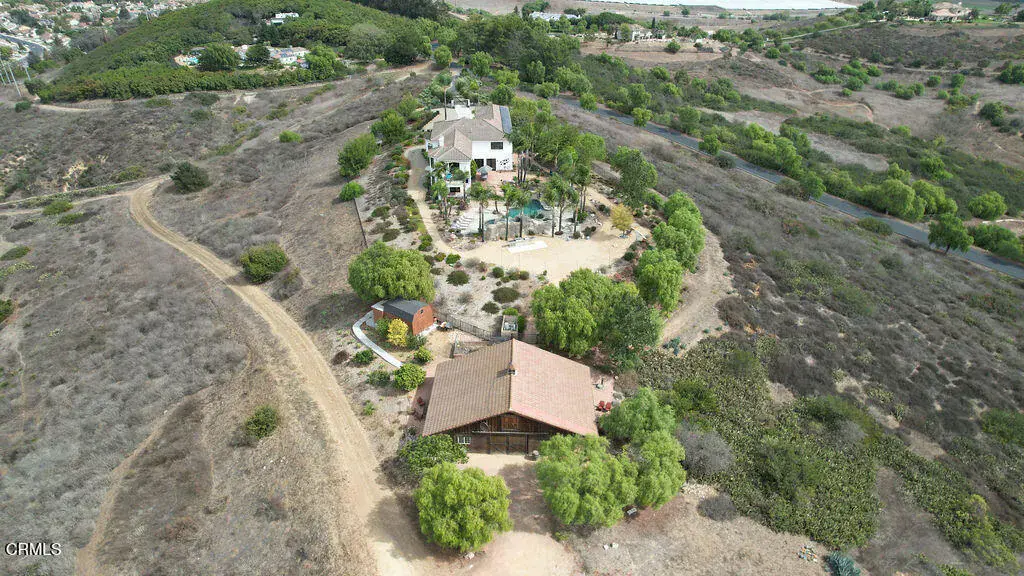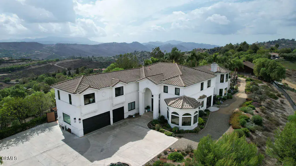 Palatial in design and unrivaled in scale, this ultra-private 20-acre estate reigns from its prestigious mountaintop setting, offering sweeping 360-degree views and a lifestyle of unmatched tranquility and luxury.A long, gated drive leads to park-like grounds reminiscent of a private resort, complete with lush lawns, mature landscaping, and a private path to a picturesque barn. Designed for grand entertaining and refined living, the residence blends timeless architectural splendor with thoughtful modern updates.Inside, soaring double-height ceilings, dramatic sightlines, and walls of glass frame the breathtaking vistas at every turn. The grand foyer opens to an elegant living room with a stately fireplace, piano alcove, and towering windows that flood the space with natural light.The chef’s kitchen is a culinary showpiece, featuring granite countertops, a massive center island, and professional-grade appliances including a commercial style stainless steel range, and commercial-sized refrigerator and freezer. The adjacent dining room and view-filled family room–with its own fireplace–create the perfect flow for entertaining or intimate gatherings.Upstairs, the palatial owner’s suite is a private sanctuary with mesmerizing views, fireplace, spa-inspired marble bath, dual closets, and an expansive balcony with its own fireplace and seating area overlooking the valley below. Additional upstairs bedrooms and a flexible office or bonus room complete the spacious layout.Outdoors, expansive terraces and lawns provide idyllic spaces for entertaining or peaceful retreat. The showstopping Pool features Slide & Rock Formed Ledges, & Swim Up Bar, Steps descend through the grounds to the charming barn and three additional bathroom facilities for guests and poolside convenience. This is an entertainer’s paradise.A three-car garage, abundant guest parking, and unparalleled privacy complete this rare offering.A true crown jewel of Ventura County, this exceptional estate is both a triumph of design and a celebration of the California lifestyle–where panoramic beauty, architectural grace, and serene seclusion meet in perfect harmony.