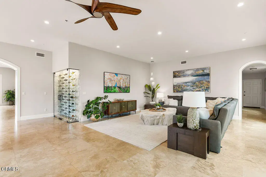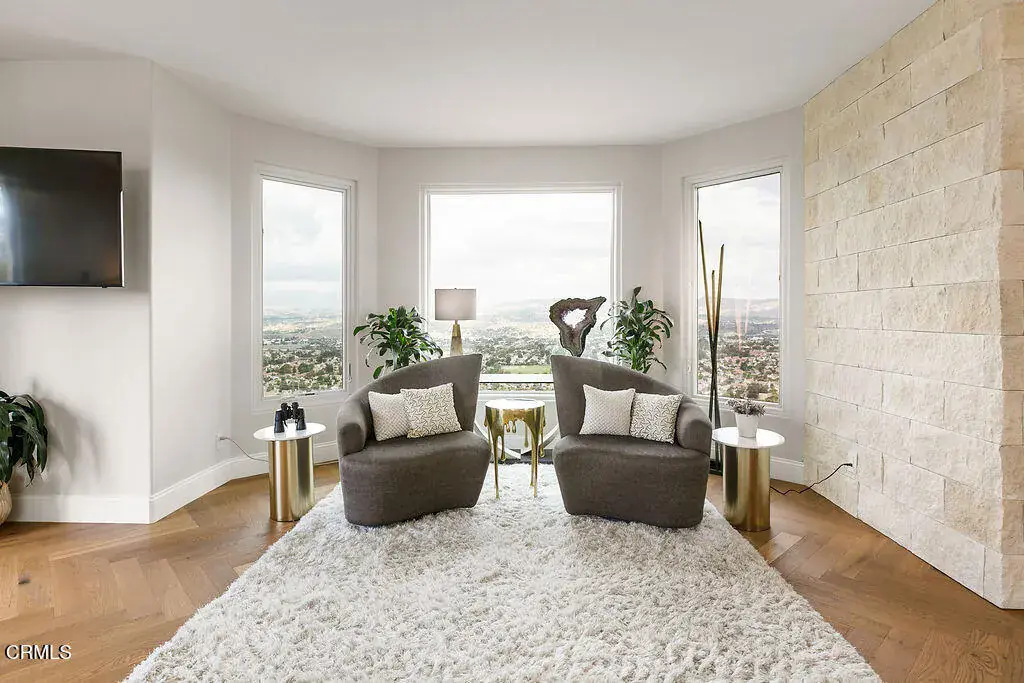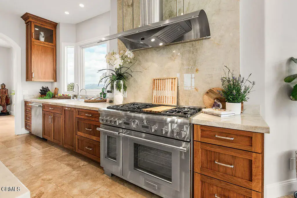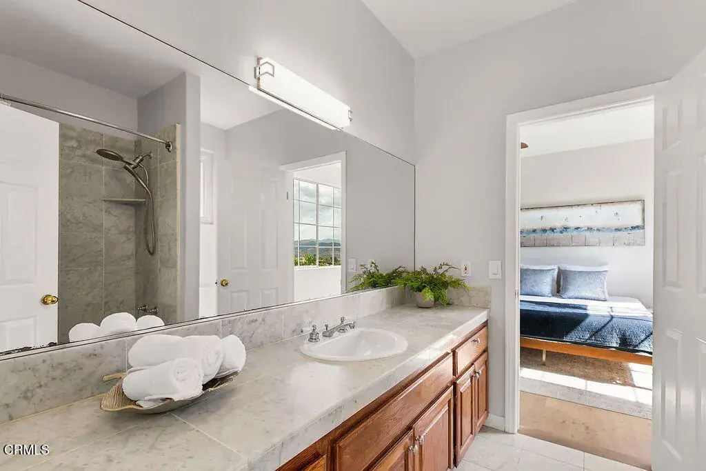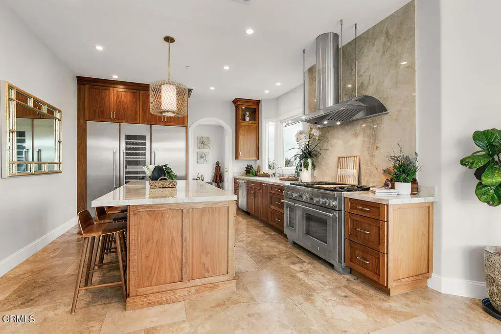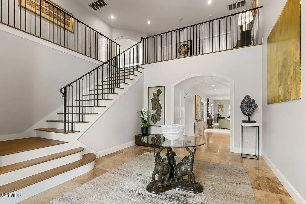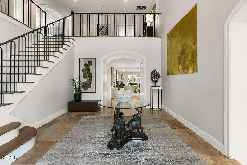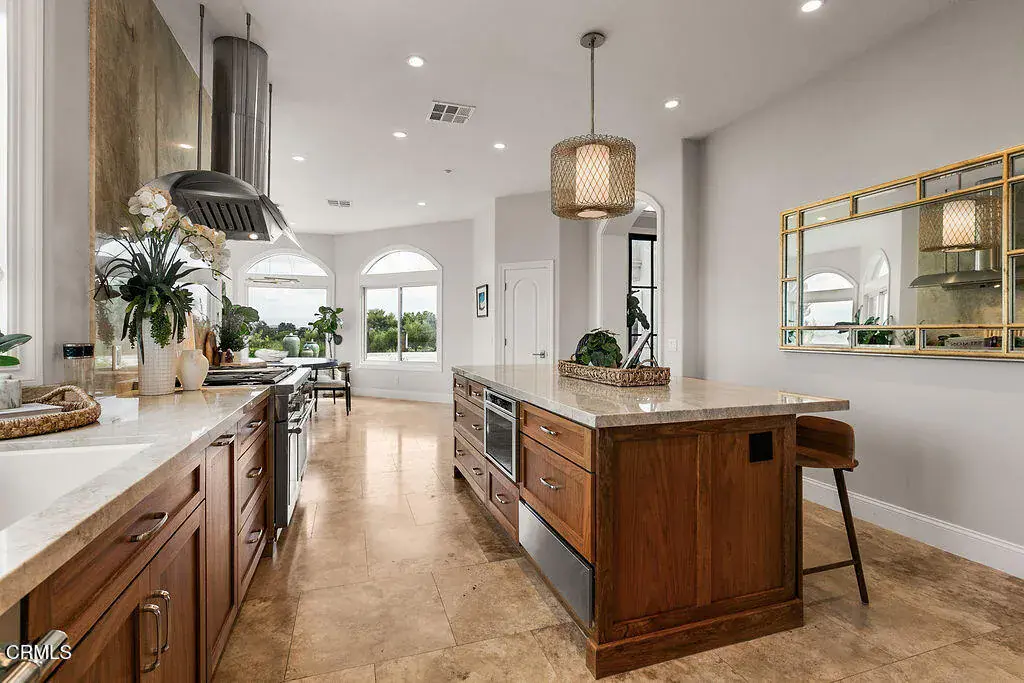 Palatial in design and unrivaled in scale, this ultra-private 20-acre estate reigns from its prestigious mountaintop setting, offering sweeping 360-degree views and a lifestyle of unmatched tranquility and luxury.A long, gated drive leads to park-like grounds reminiscent of a private resort, complete with lush lawns, mature landscaping, and a private path to a picturesque barn. Designed for grand entertaining and refined living, the residence blends timeless architectural splendor with thoughtful modern updates.Inside, soaring double-height ceilings, dramatic sightlines, and walls of glass frame the breathtaking vistas at every turn. The grand foyer opens to an elegant living room with a stately fireplace, piano alcove, and towering windows that flood the space with natural light.The chef’s kitchen is a culinary showpiece, featuring granite countertops, a massive center island, and professional-grade appliances including a commercial style stainless steel range, and commercial-sized refrigerator and freezer. The adjacent dining room and view-filled family room–with its own fireplace–create the perfect flow for entertaining or intimate gatherings.Upstairs, the palatial owner’s suite is a private sanctuary with mesmerizing views, fireplace, spa-inspired marble bath, dual closets, and an expansive balcony with its own fireplace and seating area overlooking the valley below. Additional upstairs bedrooms and a flexible office or bonus room complete the spacious layout.Outdoors, expansive terraces and lawns provide idyllic spaces for entertaining or peaceful retreat. The showstopping Pool features Slide & Rock Formed Ledges, & Swim Up Bar, Steps descend through the grounds to the charming barn and three additional bathroom facilities for guests and poolside convenience. This is an entertainer’s paradise.A three-car garage, abundant guest parking, and unparalleled privacy complete this rare offering.A true crown jewel of Ventura County, this exceptional estate is both a triumph of design and a celebration of the California lifestyle–where panoramic beauty, architectural grace, and serene seclusion meet in perfect harmony.