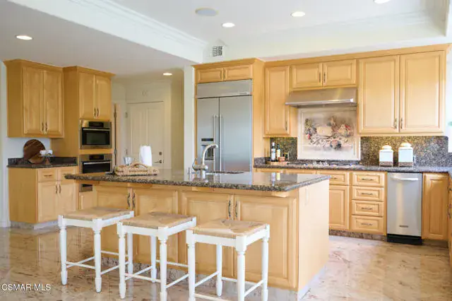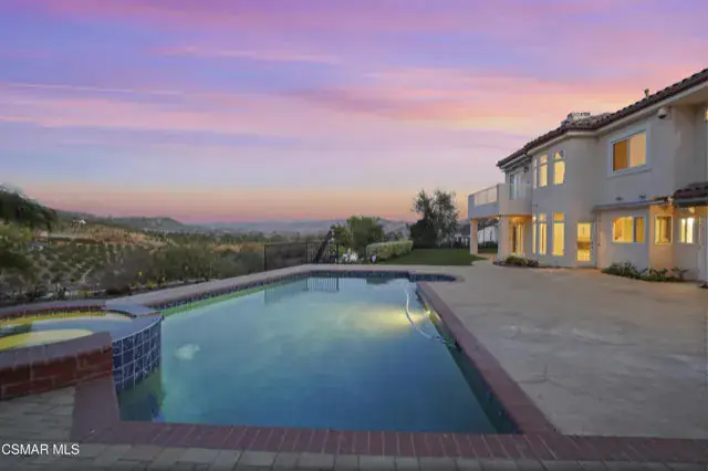 Stunning Hilltop Estate with Gorgeous Views – No HOA or Mello Roos5 Beds | 4.5 Baths | Elevator | Pool & Spa | 3-Car Garage | 22,041 Sq Ft LotWelcome to 7111 Los Coyotes Place, the crown jewel of Garnidale Estates–a premier Camarillo community with no HOA or Mello Roos. This exceptional property offers unobstructed, gorgeous views of rolling hills, orchards, and mountains.Designed for comfort and accessibility, this expansive residence features single-level living on both floors, thanks to a private in-home elevator connecting levels with no interior steps.Key Features:5 spacious bedrooms, all with en suite bathrooms Grand primary suite with fireplace, sitting area, walk-in closet, private view deck & elevator accessGourmet kitchen with Miele appliances, granite counters, large island, built-in fridge, and breakfast nook overlooking the hillsOpen-concept layout with great room, wet bar, fireplace, and piano/reading alcoveFormal dining room seats 12, plus a sophisticated living room with stone fireplaceOutdoor Paradise:Sparkling pool & spaBuilt-in BBQ island with sink and patio heatersRetractable patio cover and manicured lawnPrivate orchard with fig, persimmon, loquat, apple, pear & pomegranate treesExpansive ~0.5-acre lotUpgrades & Amenities:Three fireplacesGenerac natural gas generator with automatic transfer switchTankless water heater & newer HVACTiled 3-car garageCentral vacuumHardwired Ethernet in every roomBuilt-in ironing board & laundry chuteSet near the Santa Rosa Valley with easy access to the 101, Garnidale Estates features wide, scenic streets and a private community park. Enjoy luxury living, exceptional privacy, and breathtaking views–all without the burden of HOA fees or Mello Roos.