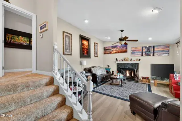 Welcome to 1595 Lyndhurst Avenue, a beautifully maintained property in the desirable Camarillo Heights neighborhood. This move-in-ready home features a cozy front porch perfect for morning coffee or tea, upgraded wood flooring downstairs, and soft carpet upstairs. The updated kitchen offers a centralized pantry, modern cabinetry, sleek countertops, and a breakfast bar ideal for casual dining. The home also includes a dedicated laundry room, a two-car garage with an added workshop area and epoxy flooring, a tankless water heater, and a water softener system. With a newer roof, paid solar panels, and a backup battery, this home combines comfort and efficiency. The spacious primary bedroom includes an upgraded ensuite bathroom with a walk-in shower, creating a relaxing retreat. Every detail reflects pride of ownership, from the thoughtful finishes to the inviting layout, making this a truly loved home ready for its next family to enjoy.