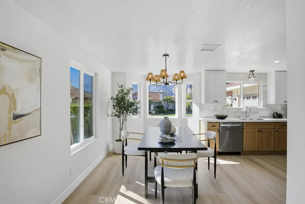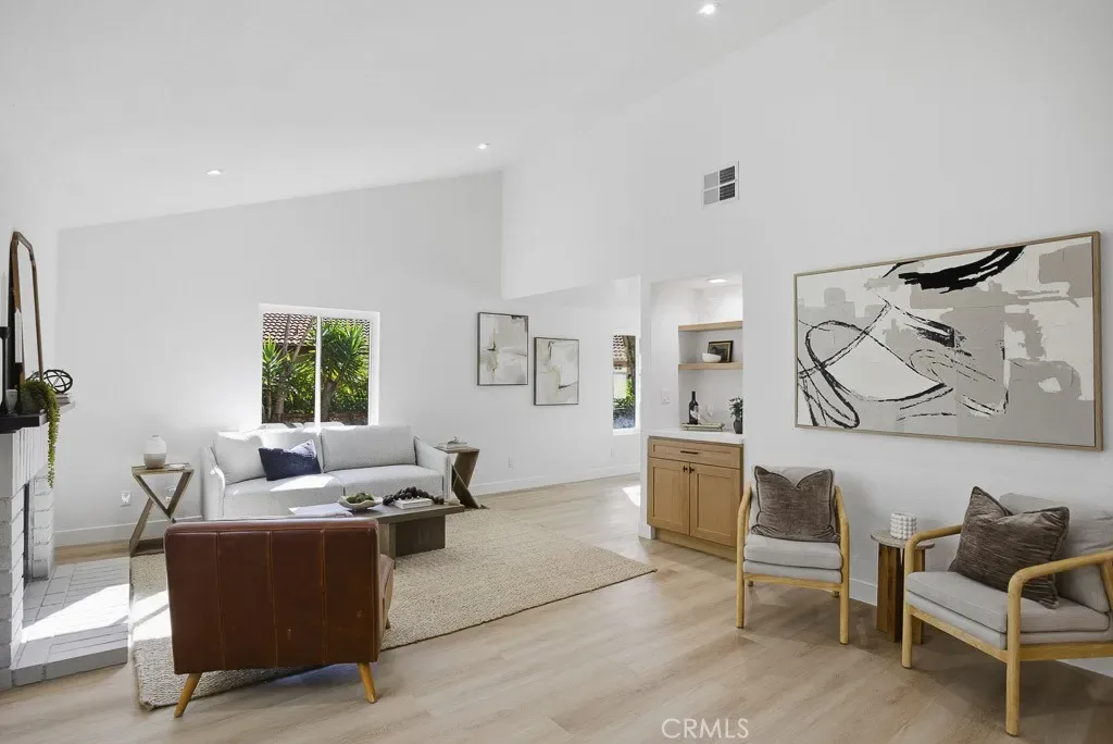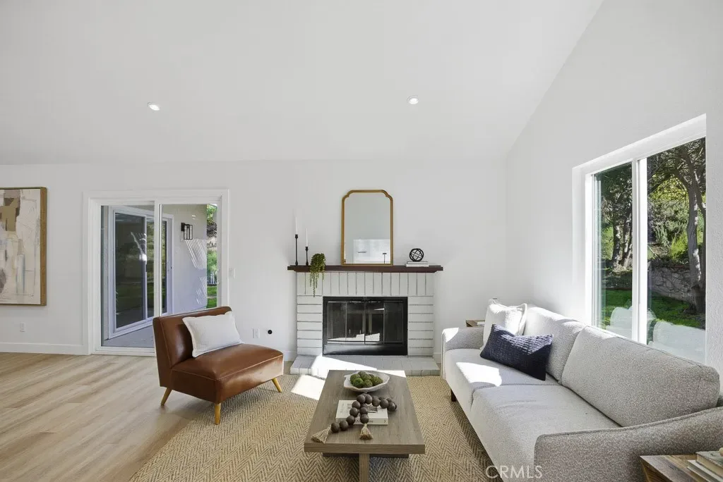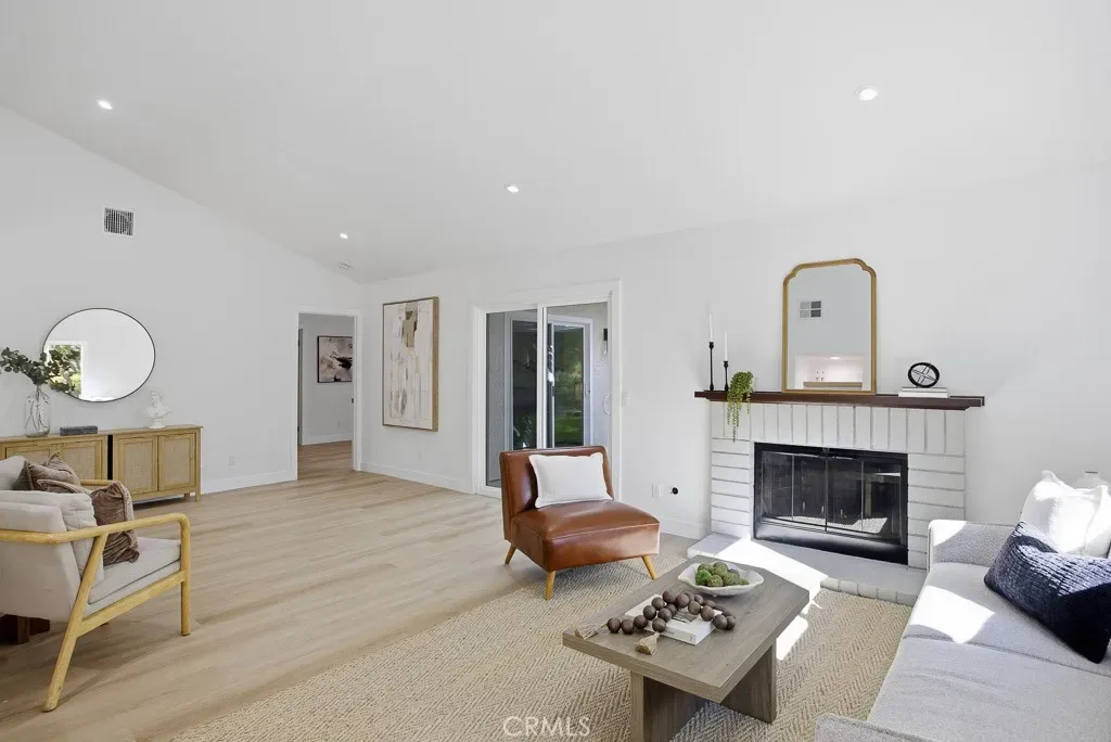 A beautifully renovated single-level home located in the highly desirable 55+ gated community of Camarillo Springs. This thoughtfully redesigned residence features brand-new flooring throughout, custom-tiled bathrooms, a new HVAC system and condenser, and a fully updated kitchen with quartz countertops, modern cabinetry, and new stainless-steel appliances including a range, microwave, hood, and dishwasher. The open-concept layout showcases vaulted ceilings, recessed lighting, a classic brick fireplace, modern LVP flooring, and newer dual-pane sliders and windows.