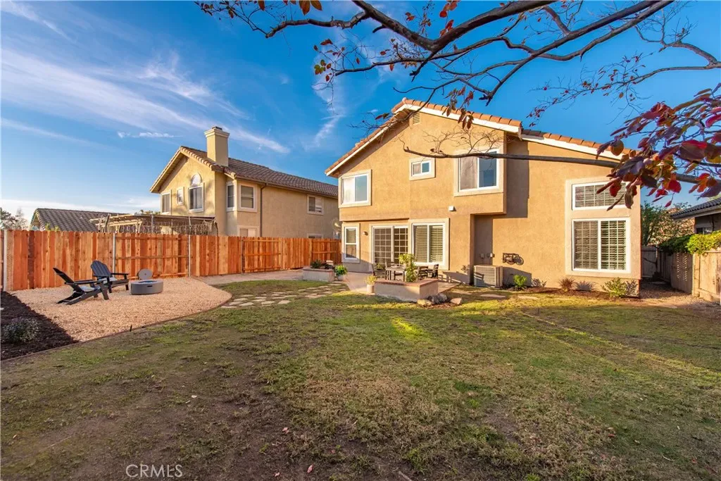 Welcome home to this beautifully upgraded residence in the highly desirable Mission Oaks neighborhood of Camarillo. The formal living and dining rooms make a striking first impression with dramatic vaulted ceilings and expansive windows that flood the space with natural light, creating an inviting atmosphere and a flexible layout ideal for both entertaining and everyday living. The thoughtfully designed kitchen blends function and style, featuring quartz countertops, a classic subway tile backsplash, brand-new stainless steel appliances, crisp white cabinetry, and clean, modern finishes. A cozy breakfast area connects the kitchen to the spacious family room, where a stylish gas fireplace with a custom stone surround anchors the space and creates a true great-room feel—perfect for gatherings. French-style sliding doors extend the living area to the patio and backyard, enhancing the seamless indoor-outdoor lifestyle Southern California is known for. The main level also includes a beautifully remodeled powder room and a spacious laundry room with built-in storage cabinetry. Upstairs, the primary suite serves as a peaceful retreat with vaulted ceilings and abundant windows overlooking the private, serene backyard—an ideal setting to enjoy stunning sunset views. The remodeled primary bathroom features a brand-new dual-sink vanity with quartz countertops, a soaking tub, a separate shower, and a generous walk-in closet with custom organizers. 3 additional bedrooms are well-sized and thoughtfully positioned, offering versatility for guests, home office space, or additional living needs. The updated hall bathroom showcases a modern gray dual-sink vanity with quartz counters, sleek mirrors, recessed lighting, and a tub with classic subway tile surround. Recent upgrades include a brand-new roof, newly installed laminate flooring throughout, freshly painted interiors, brand-new lighting and fixtures, and professionally designed landscaping. Solar has been removed. The oversized backyard offers ample space to add a pool, spa, and outdoor kitchen, or simply relax and enjoy quiet evenings outdoors. Additional highlights include a 3-car garage with built-in cabinetry and boat or possible small RV access. With no HOA and walking distance to Tierra Linda Elementary, this home delivers exceptional convenience and lifestyle appeal. Enjoy close proximity to neighborhood parks, tennis and pickleball courts, hiking and biking trails, and a fantastic selection of restaurants.